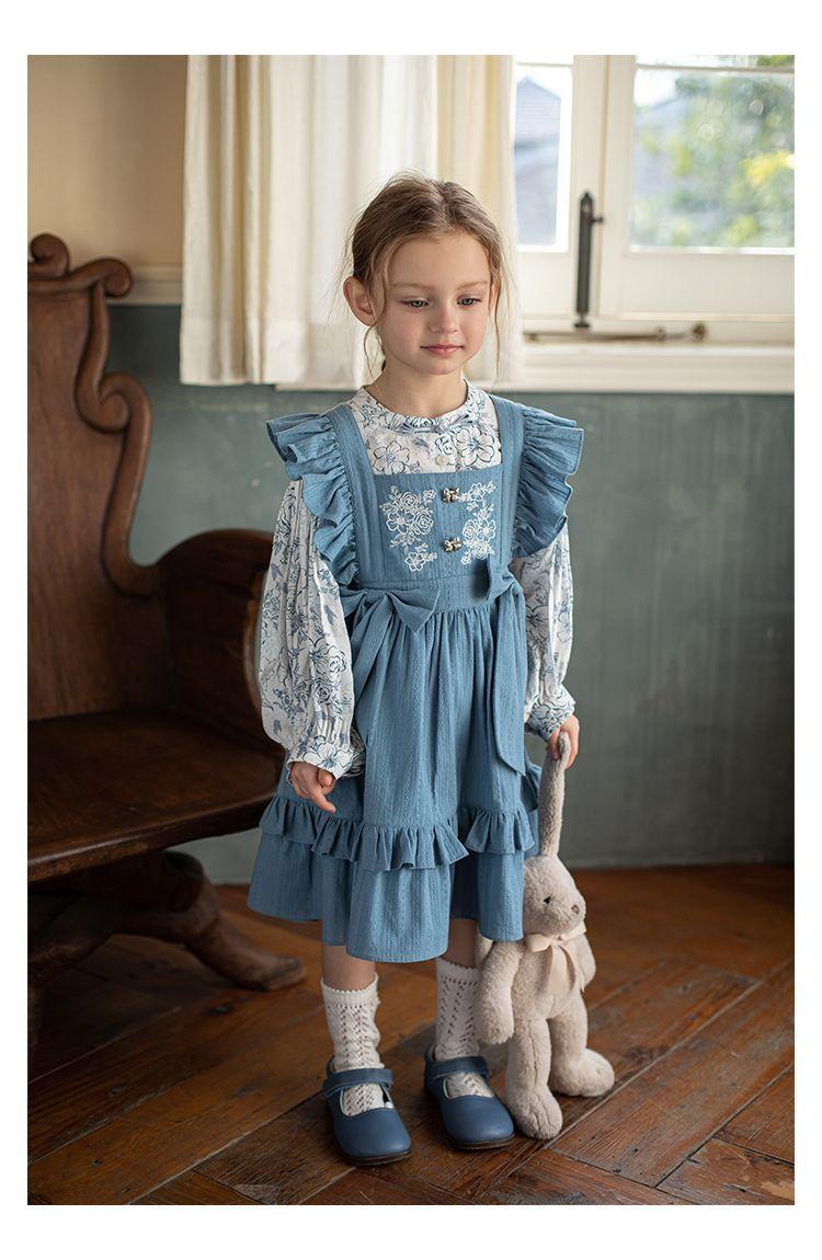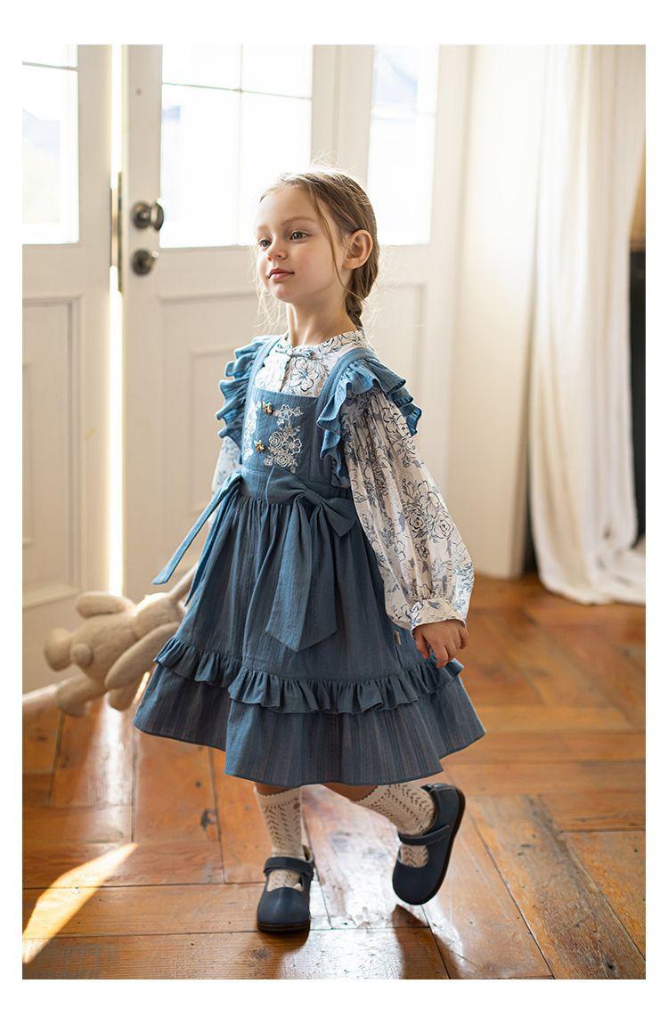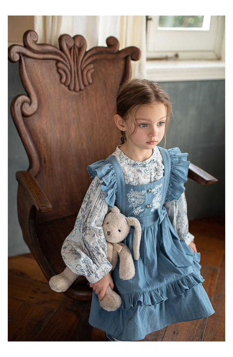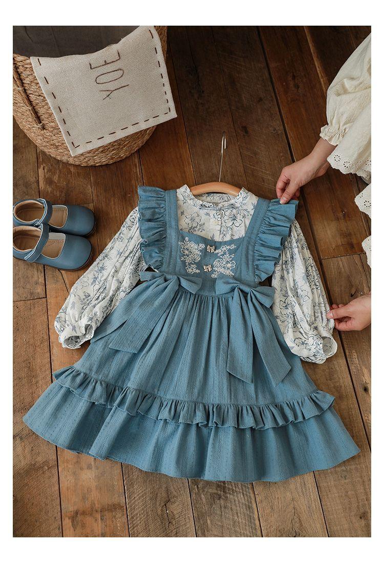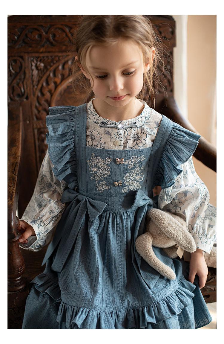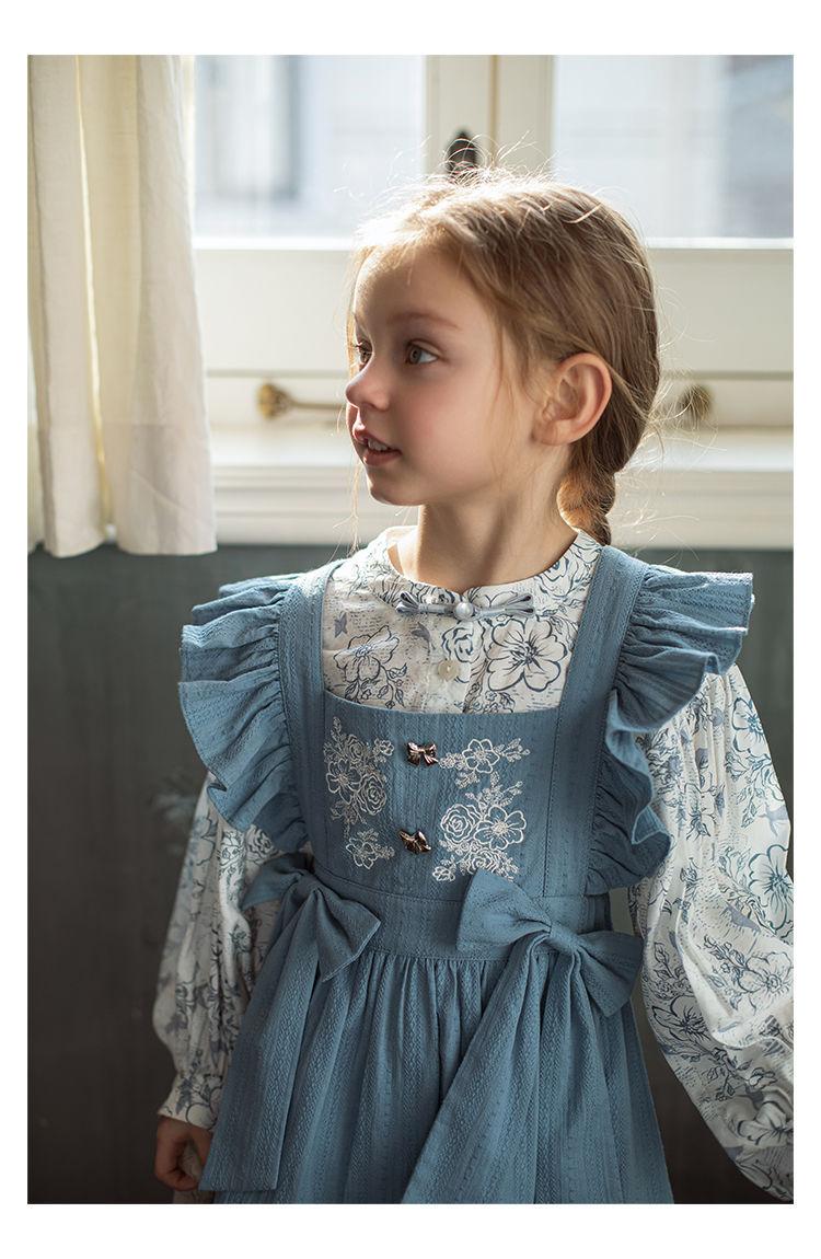 Traje de Otoño 2025 para Niñas Wulibu Vestido Dulce de Manga Abullonada Completa Camisa con Estampado Digital Completo