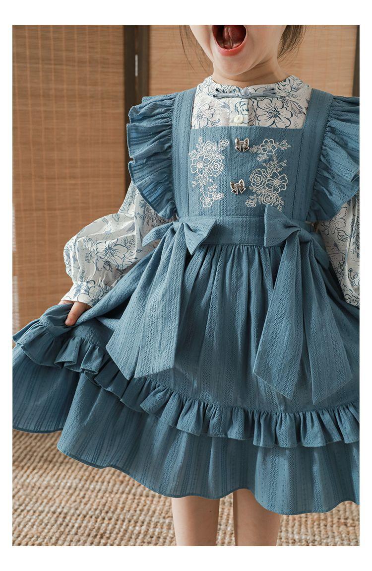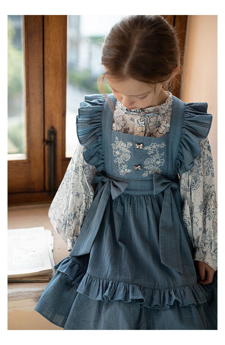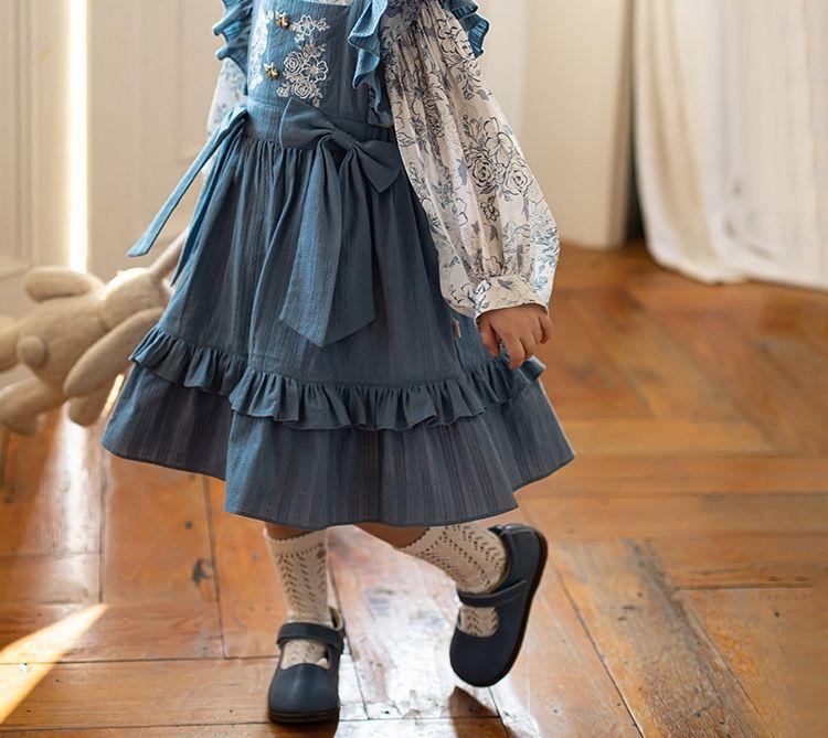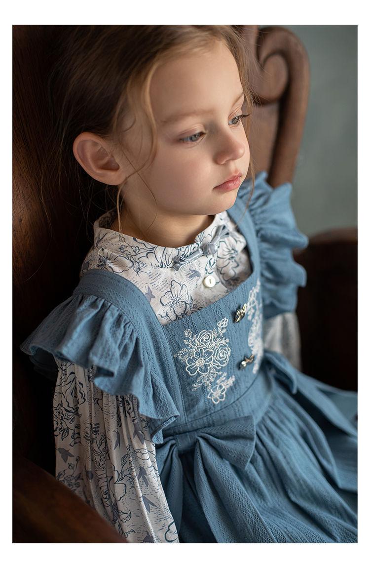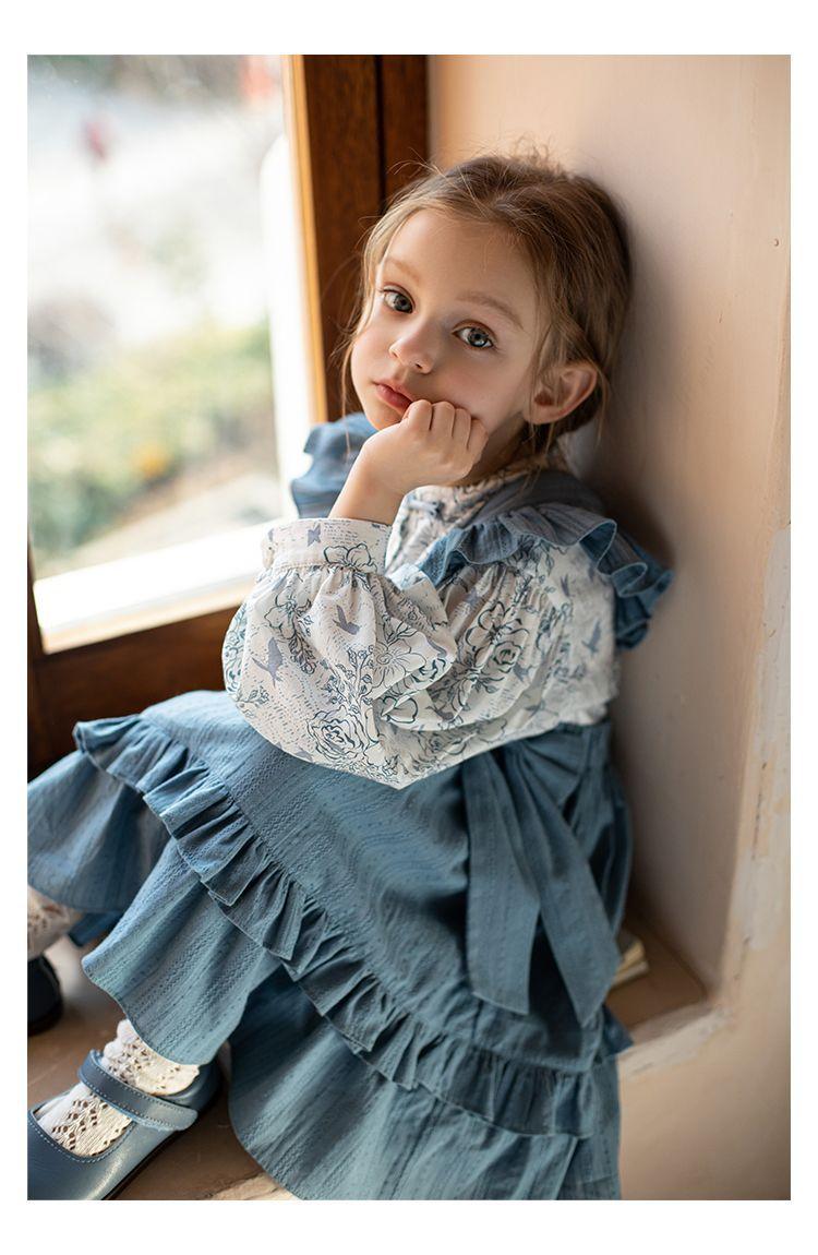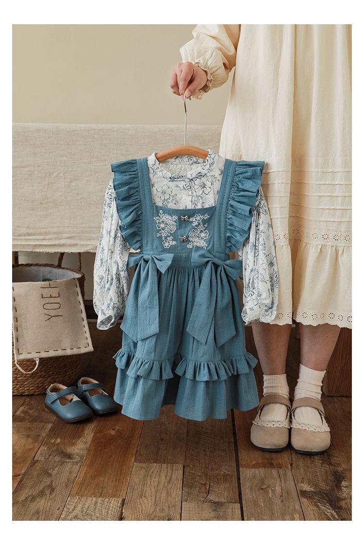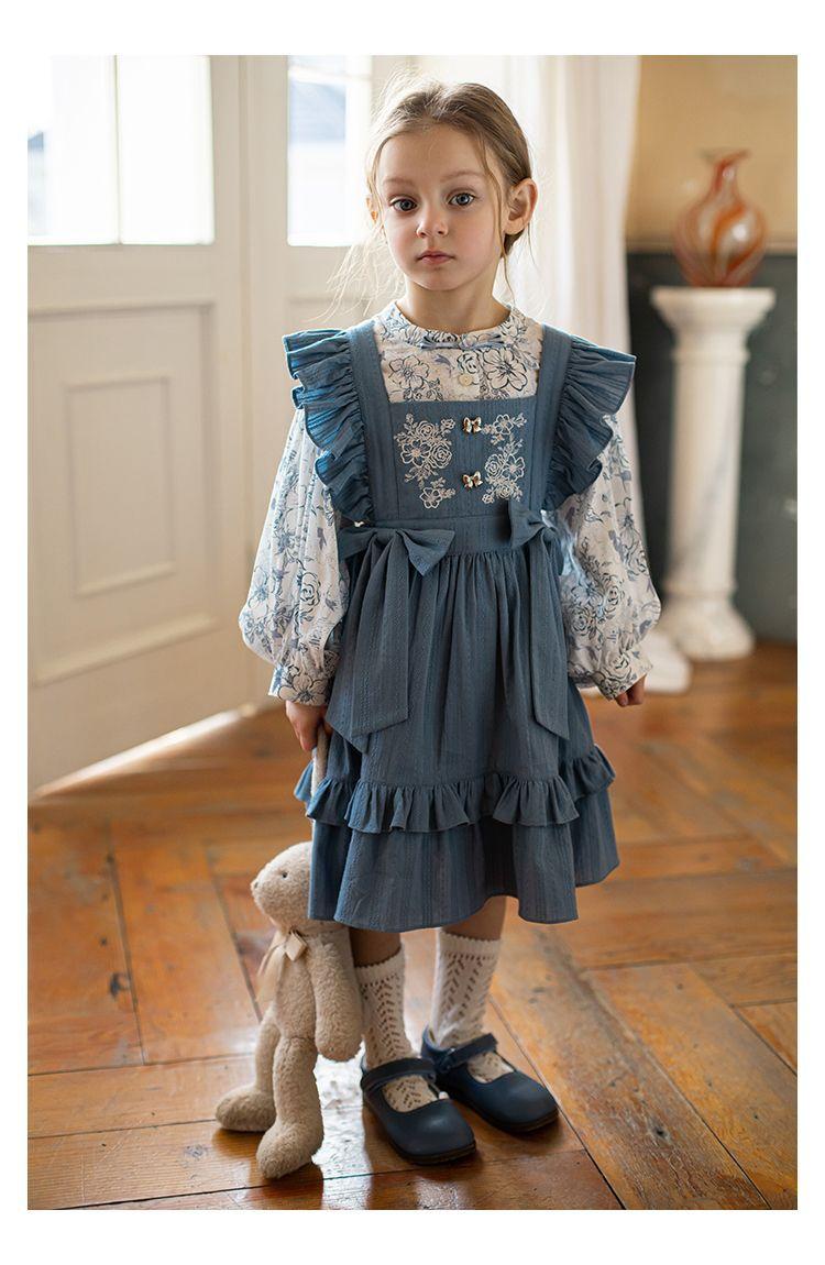 Traje de Otoño 2025 para Niñas Wulibu Vestido Dulce de Manga Abullonada Completa Camisa con Estampado Digital Completo