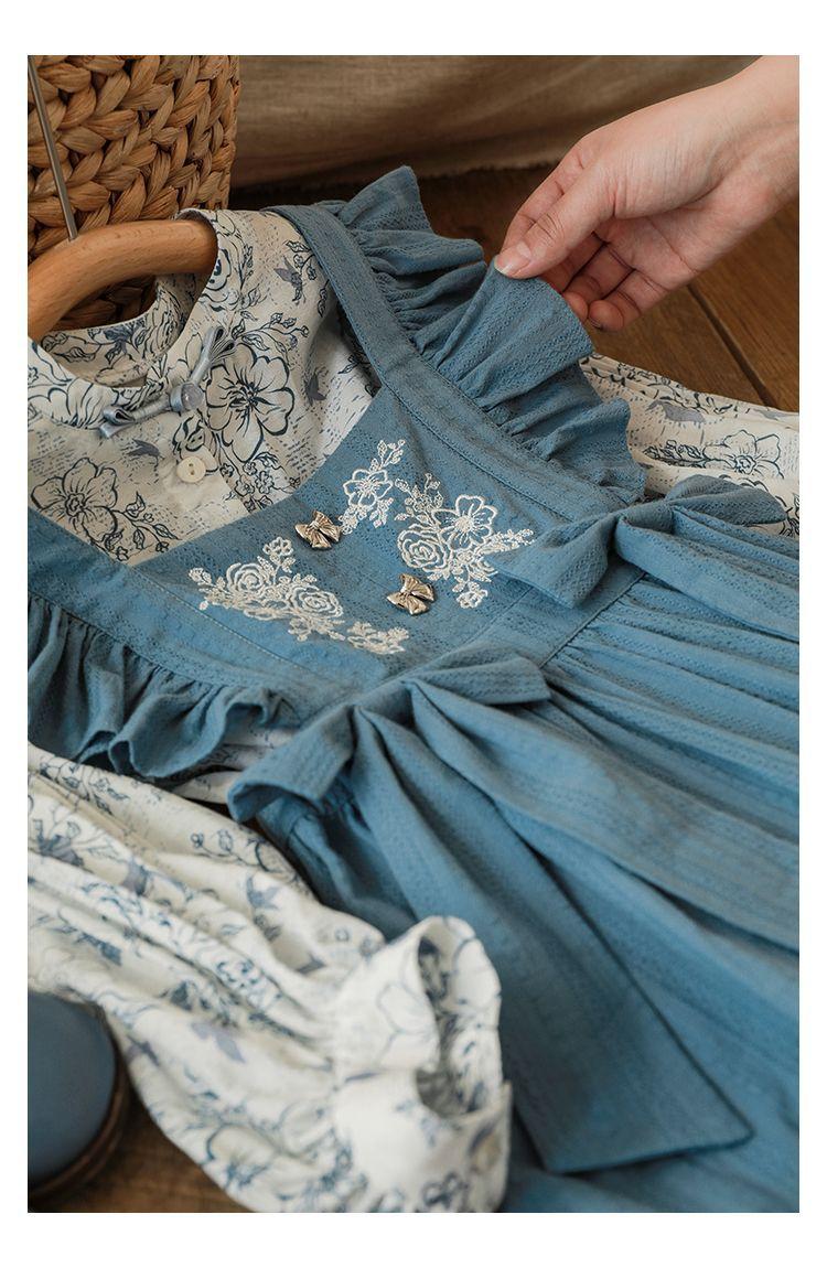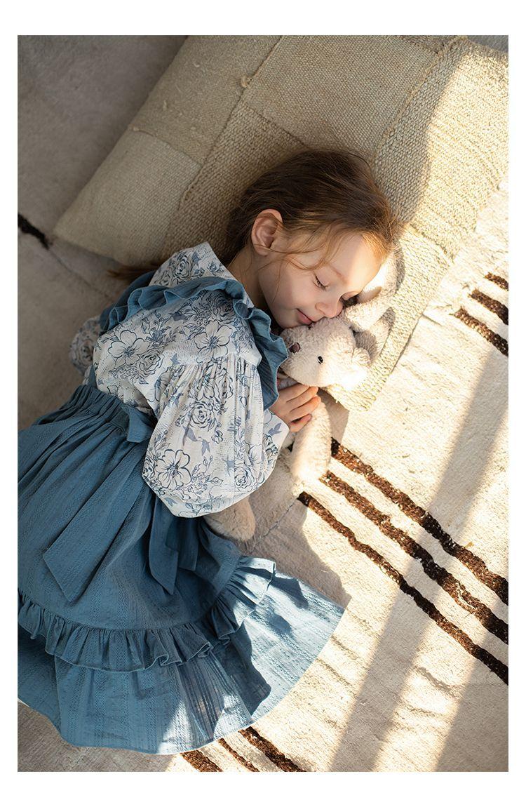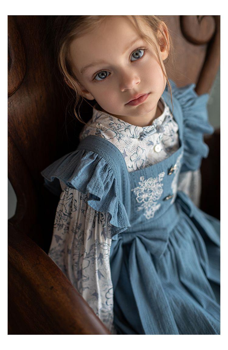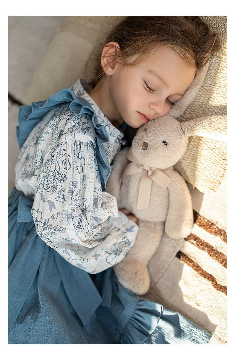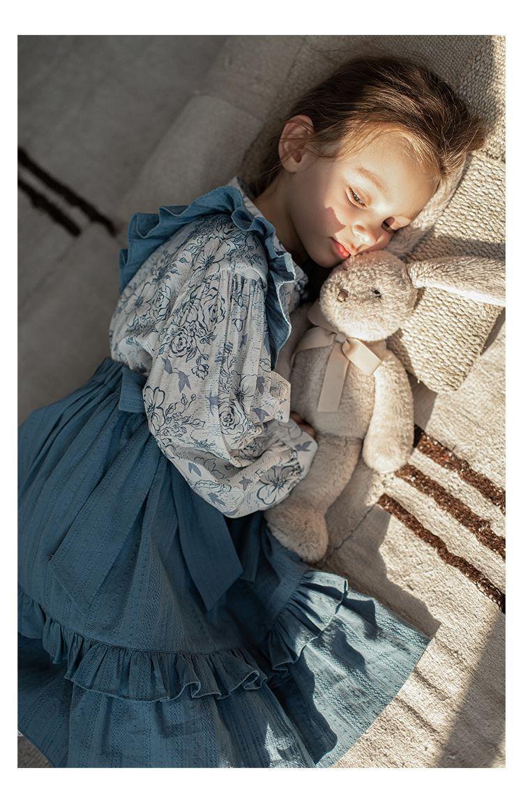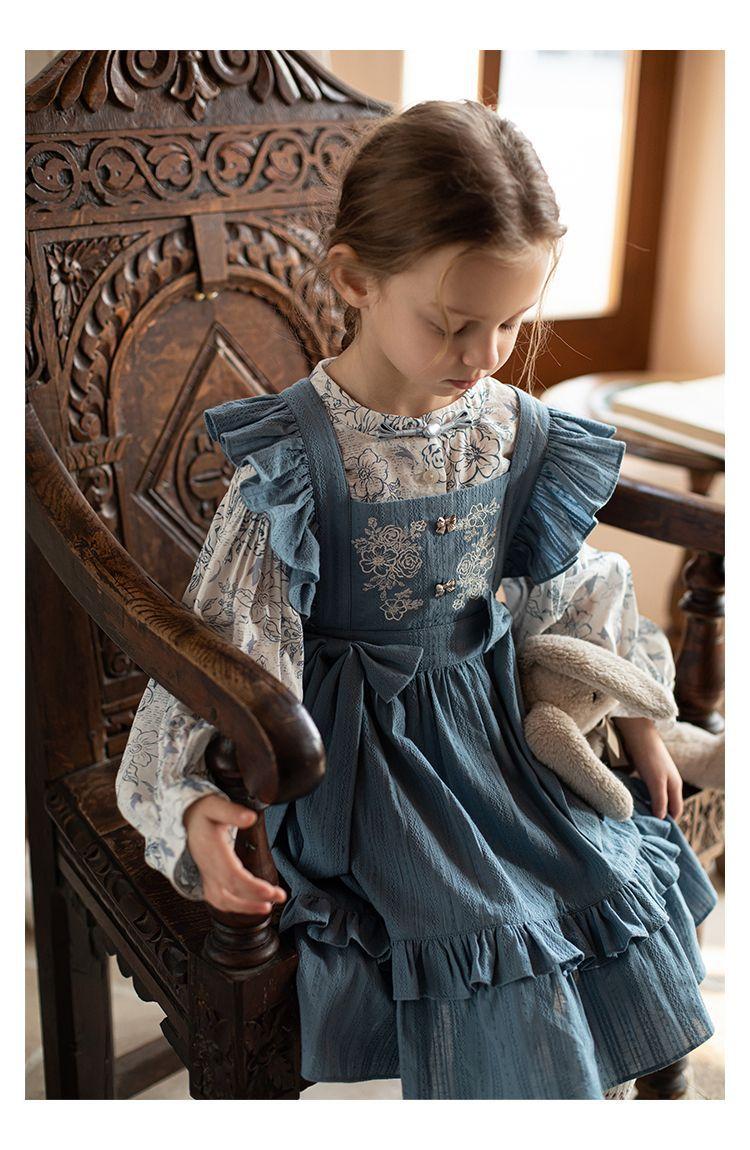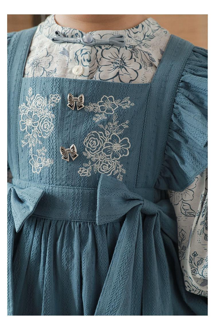 Traje de Otoño 2025 para Niñas Wulibu Vestido Dulce de Manga Abullonada Completa Camisa con Estampado Digital Completo