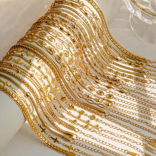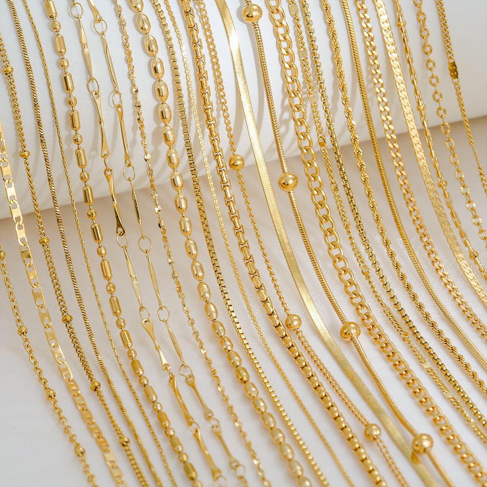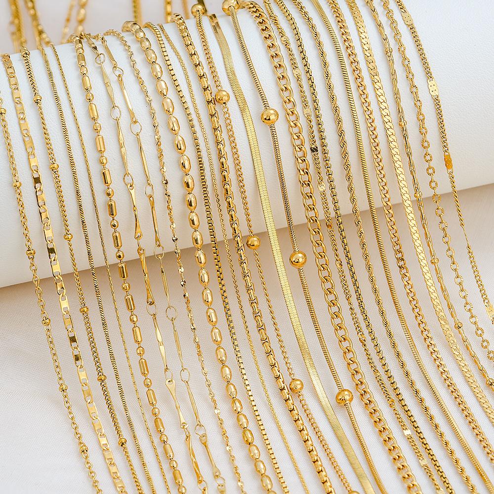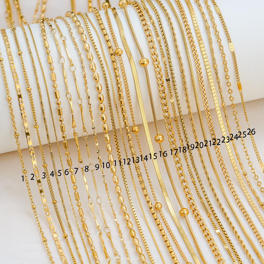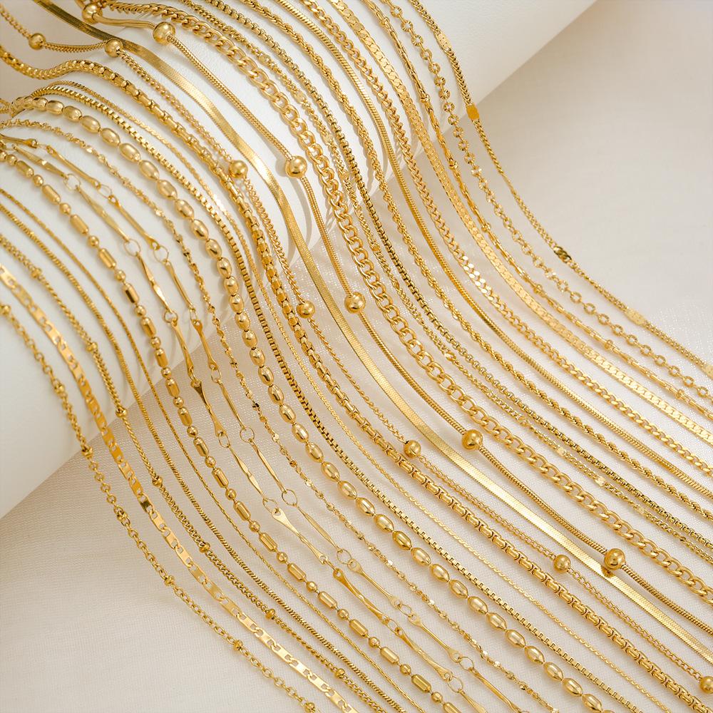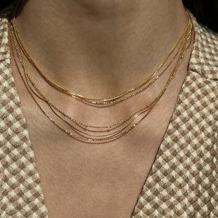 Collar de cadena de caja con base de acero de titanio simple de moda europea y americana para mujer, joyería de acero inoxidable chapado en 18 quilates