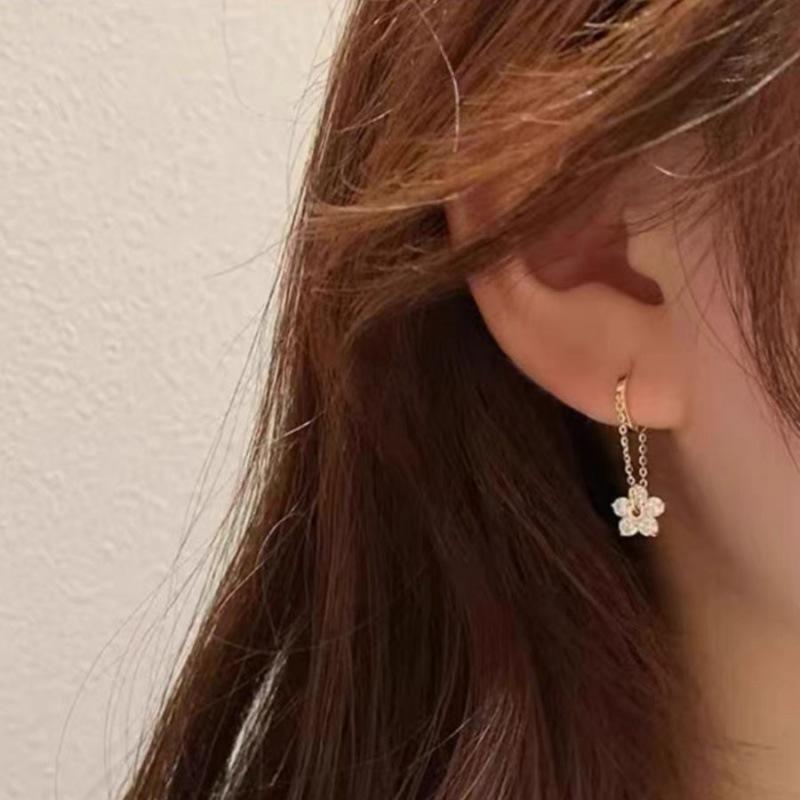 Pendientes de cadena con borlas y flores de hadas para mujer, aretes de nicho de verano 2024, nuevos aretes de moda