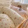 Juego de ropa de cama de algodón de cuatro piezas con dibujos animados de estilo ins, juego de sábanas de algodón 100% para dormitorio de estudiantes, juego de funda de cama de tres piezas