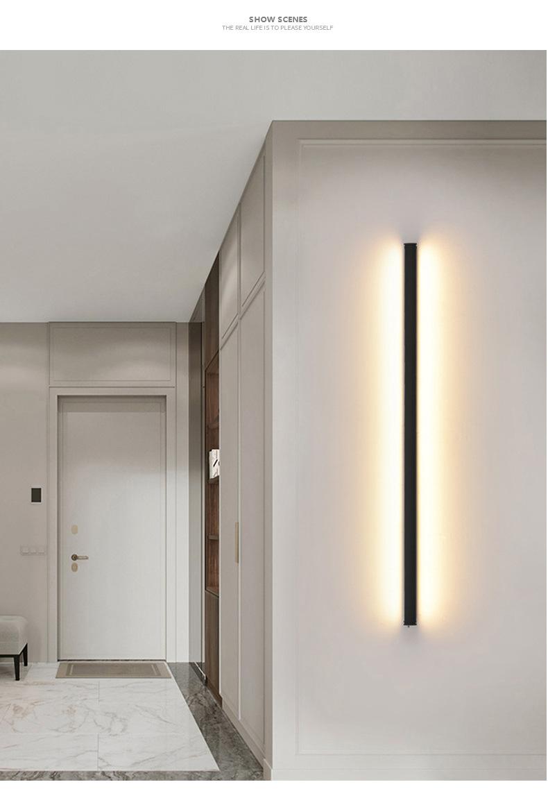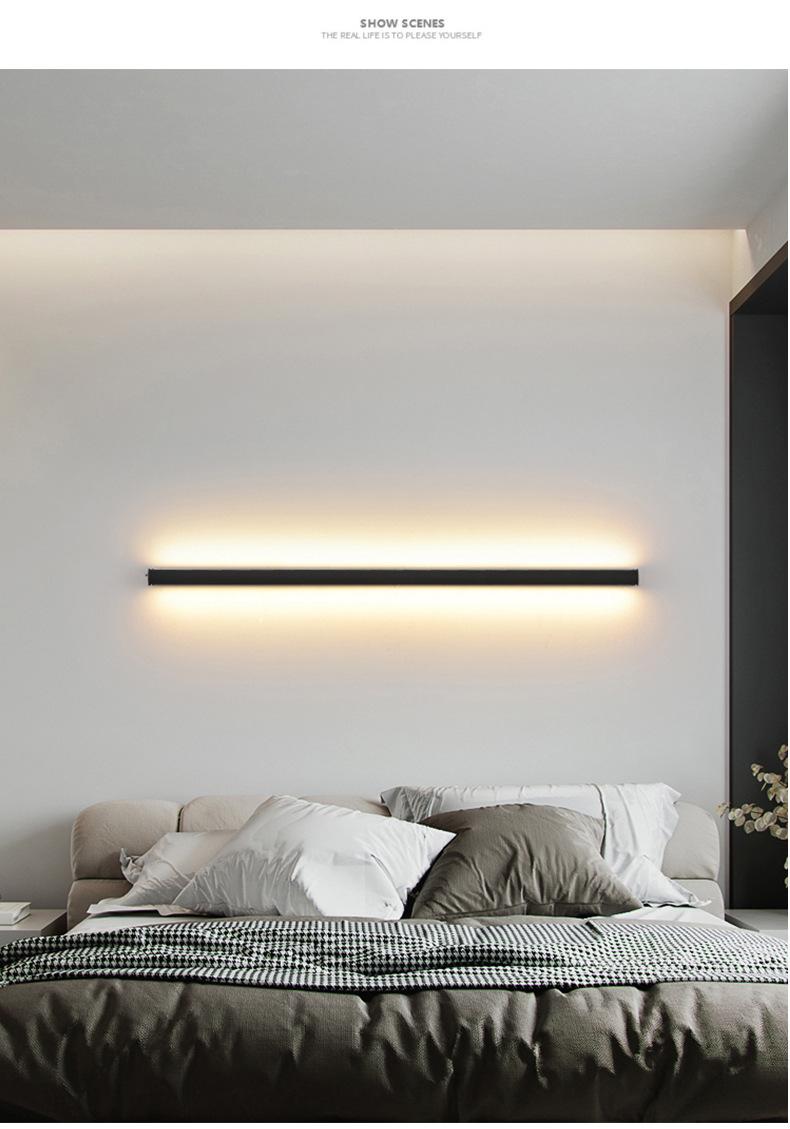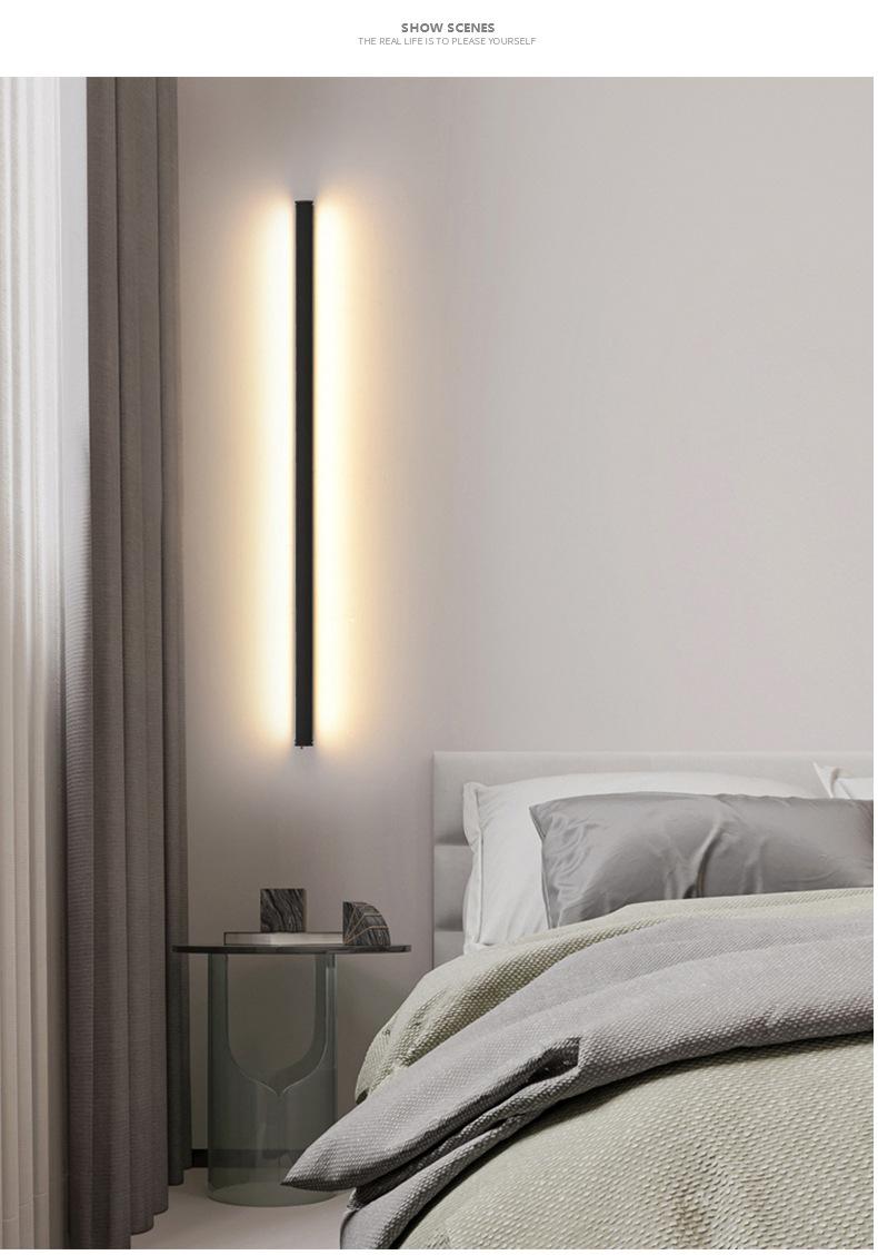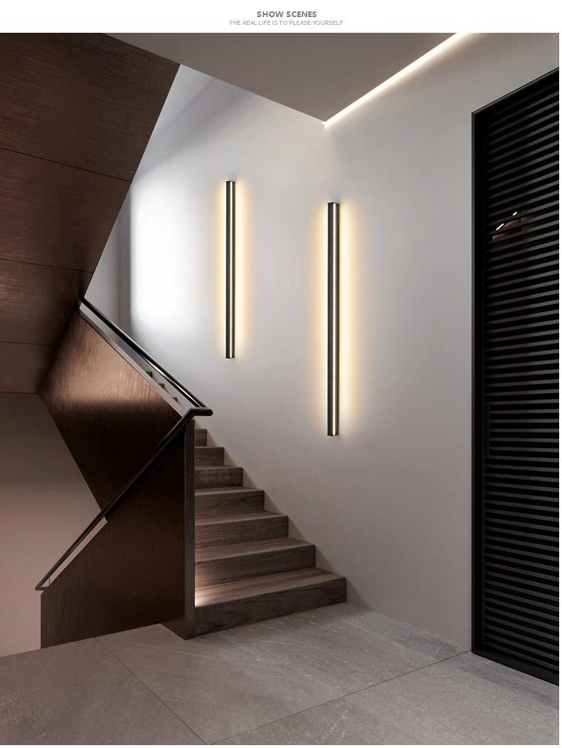 Lámpara de mesita de noche moderna y minimalista con tira larga para dormitorio, lámpara de pasillo LED con escalera, lámpara de pared de fondo para sala de estar