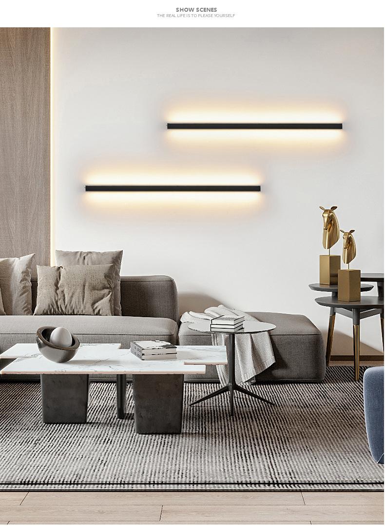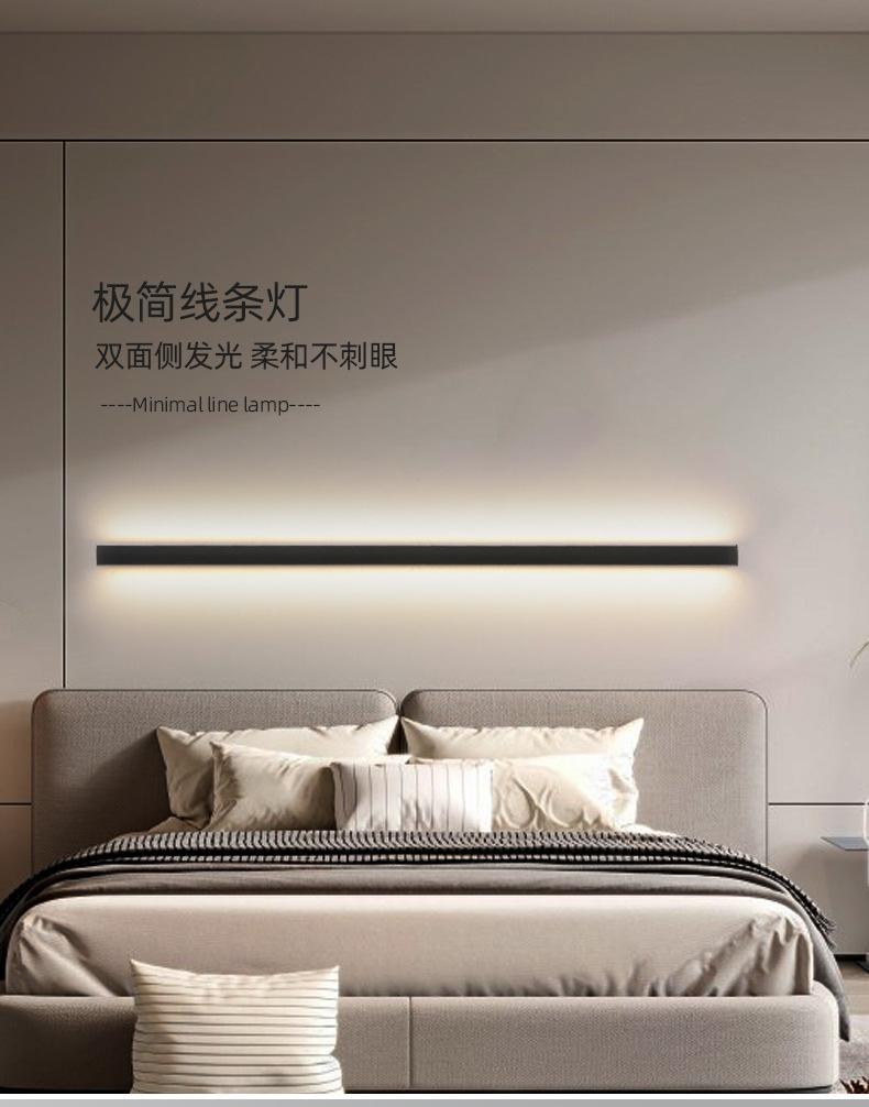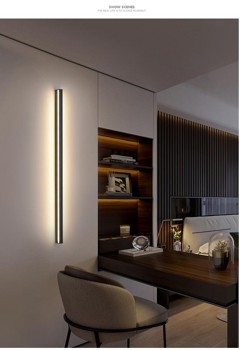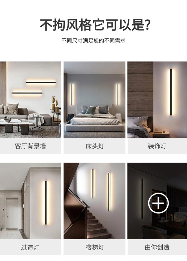 Lámpara de mesita de noche moderna y minimalista con tira larga para dormitorio, lámpara de pasillo LED con escalera, lámpara de pared de fondo para sala de estar