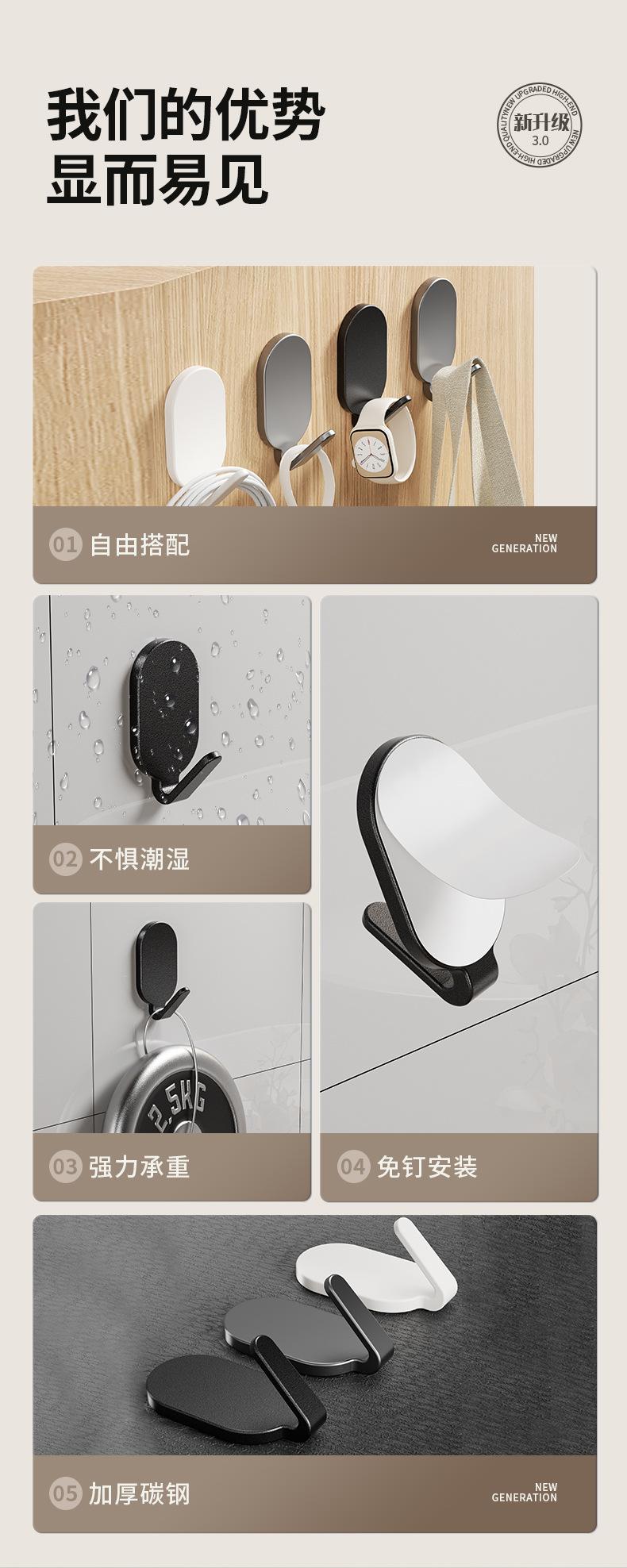 Gancho adhesivo fuerte con carga, dormitorio, baño, sin perforaciones, gancho sin costuras, cocina, baño, puerta trasera, pared superior