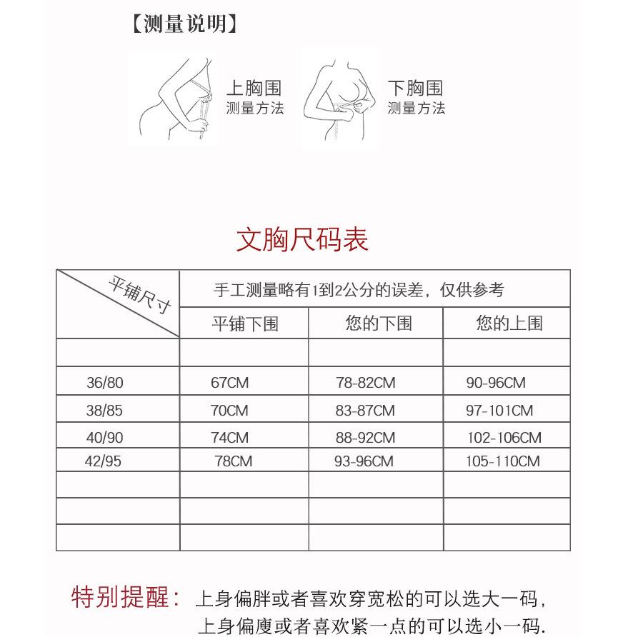 36/80B, 38/85B, 40/90B, 42/95B