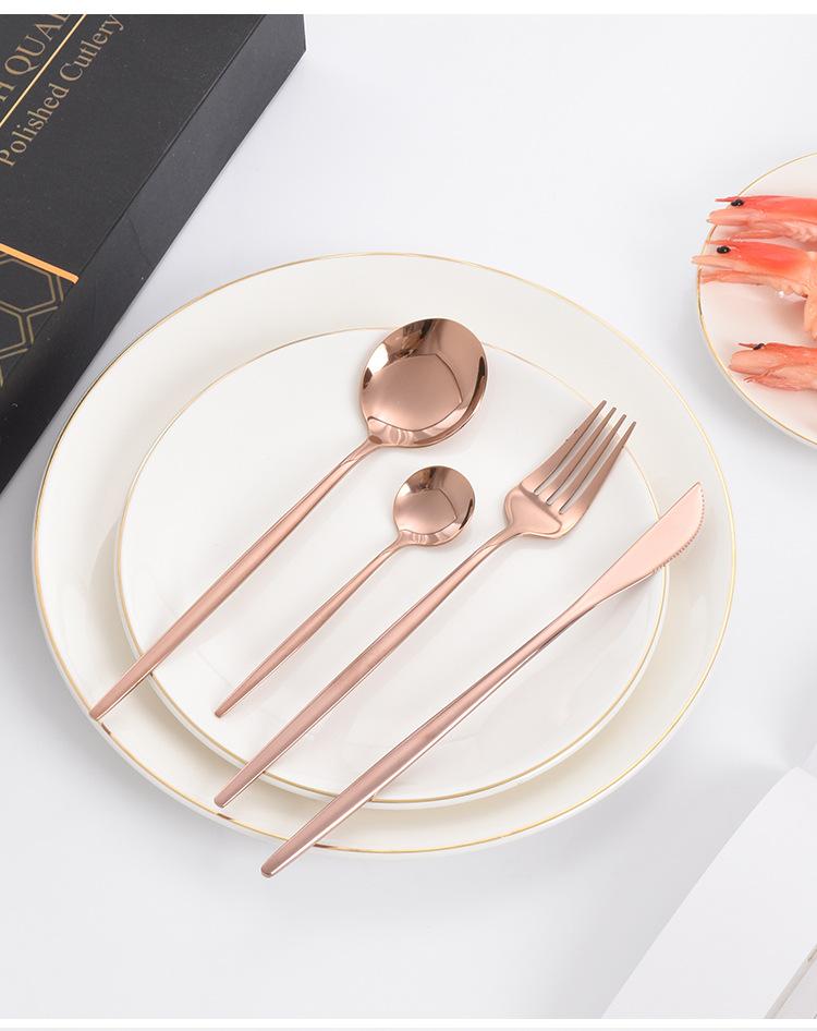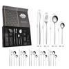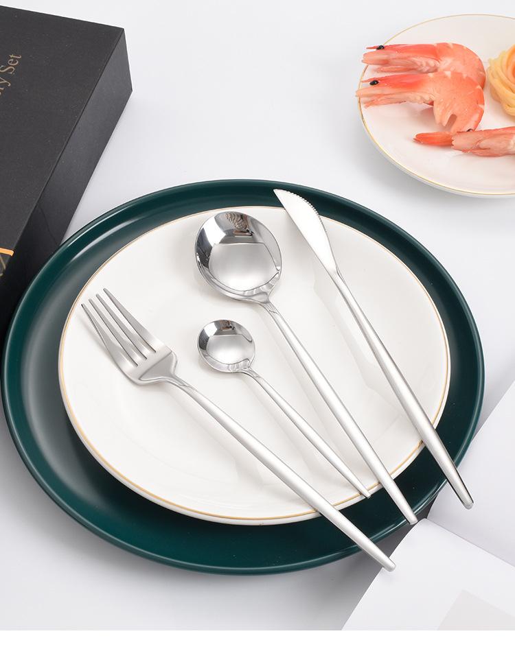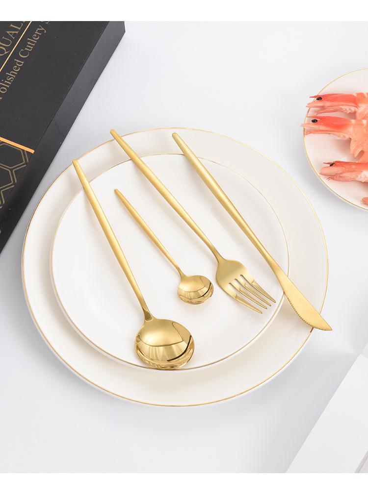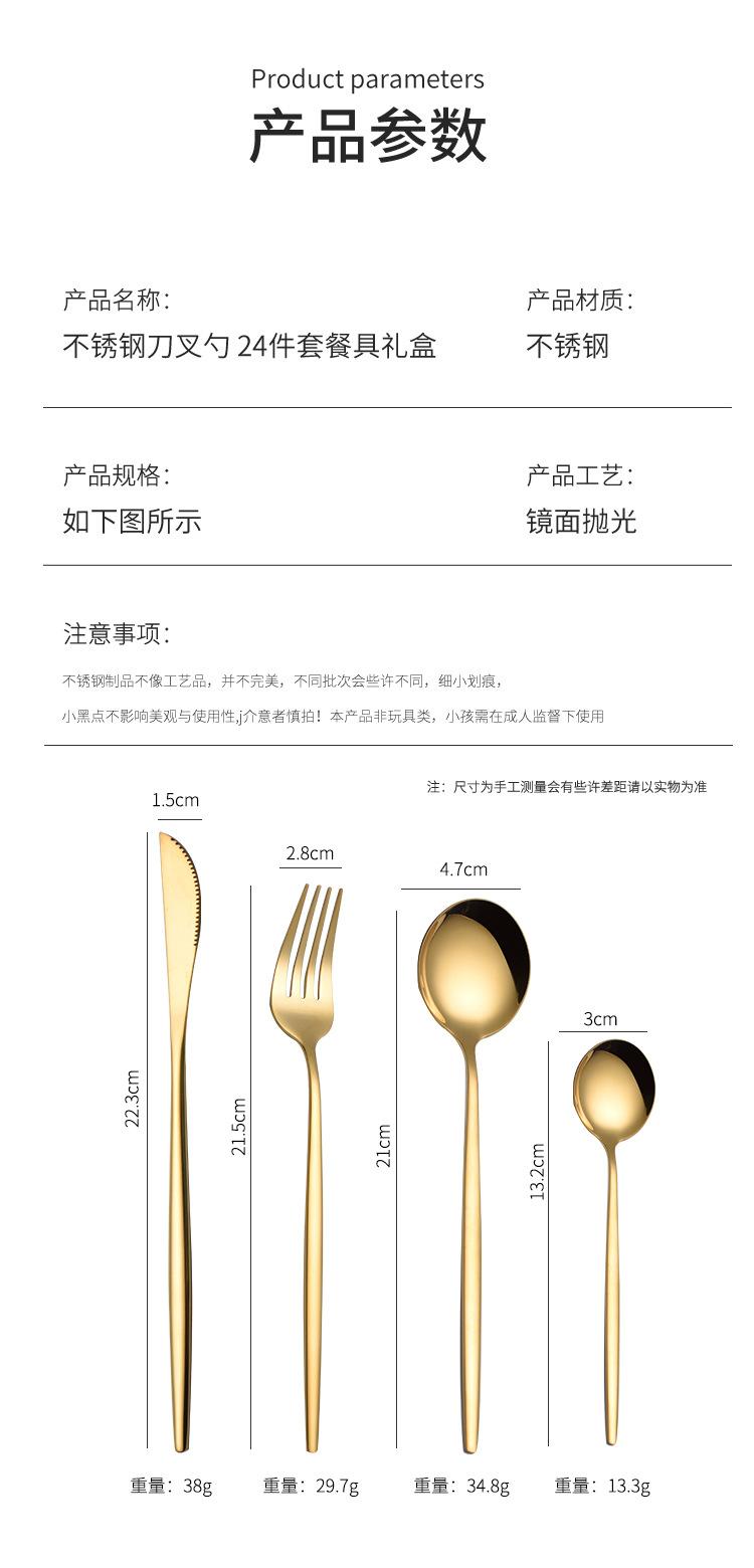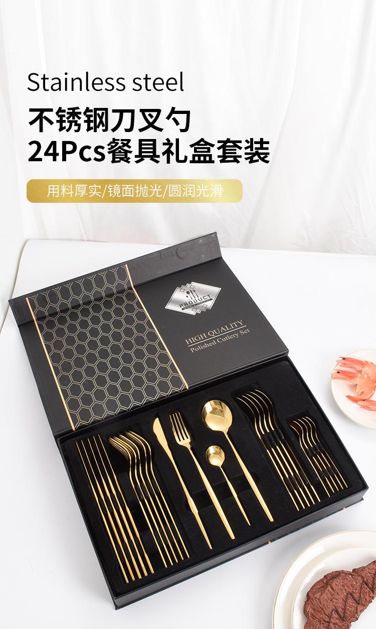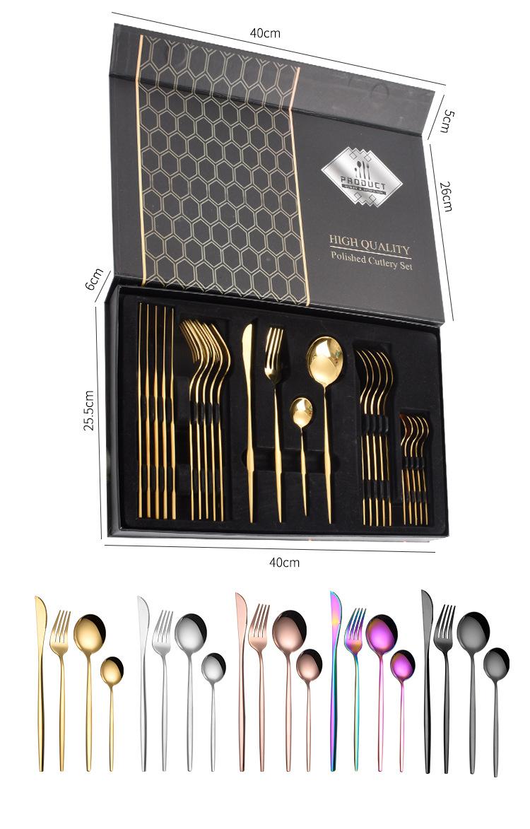Popular Vajilla Portuguesa de Acero Inoxidable Transfronteriza Juego de 24 Piezas Cubiertos Occidentales Dorados para Bistec, Tenedor y Cuchara Juego en Caja de Regalo