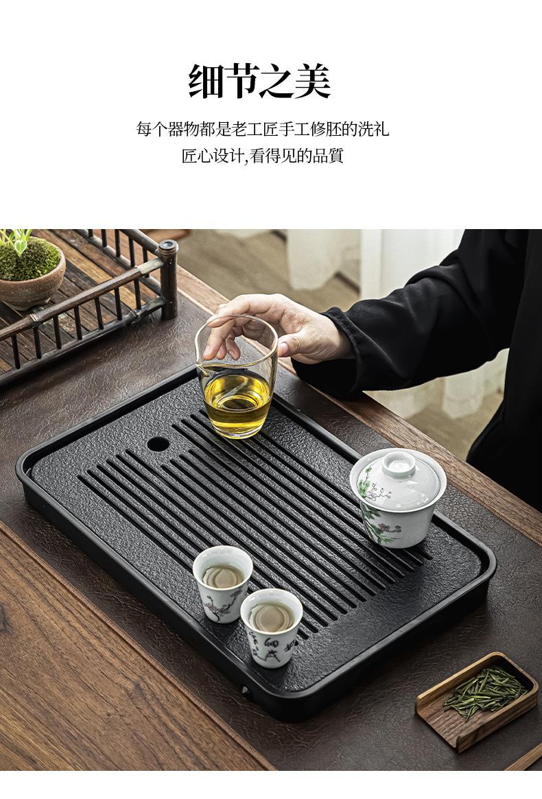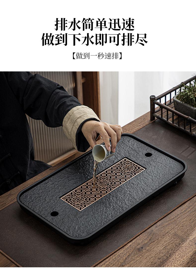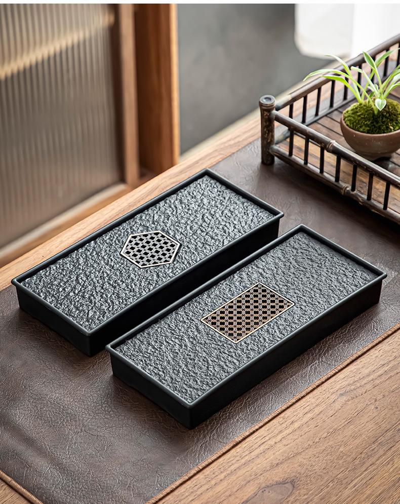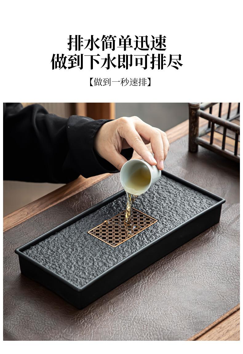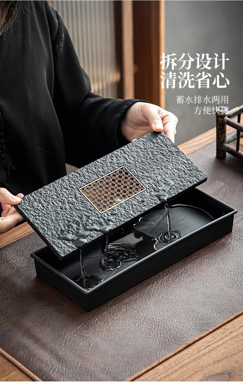 Bandeja de té de imitación de piedra Wujin al por mayor, juego de té ligero de lujo para el hogar, mesa de té, bandeja de secado pequeña con almacenamiento y drenaje
