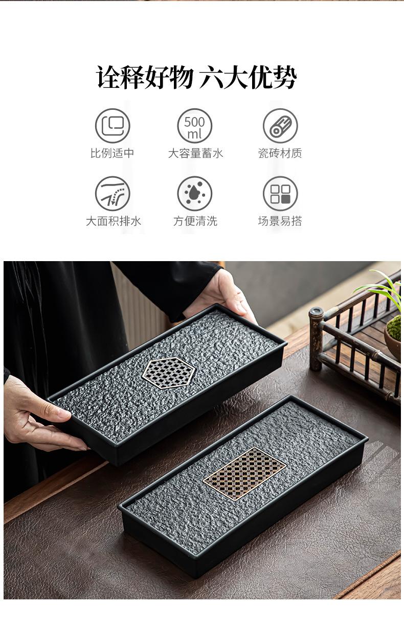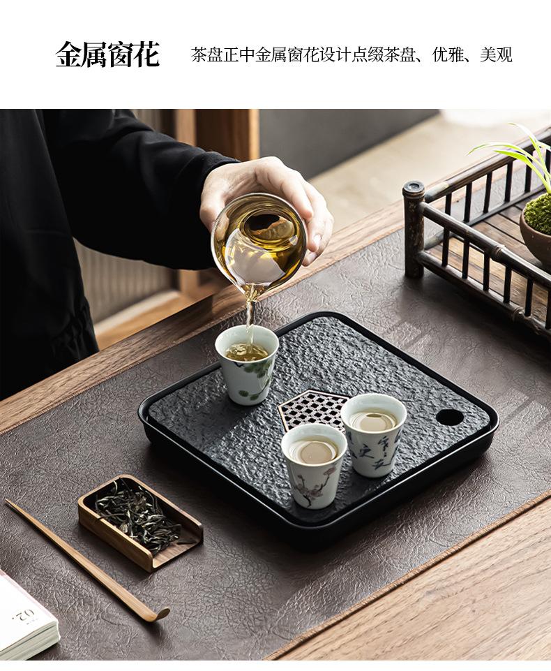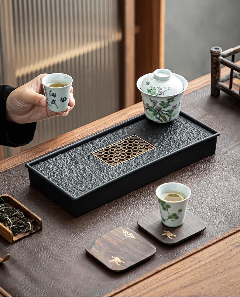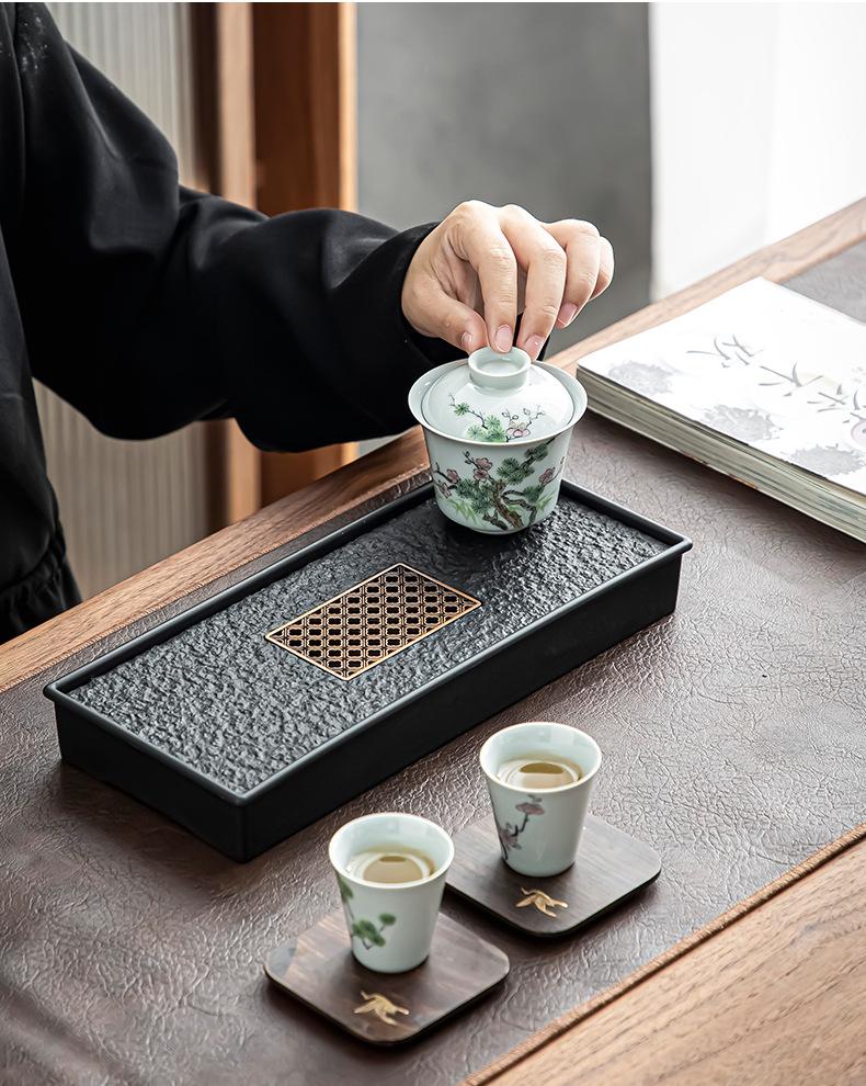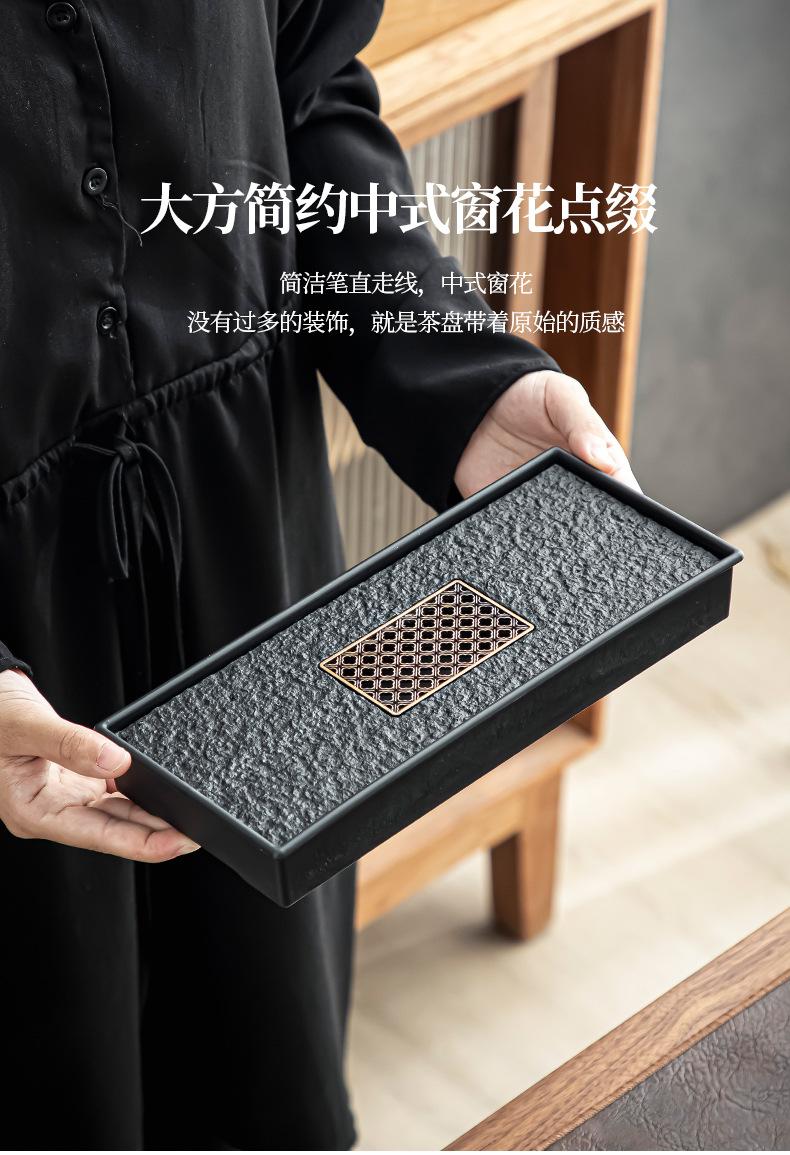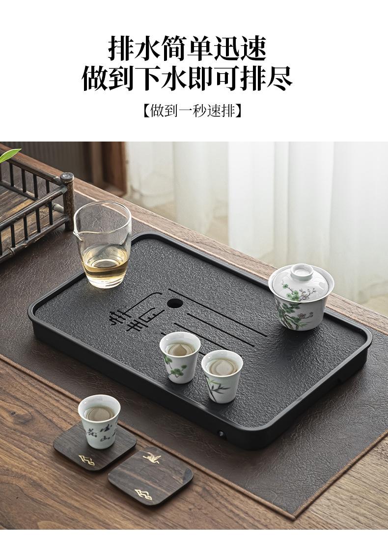 Bandeja de té de imitación de piedra Wujin al por mayor, juego de té ligero de lujo para el hogar, mesa de té, bandeja de secado pequeña con almacenamiento y drenaje