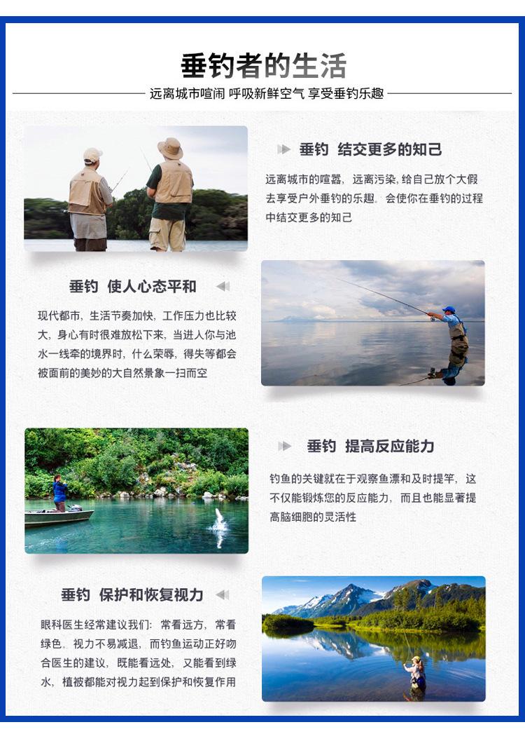 Nuestra fábrica produce y vende principalmente diversos suministros y accesorios de pesca. Entre nuestros productos especiales se incluyen flotadores de siete estrellas, flotadores de pesca, clips para sublíneas, asientos para flotadores, soportes para cañas de pescar, cebos, cajas de pesca, sillas de pesca, cañas de pescar y otros productos.