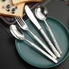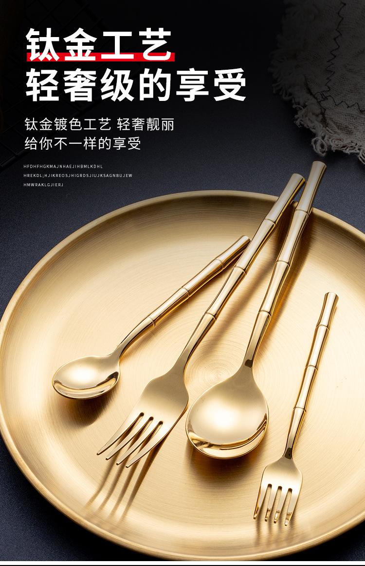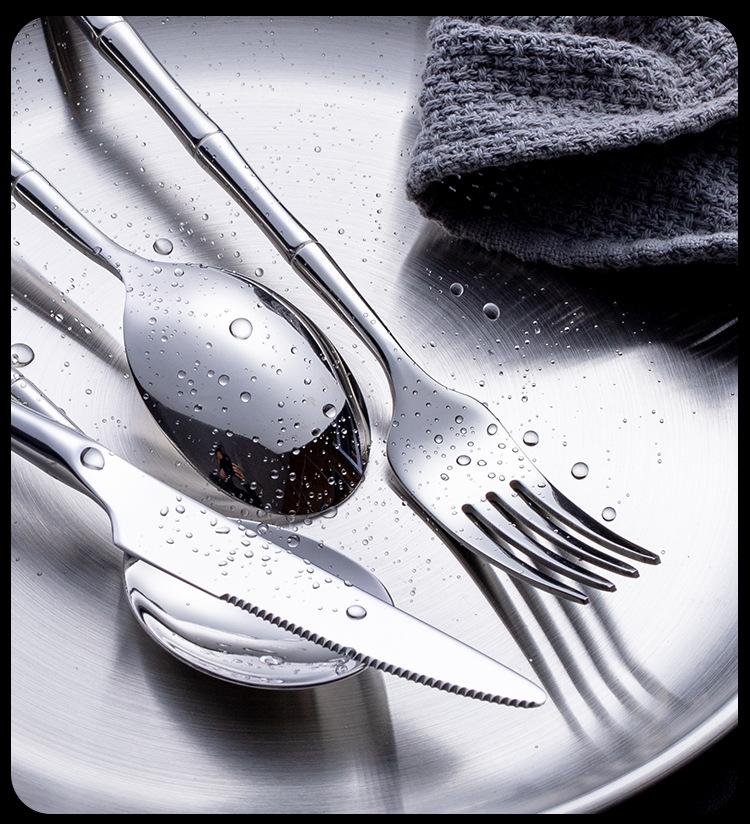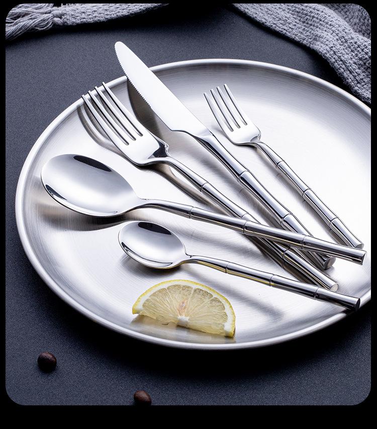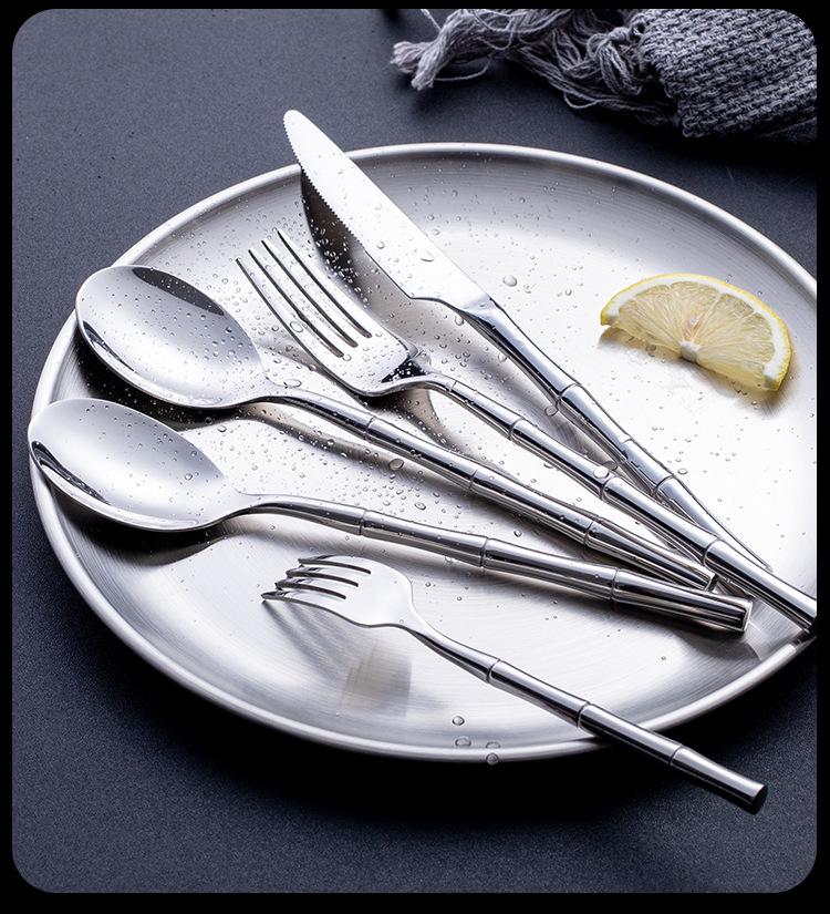 Cuchara de hotel 304, venta al por mayor de fábrica, vajilla de acero inoxidable con mango de bambú, cuchillo y tenedor occidentales, cuchillo y tenedor para carne domésticos