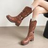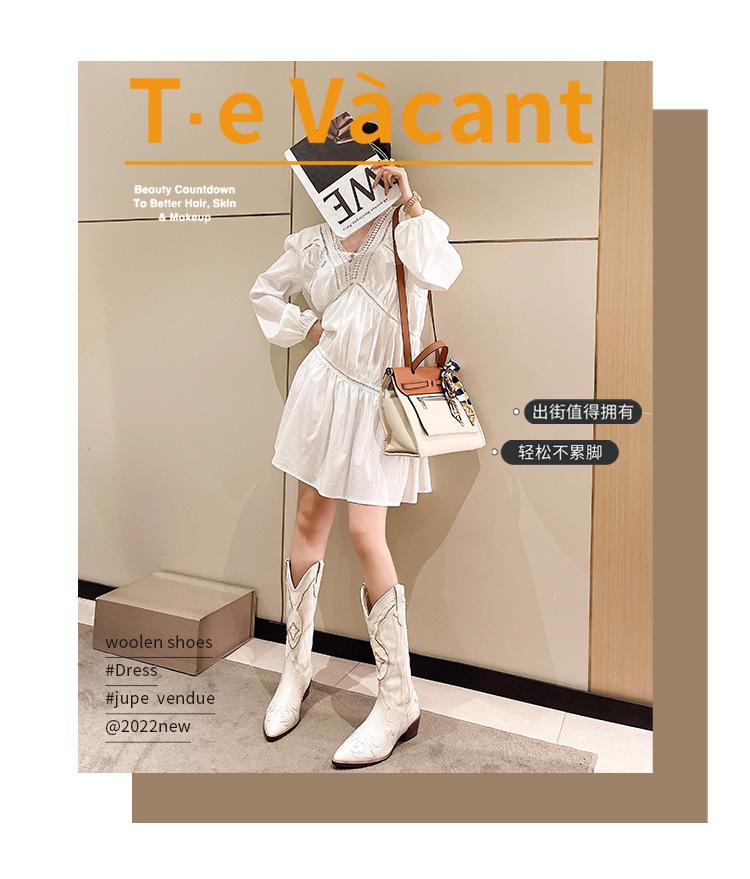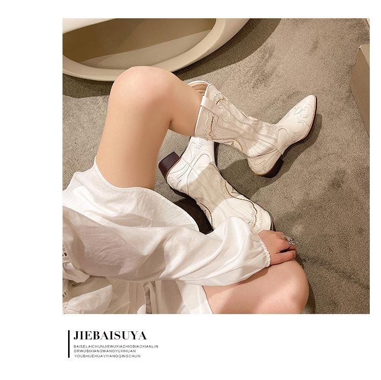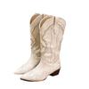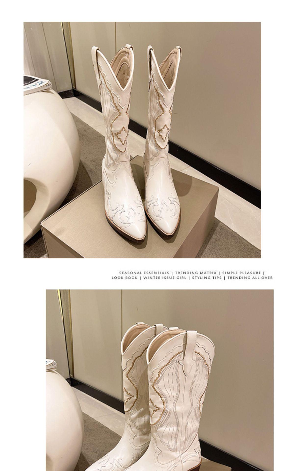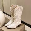 Botas Vaqueras de Cowboy Occidentales hasta la Rodilla Bordadas con Boca en V Europeas y Americanas para Mujer 2024 Nuevas Botas de Moda Retro de Caballero Blanco con Tacón Grueso