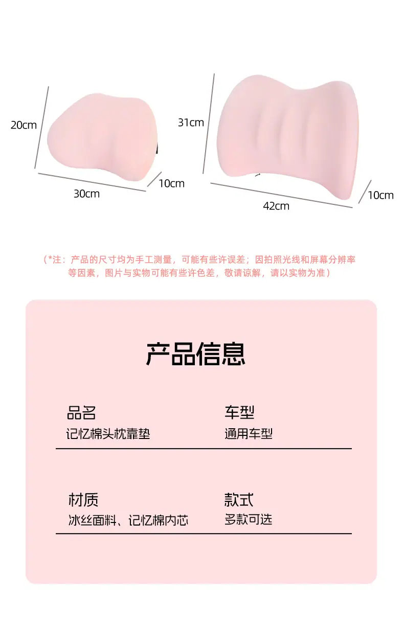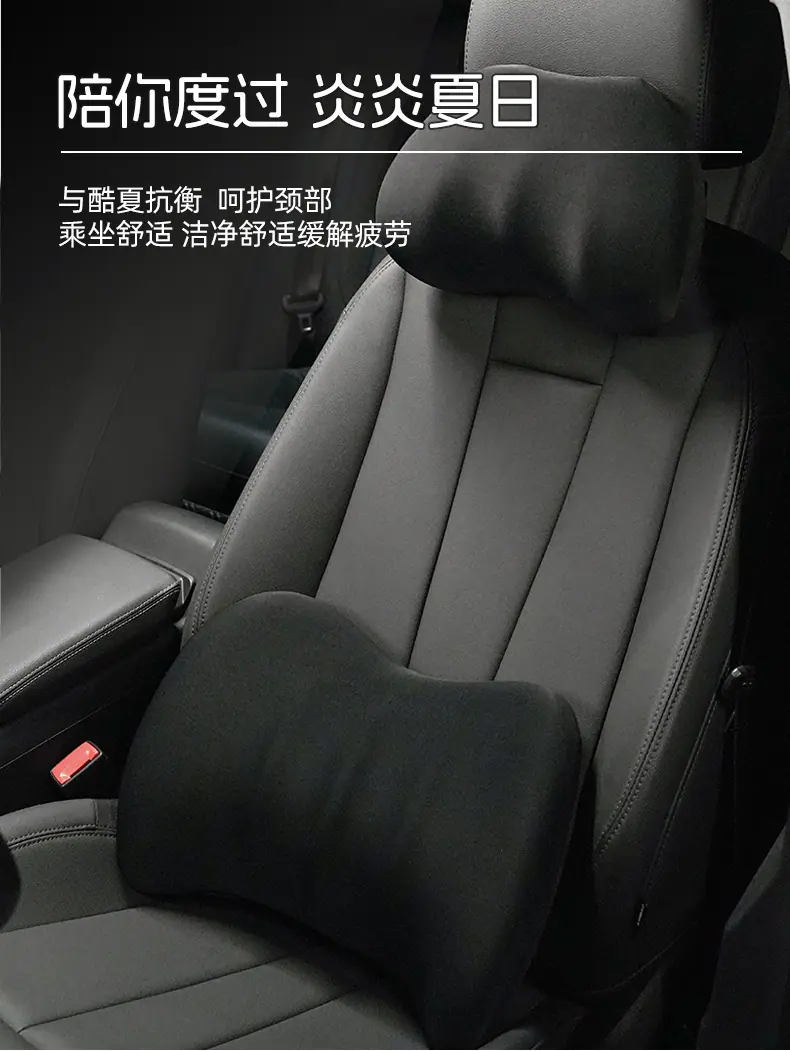 Reposacabezas de coche de verano, almohada de espuma viscoelástica para la cintura, almohada para el cuello, cojín de cintura para asiento de coche de seda de hielo simple