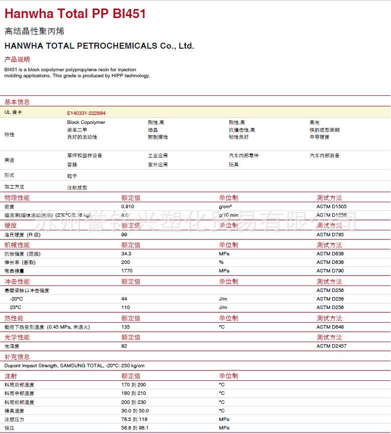 Venta al por mayor PP Hanwha Total BI452 Autopartes Plástico Material Industrial Gránulos de Materia Prima Plástica Blanca