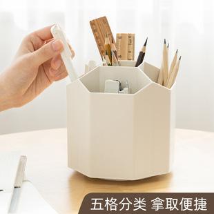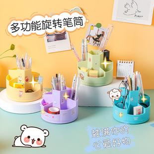| Portalápices de escritorio giratorio de gran capacidad creativo, contenedor de almacenamiento de papelería para estudiantes, caja de almacenamiento multifuncional |