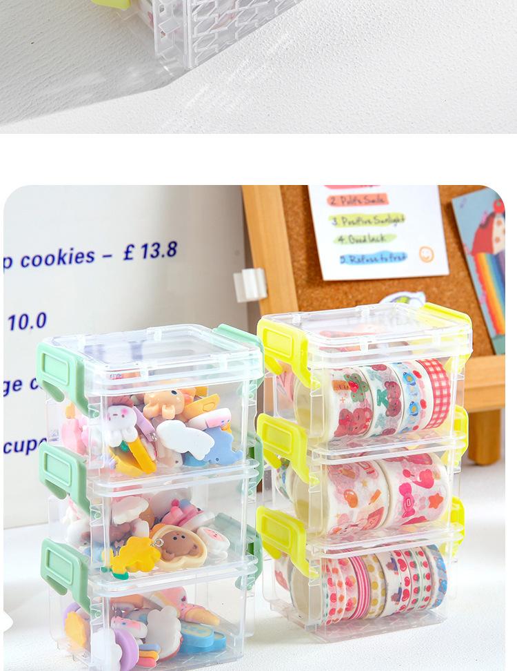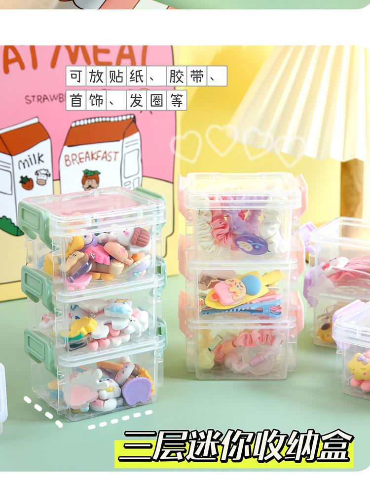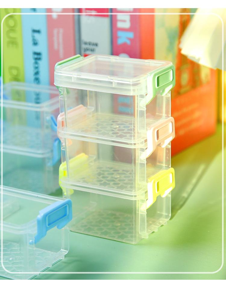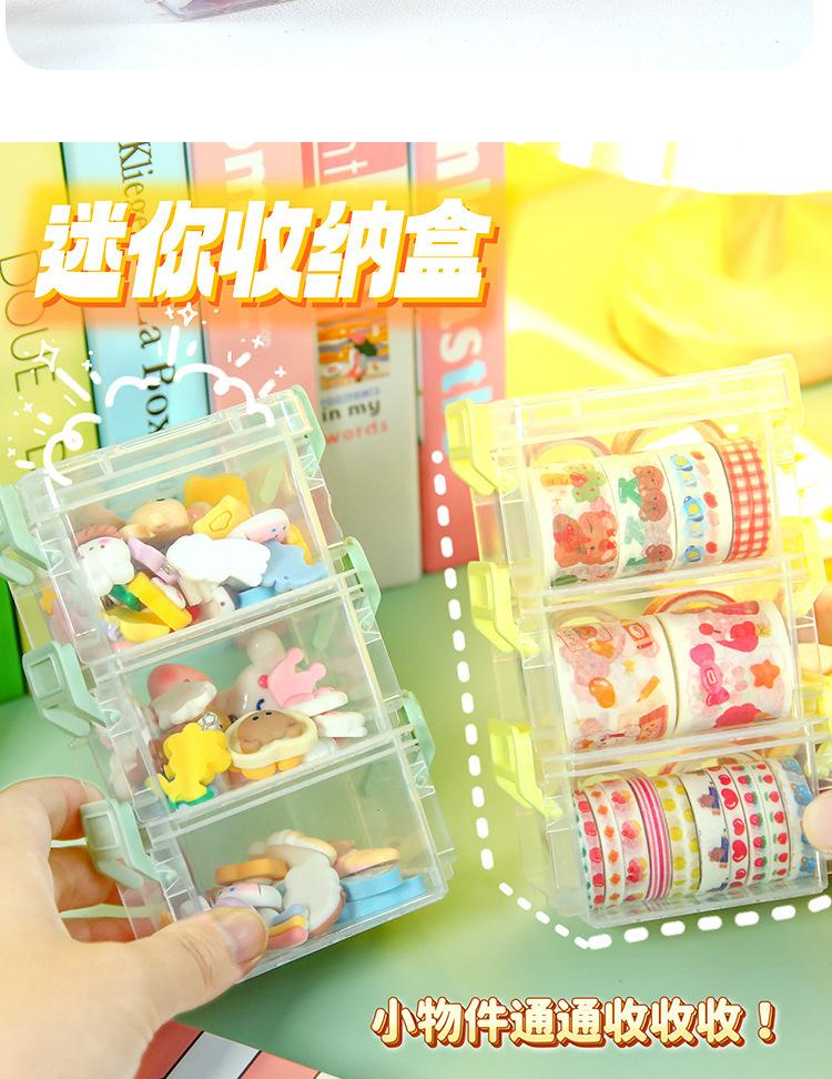 | Mini caja de almacenamiento pequeña de tres capas, hebilla para tarjetas de cuenta de mano, caja organizadora multicapa, caja para cables de datos, almacenamiento de residuos de escritorio para estudiantes |