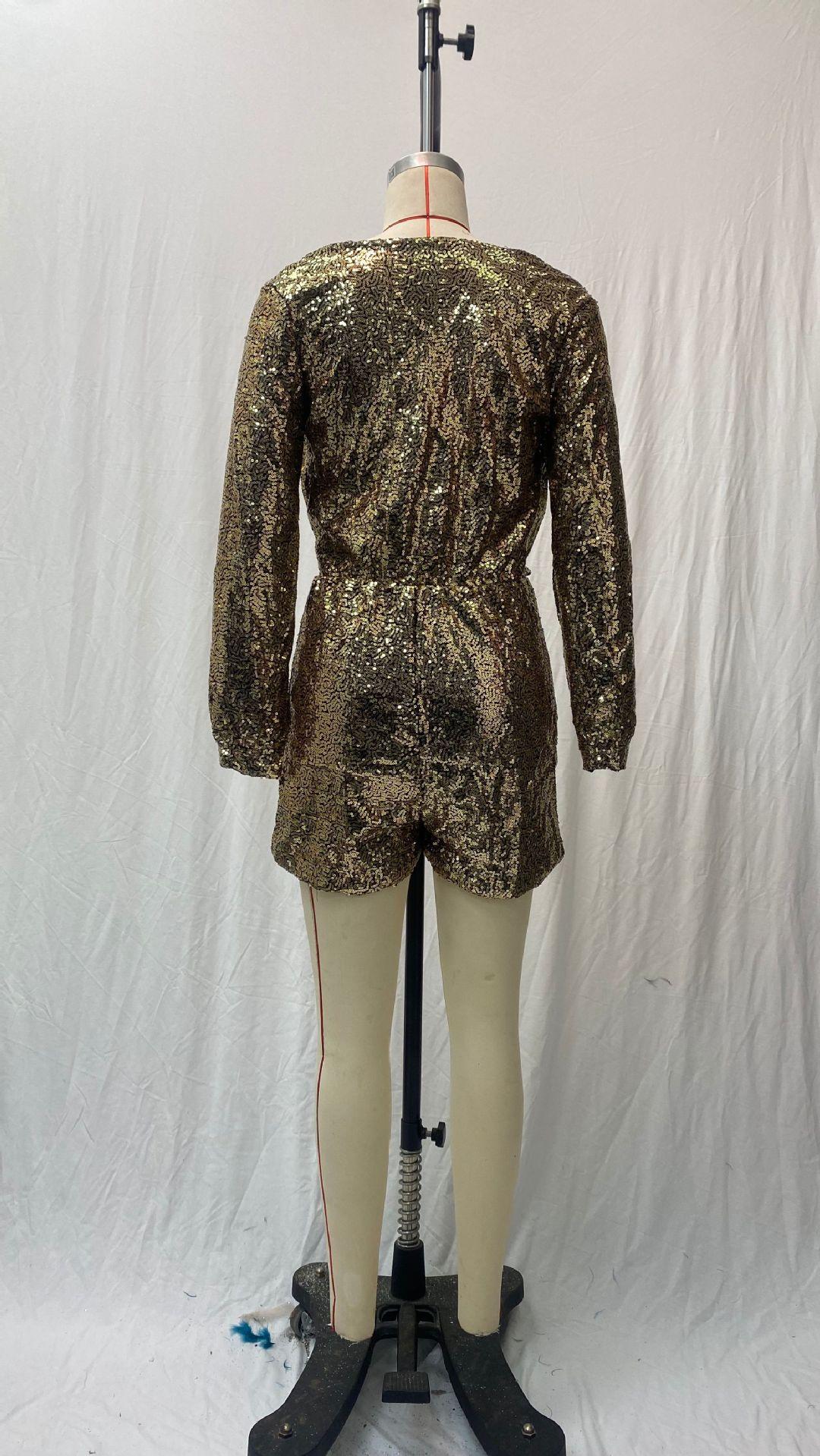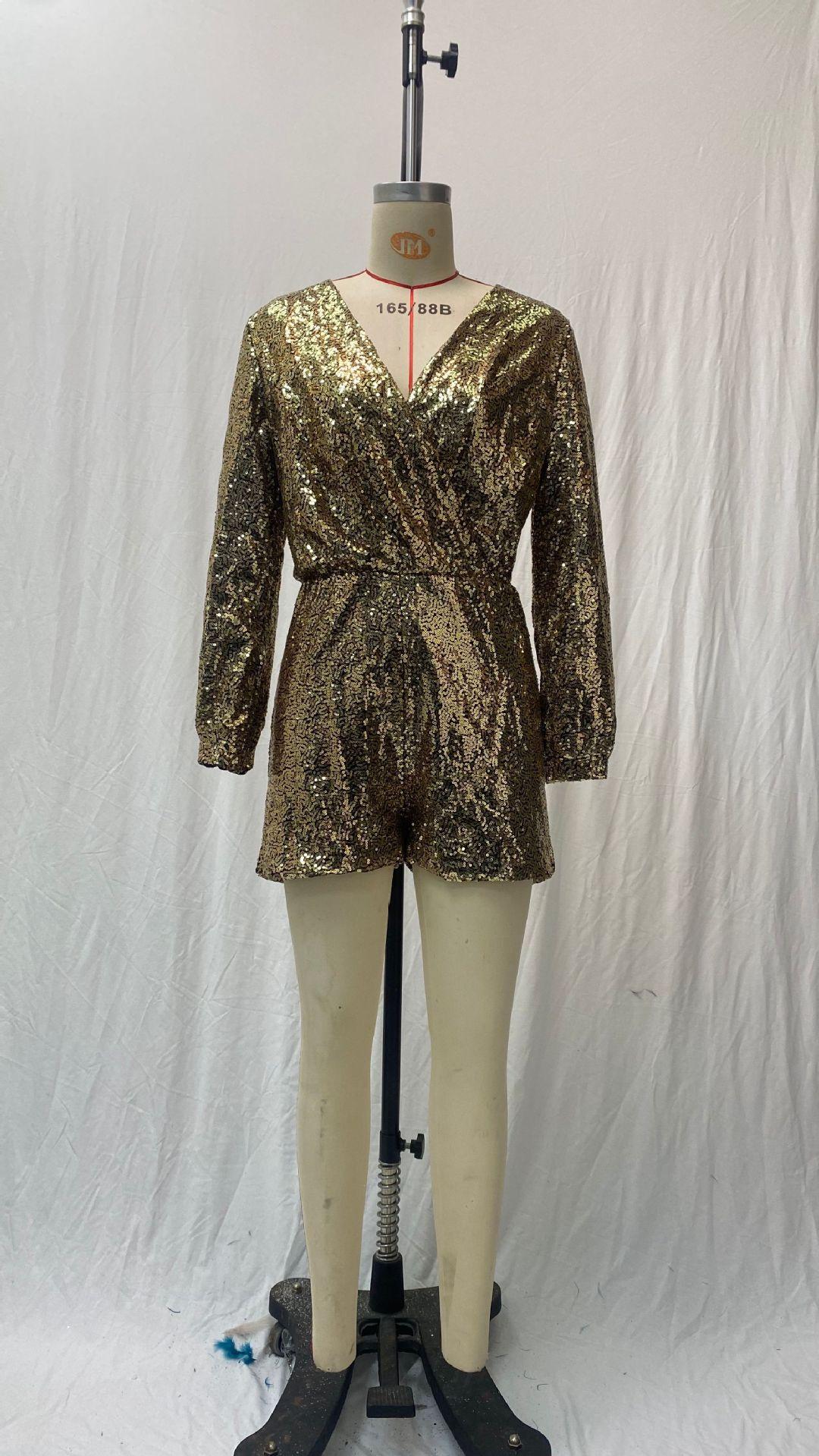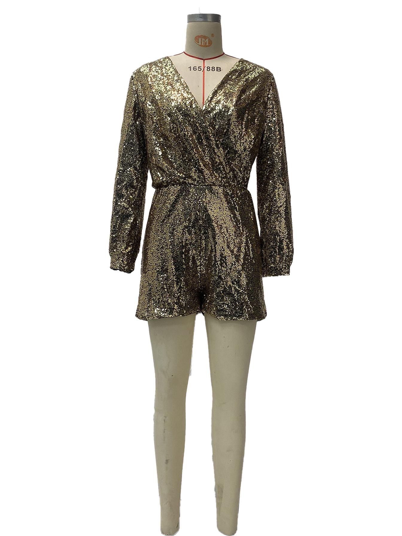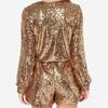 2025 Nueva Ropa de Mujer Transfronteriza Europea y Americana Escote en V Profundo Cintura Manga Larga Cubre Caderas Moda Sexy Exportación Mono con Lentejuelas