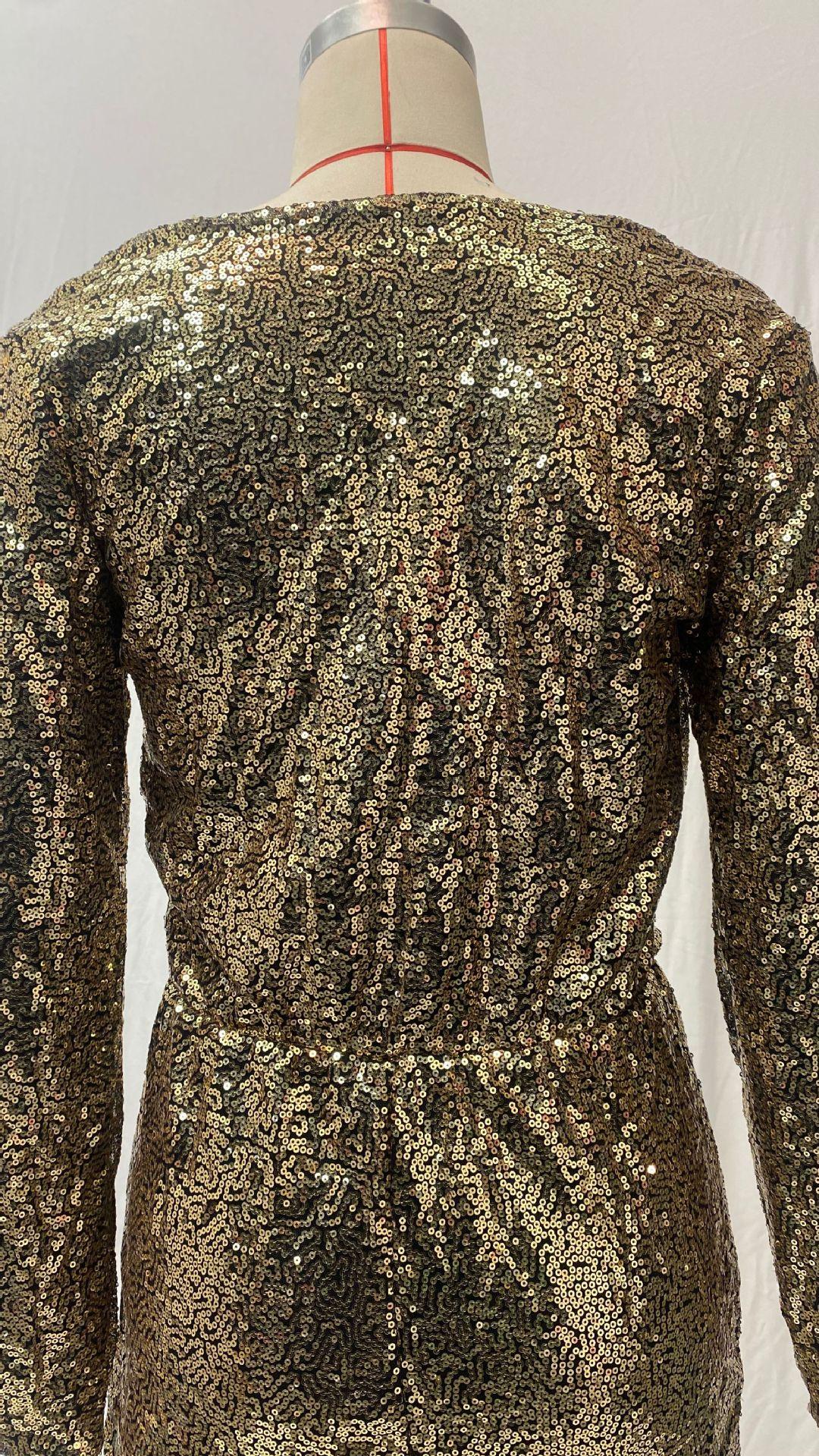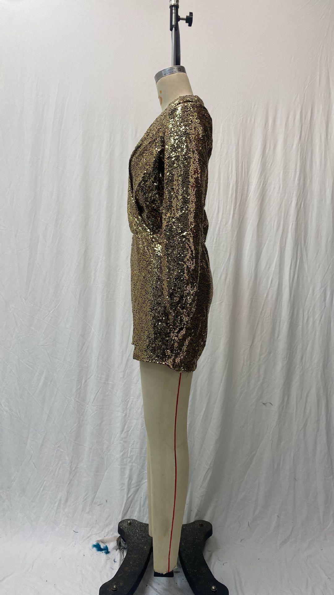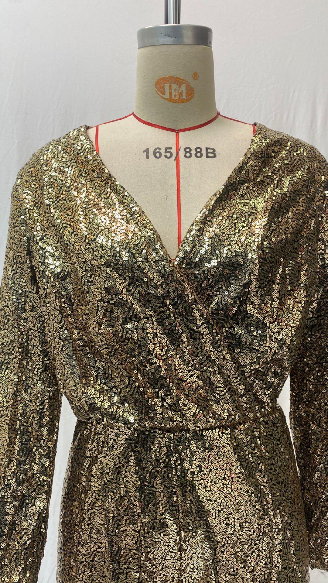 2025 Nueva Ropa de Mujer Transfronteriza Europea y Americana Escote en V Profundo Cintura Manga Larga Cubre Caderas Moda Sexy Exportación Mono con Lentejuelas