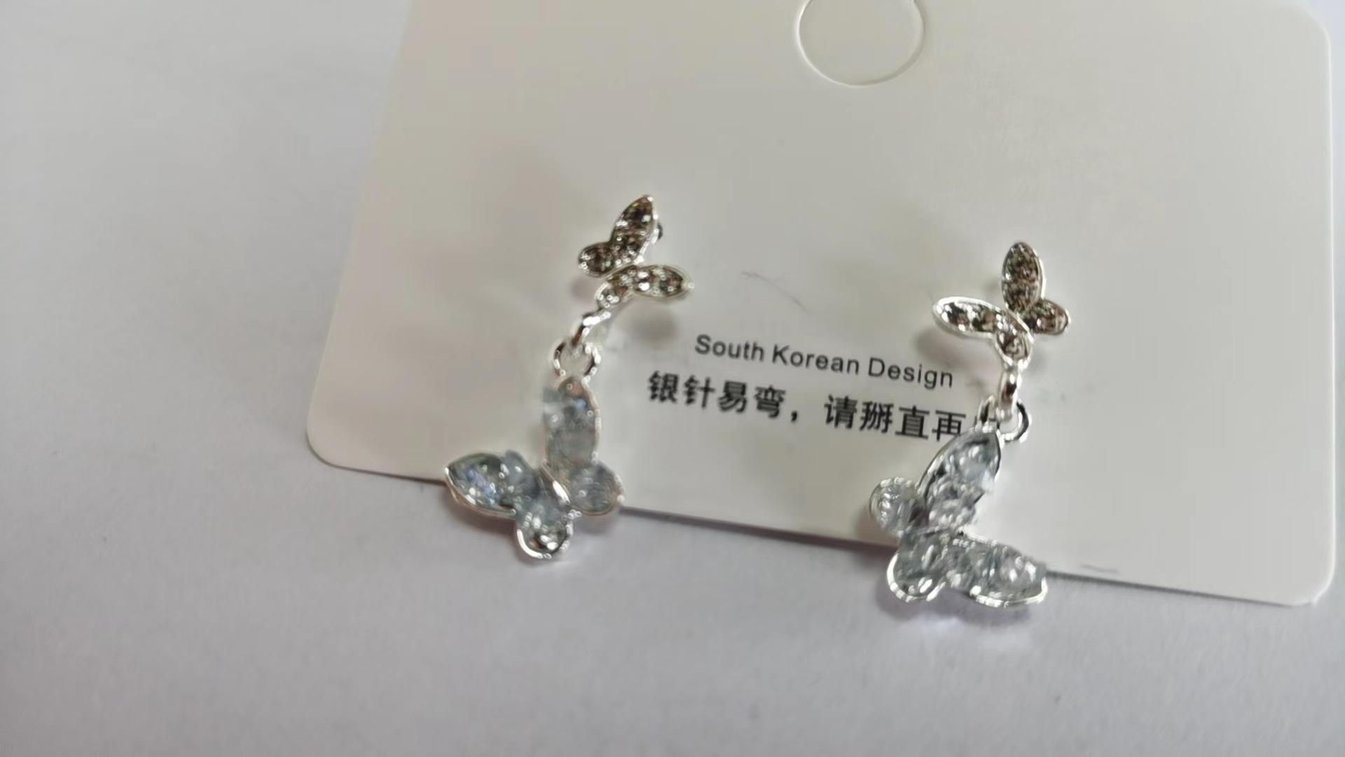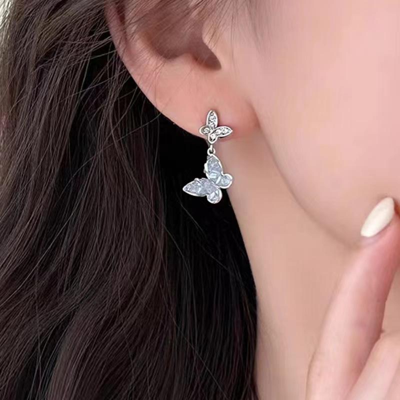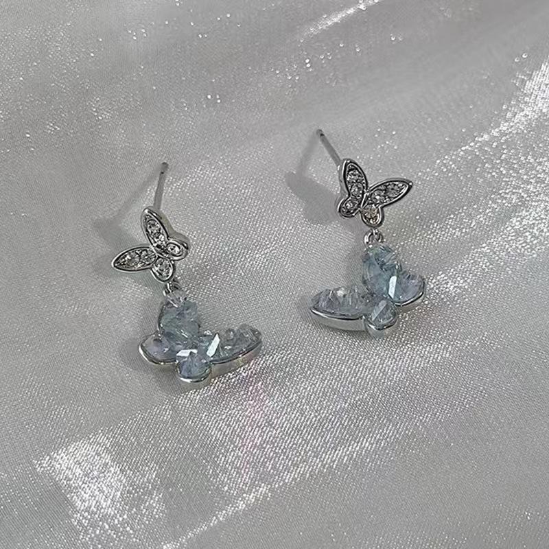 Compra Pendientes de metal con circonita y mariposa de cristal azul para mujer, de alta gama, con personalidad de hada, elegantes y a la moda que combinan con todo. al por mayor en Joom.pro