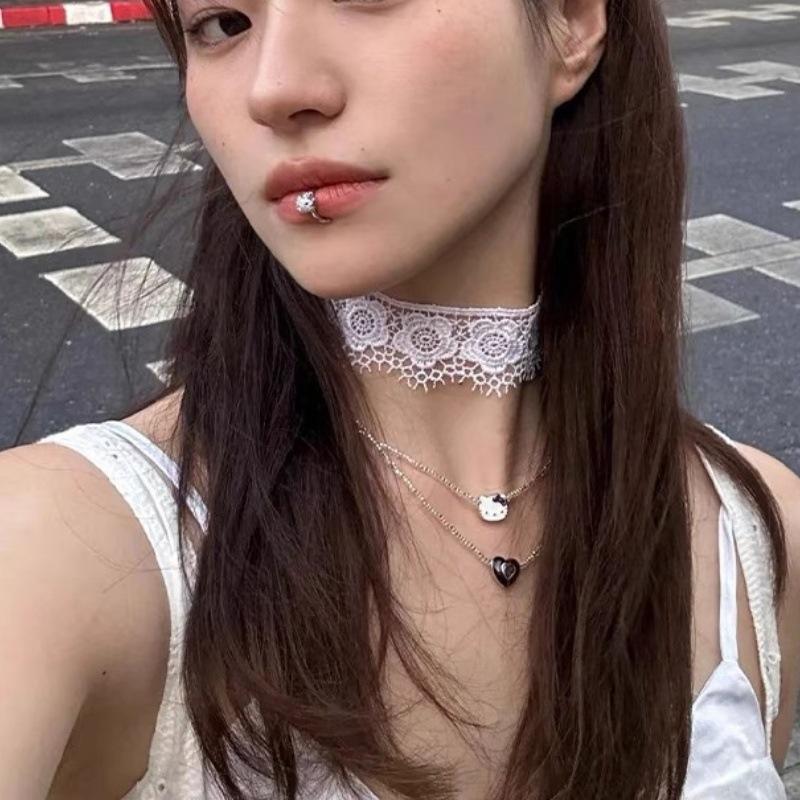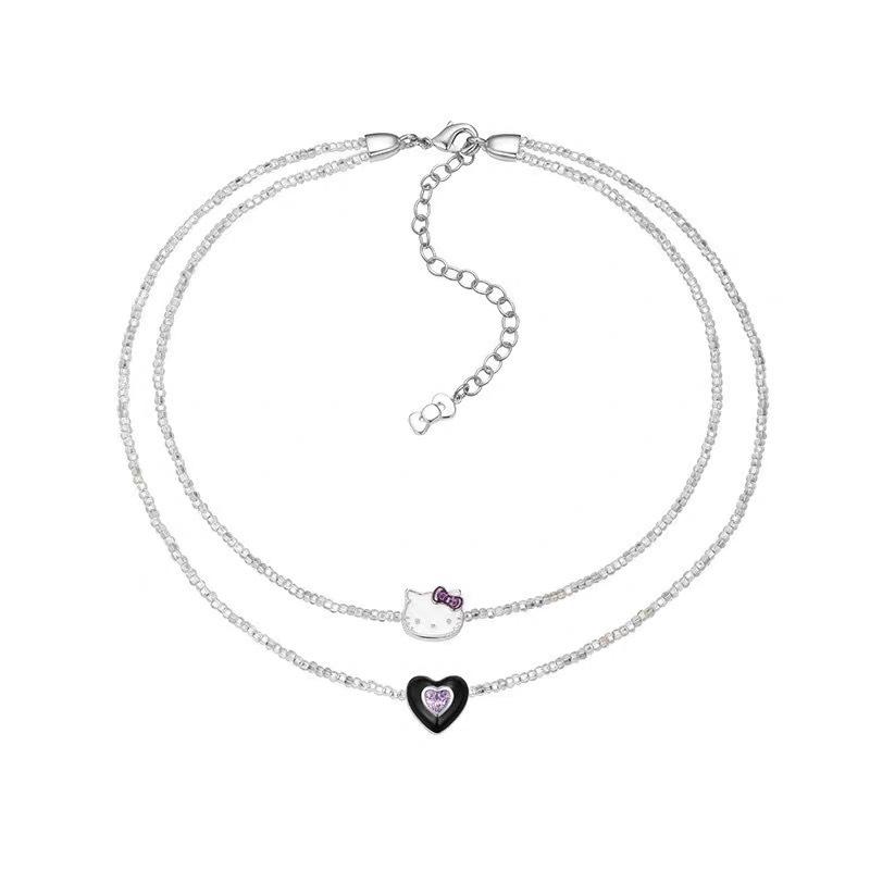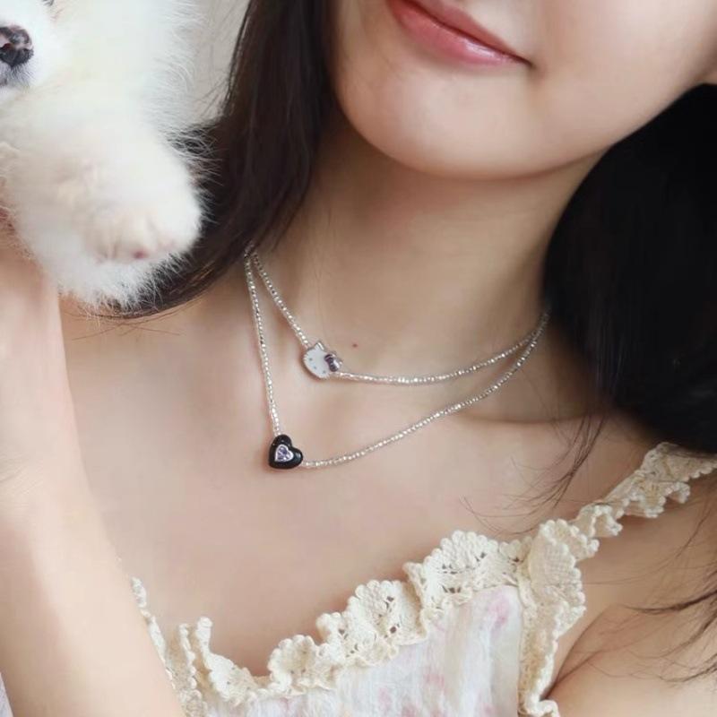 Collar de amor de HelloKitty del mismo estilo de Zhou Yutong para mujer, diseño de lujo ligero de verano, cadena de clavícula superpuesta de alta gama para mujer