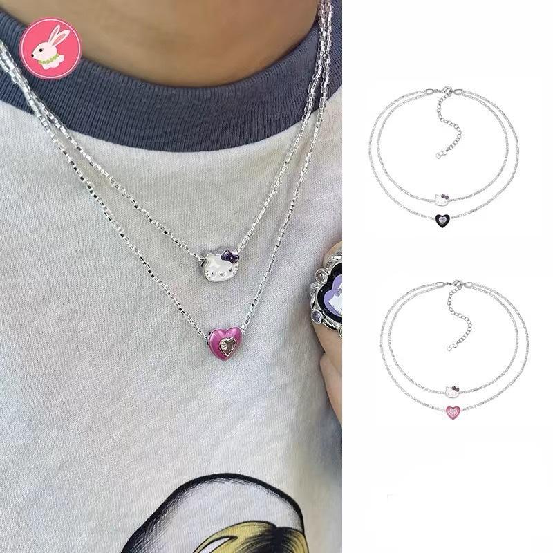 Compra Collar de amor de HelloKitty del mismo estilo de Zhou Yutong para mujer, diseño de lujo ligero de verano, cadena de clavícula superpuesta de alta gama para mujer al por mayor en Joom.pro
