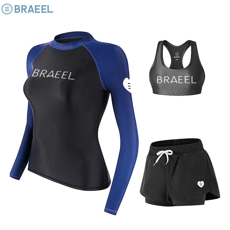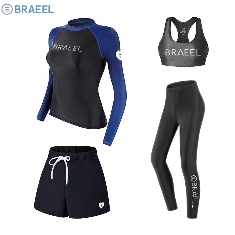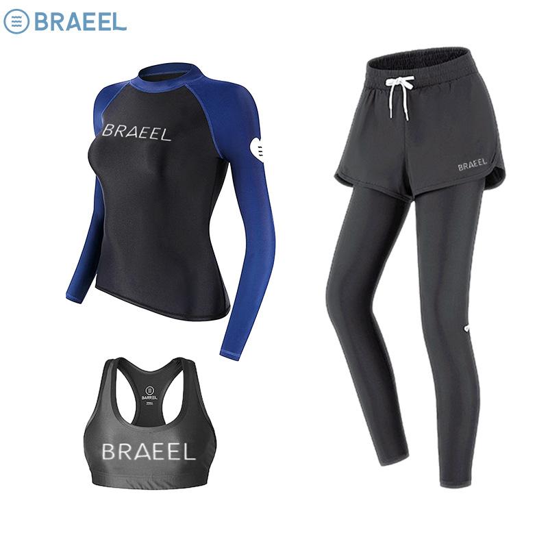 Traje de baño coreano conservador de manga larga con pantalones divididos para surfear y hacer esnórquel, con protección solar y secado rápido.