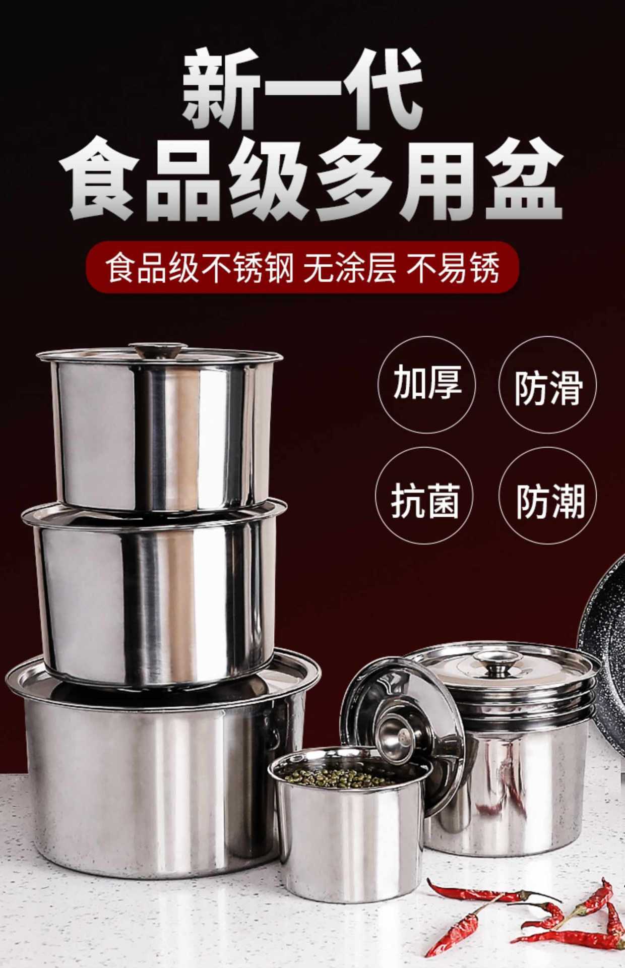Cuenco de acero inoxidable 304, cuenco de cocina de grado alimenticio, cuenco de condimentos, cuenco de aceite comercial con tapa, cuenco de hierro pequeño para el hogar redondo