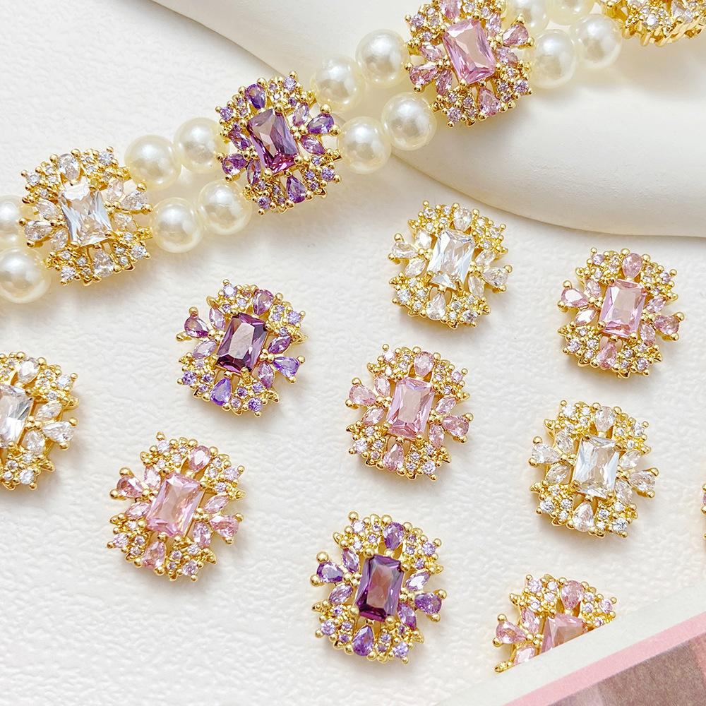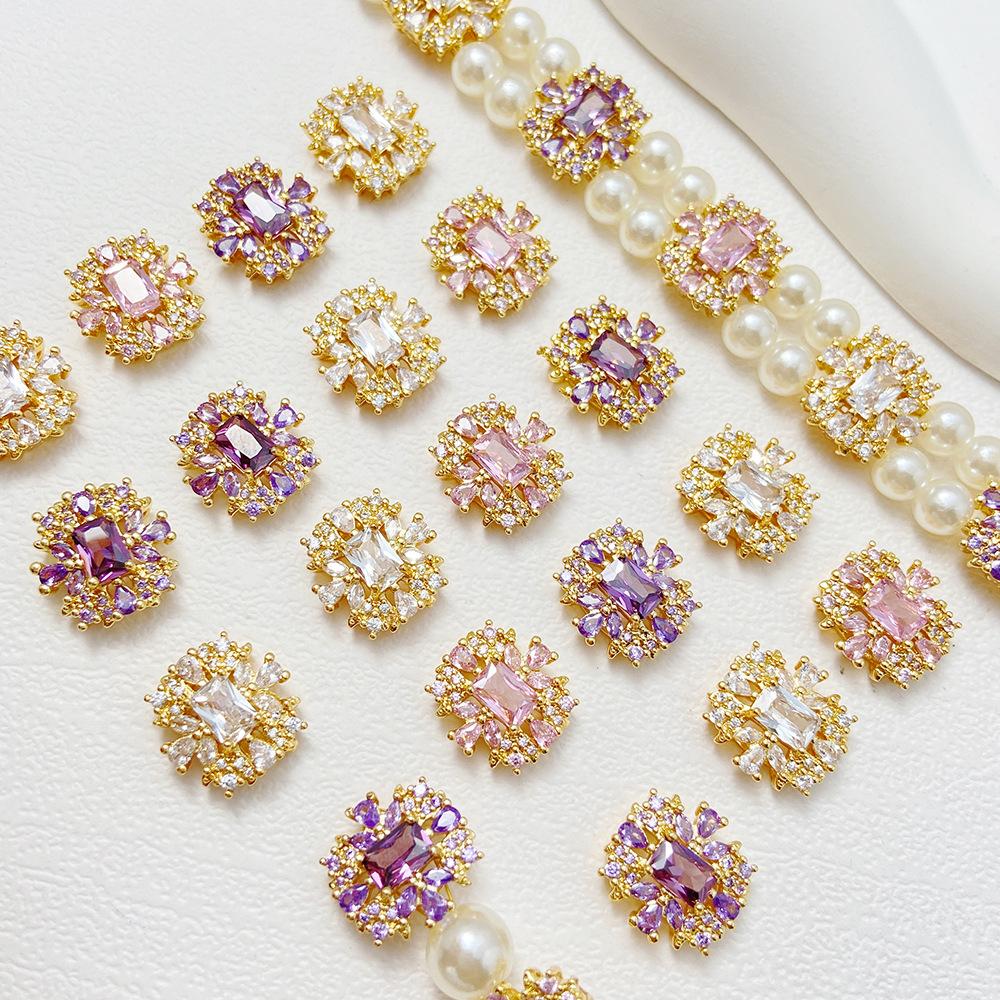 Cuentas porosas de circonita con microincrustaciones de retención de color francés de 18 k, cuentas rectangulares de perlas para pulsera, collar y pulsera DIY