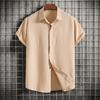 Camisa de Manga Corta para Hombre Nueva Verano 2025 Transfronteriza Holgada Color Sólido con Botones Camisa de Manga Corta Camisa de Manga Corta para Hombre