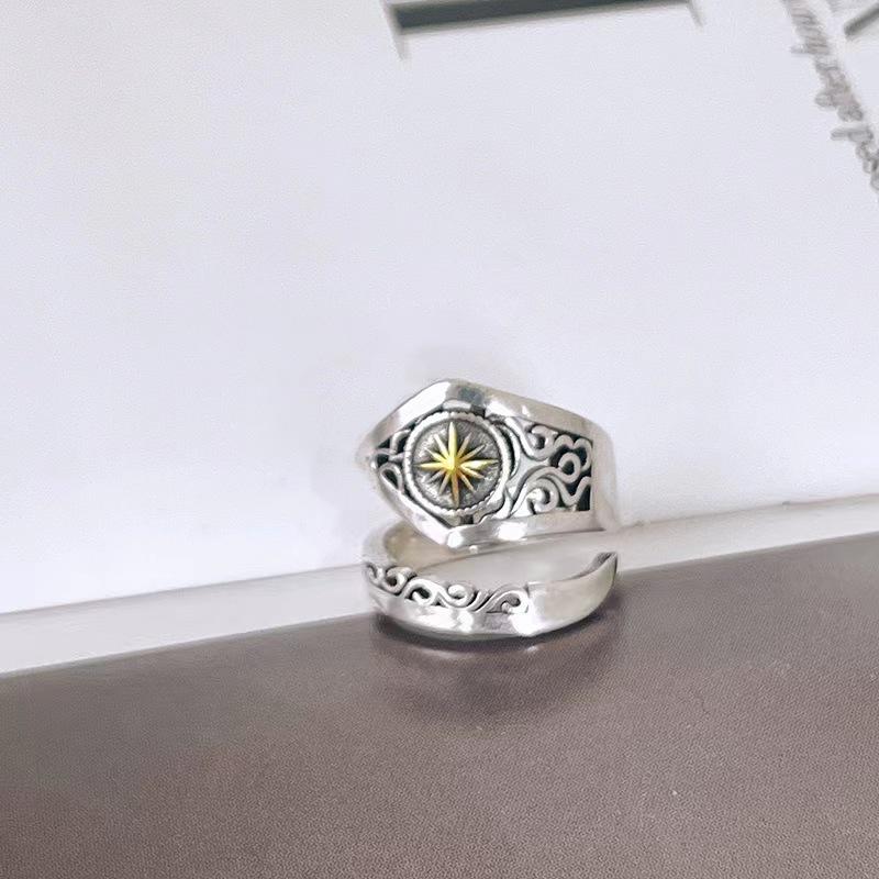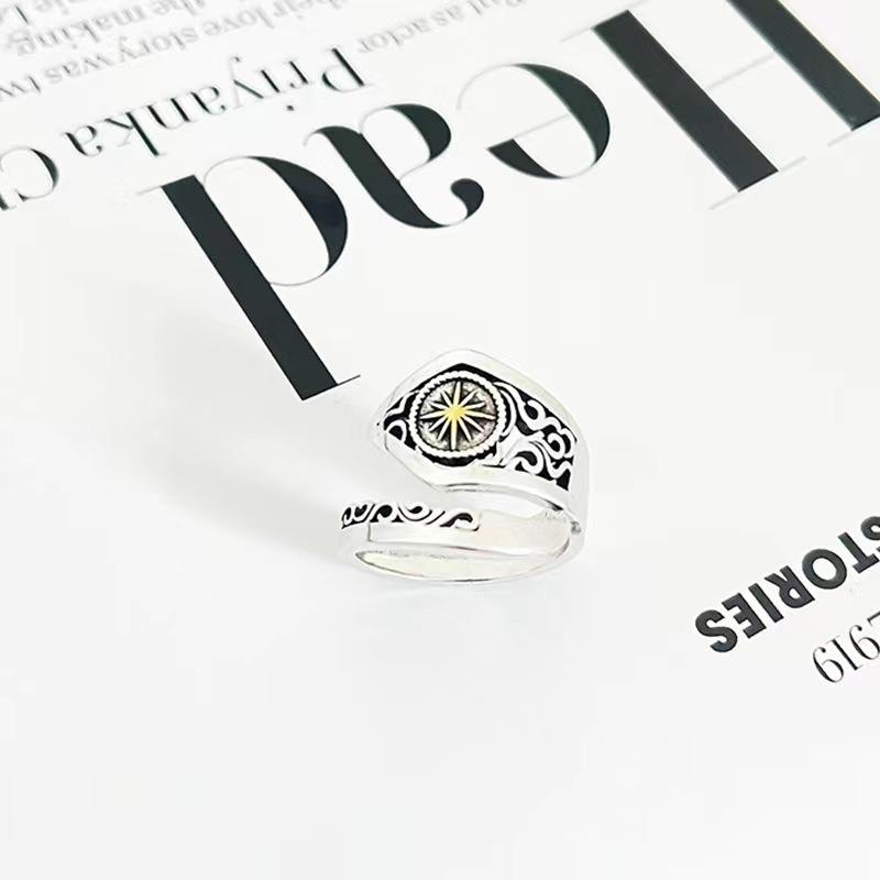 Nuevo anillo de Dios Sol para hombre, estilo indio, personalidad de moda americana, estilo retro, anillo de índice abierto ajustable para mujer