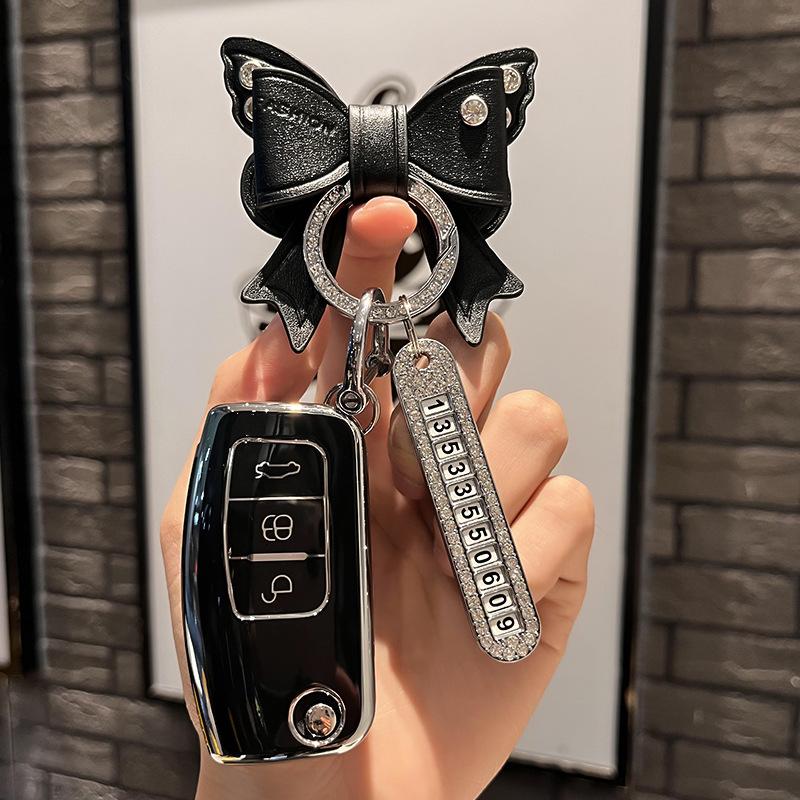 Ford D-folding 3 keys [single shell Black] + black bow diamond buckle + silver number plate