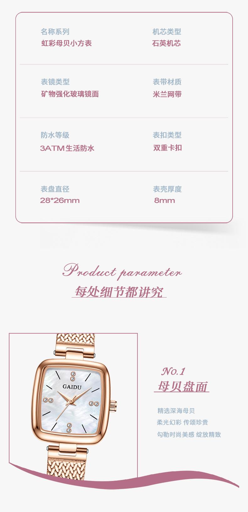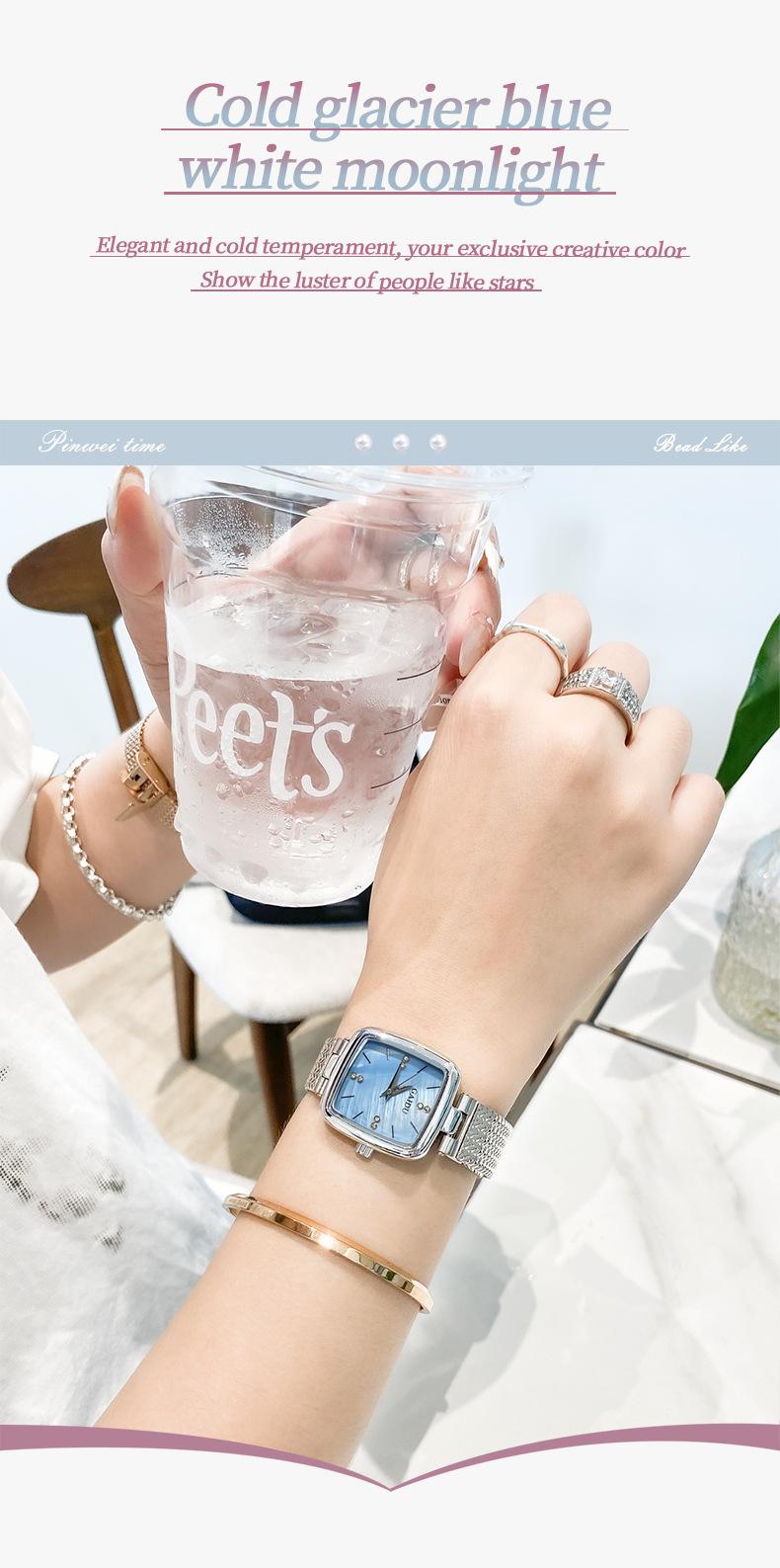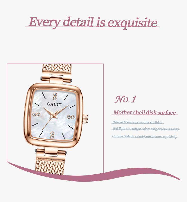 Reloj de mujer con esfera cuadrada y diseño ultrafino de cuarzo resistente al agua y con explosiones de comercio exterior