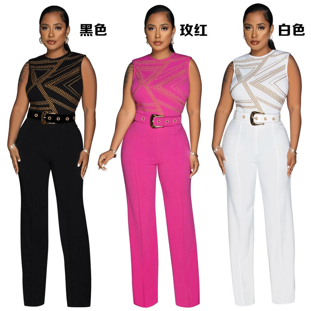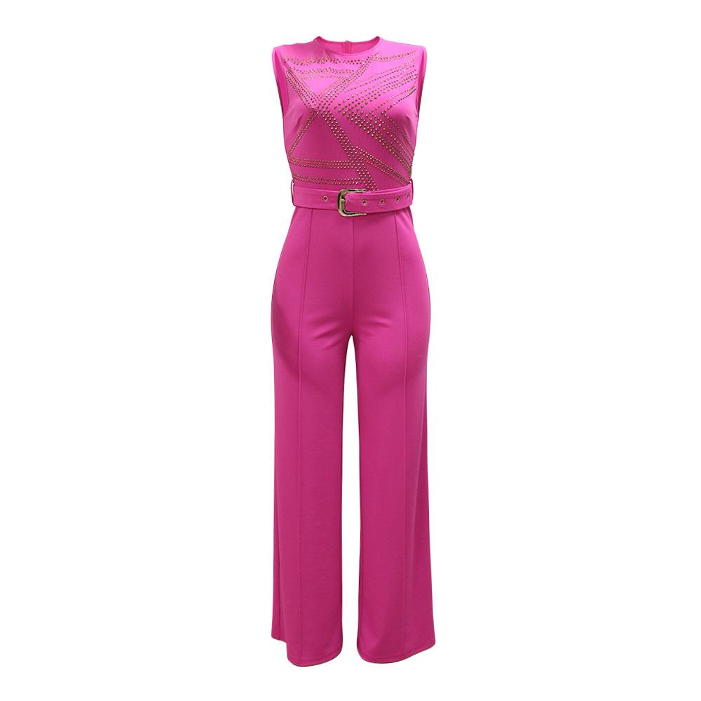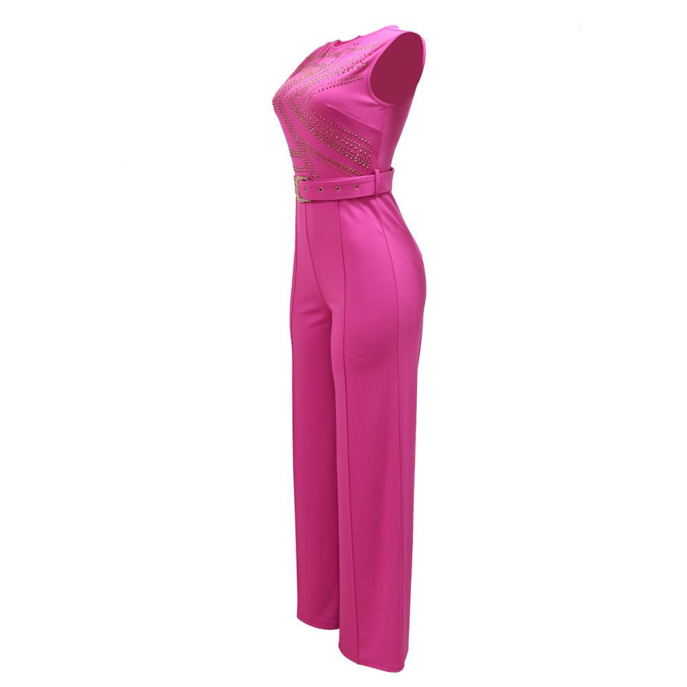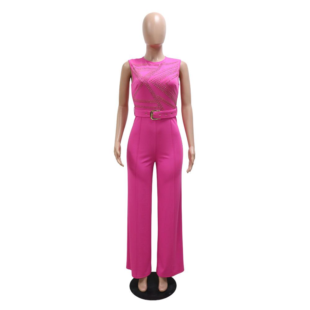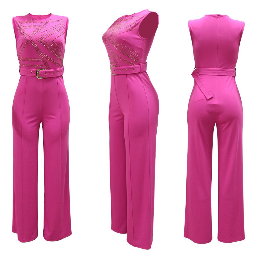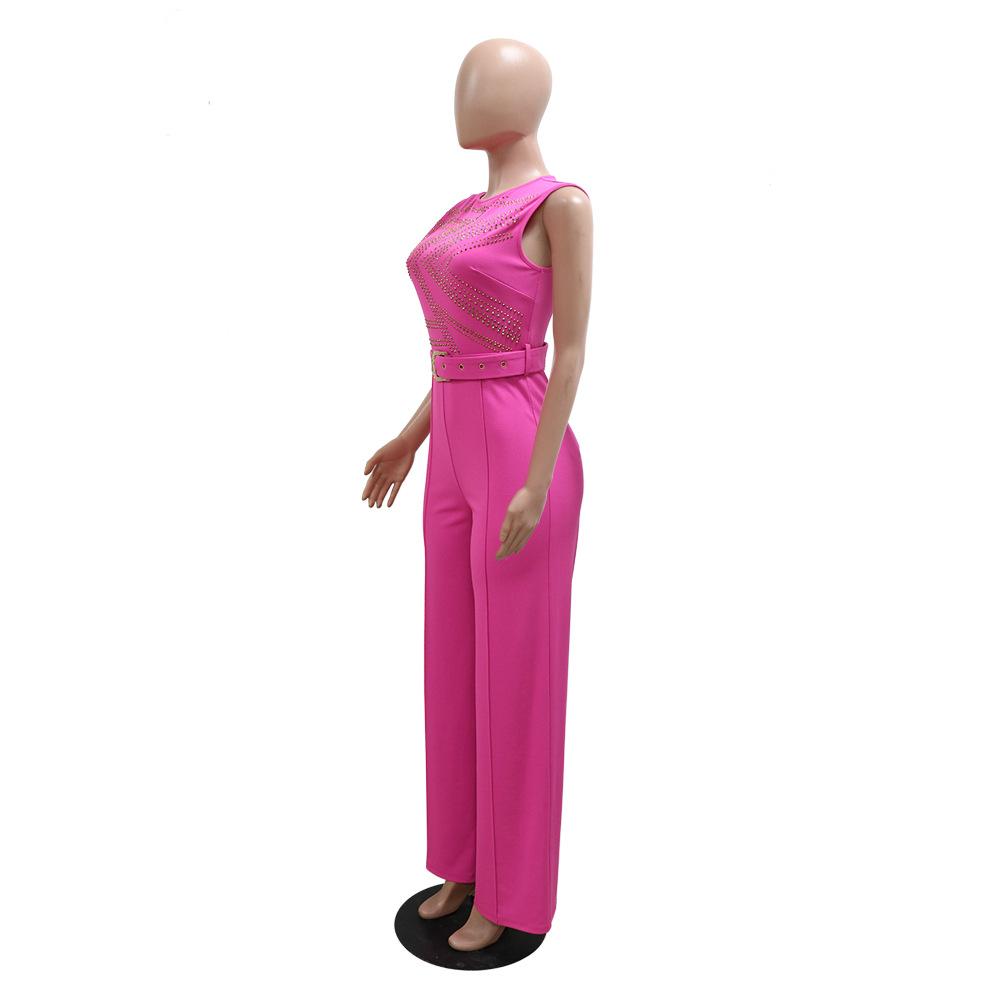 CY900847 Mono de comercio exterior de Amazon, nueva moda, cuello redondo, sin mangas, con diamantes de imitación, pantalones anchos y sueltos
