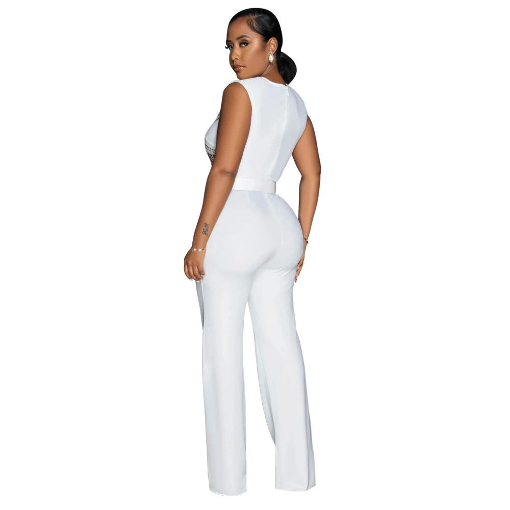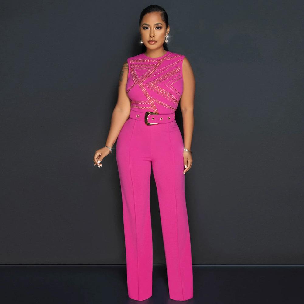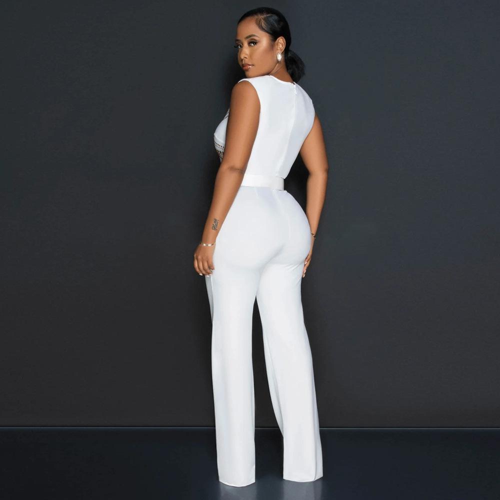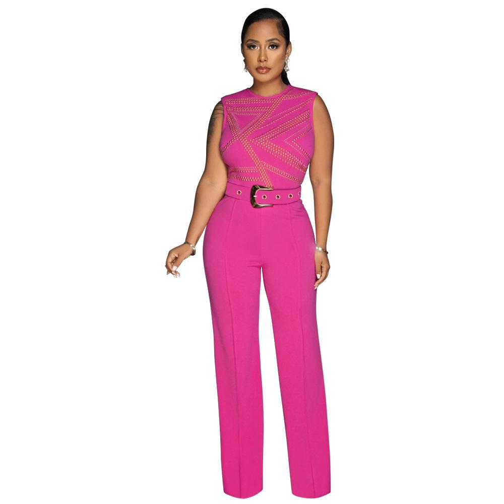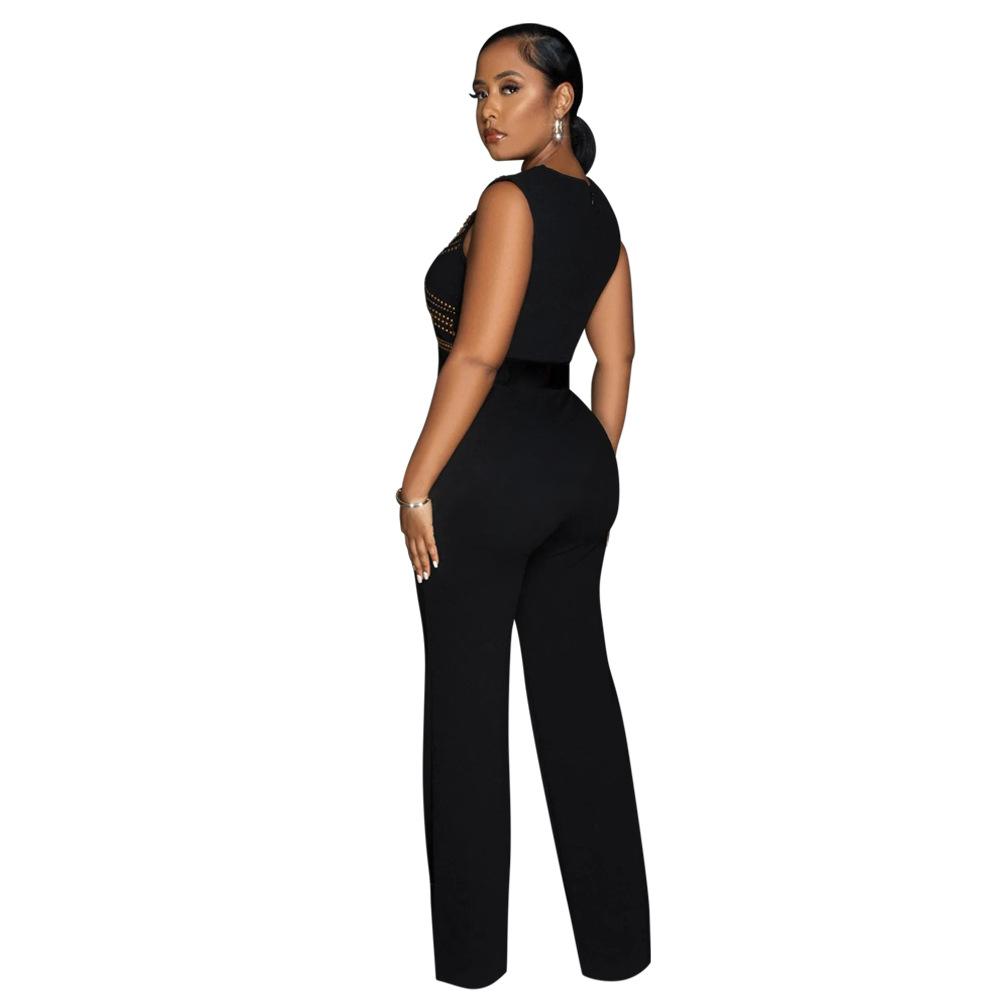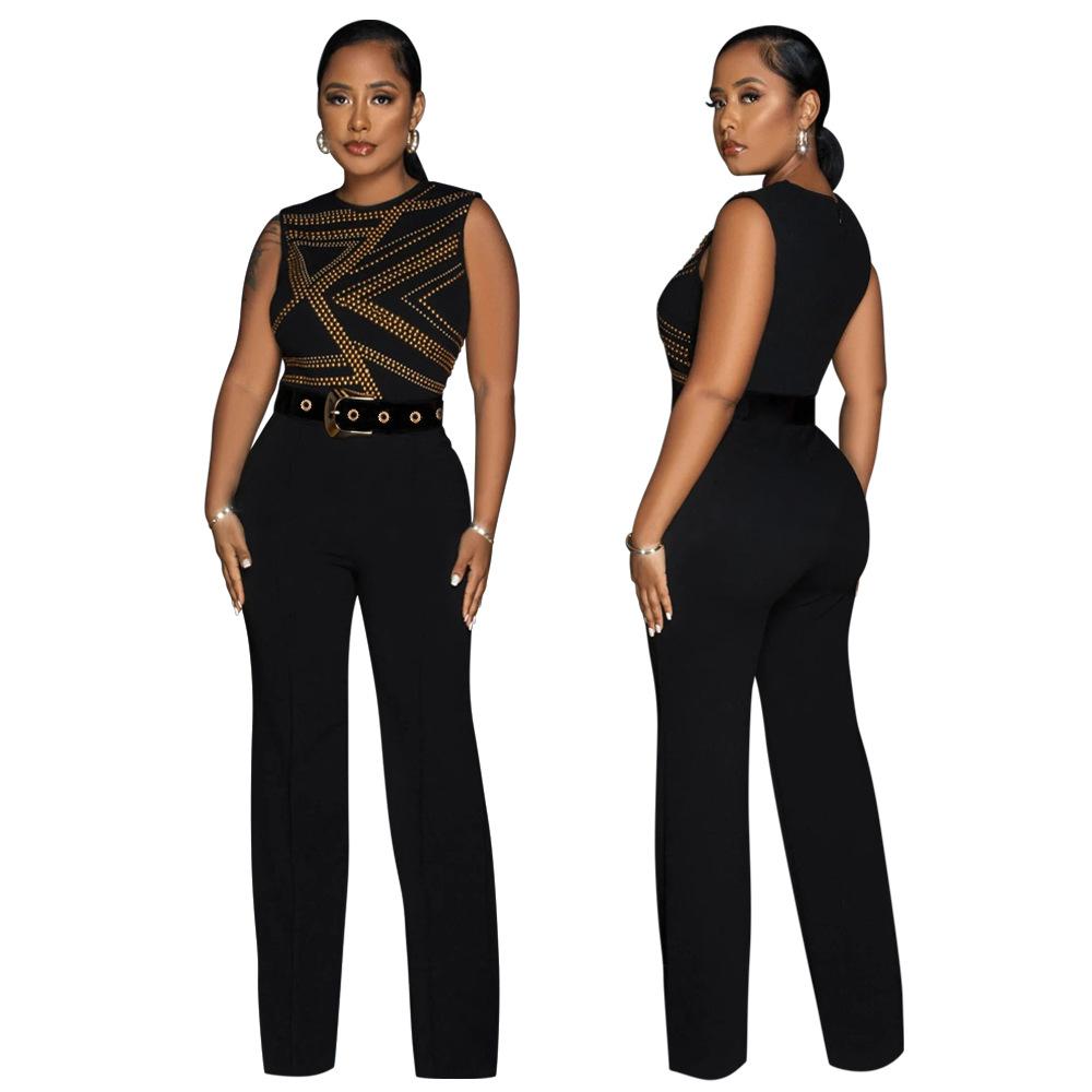 CY900847 Mono de comercio exterior de Amazon, nueva moda, cuello redondo, sin mangas, con diamantes de imitación, pantalones anchos y sueltos