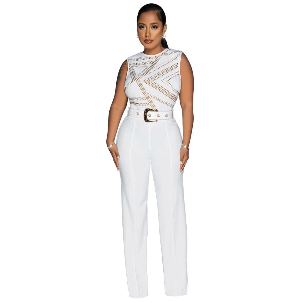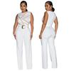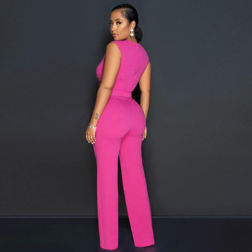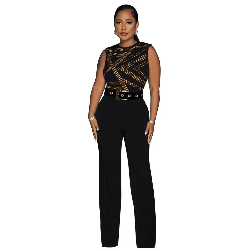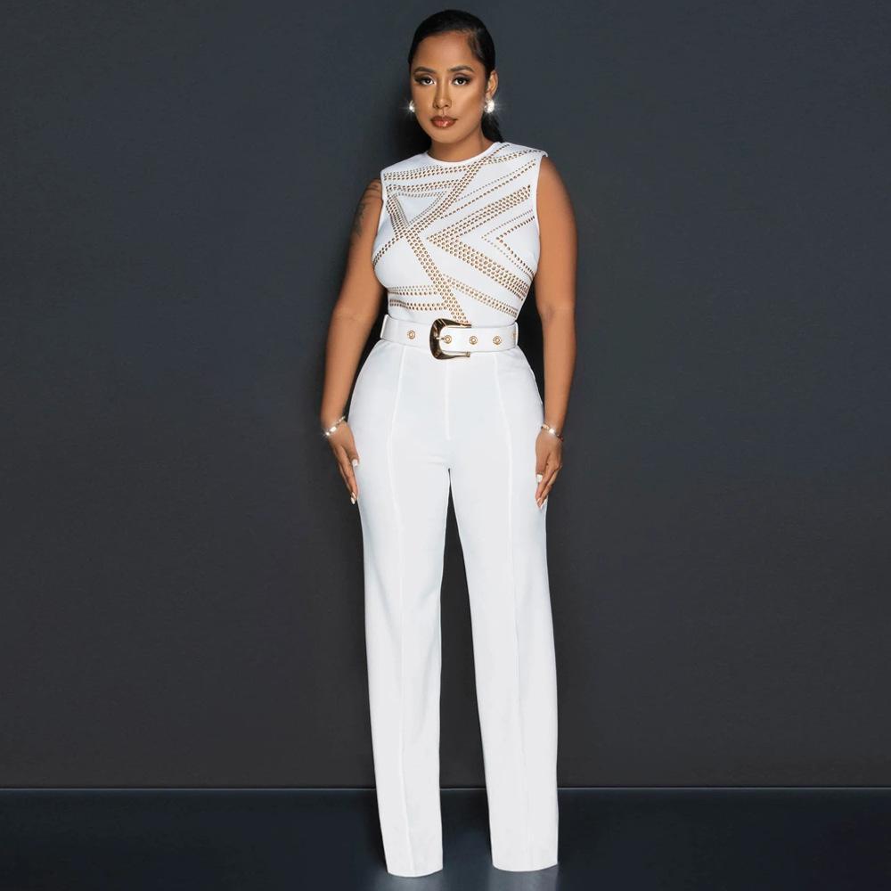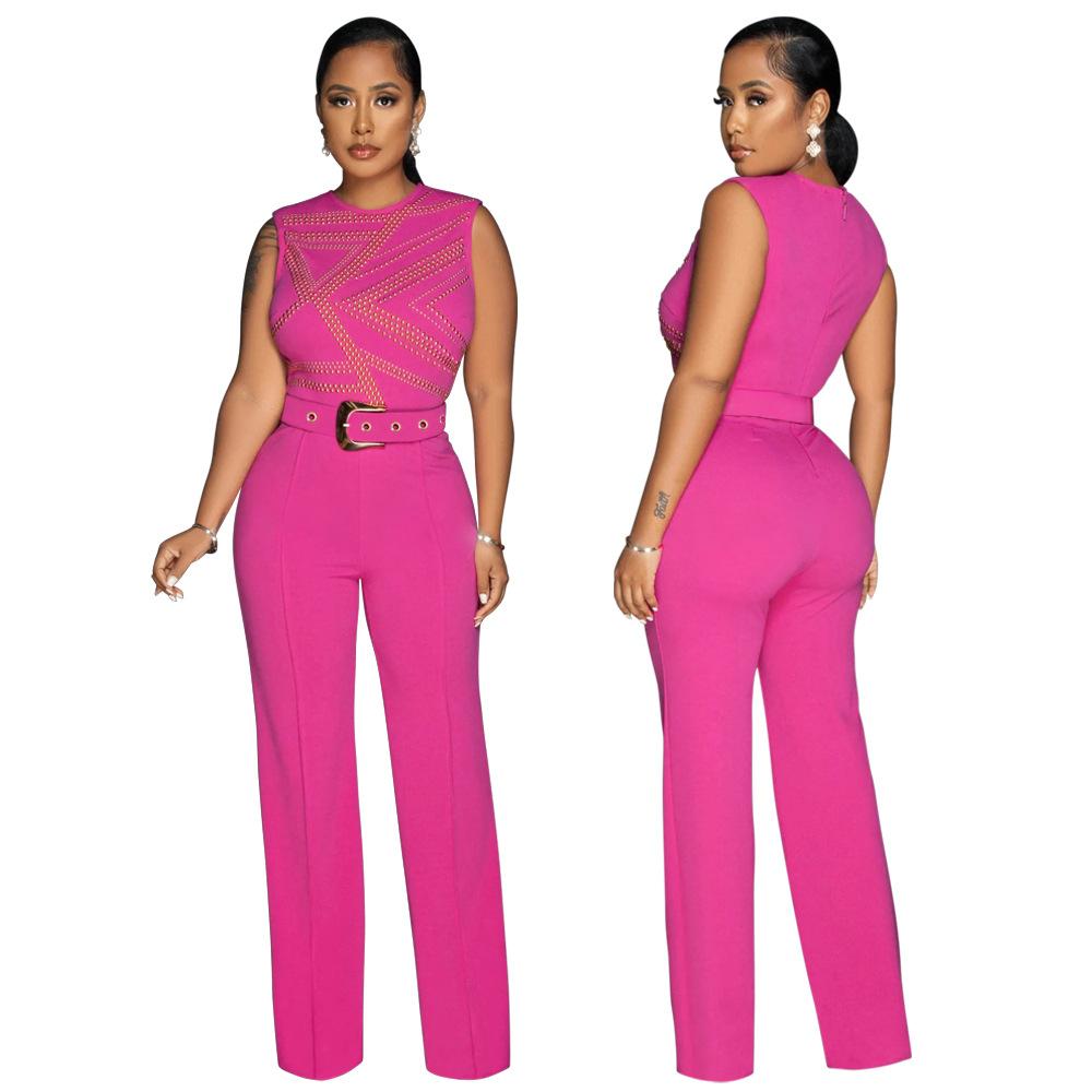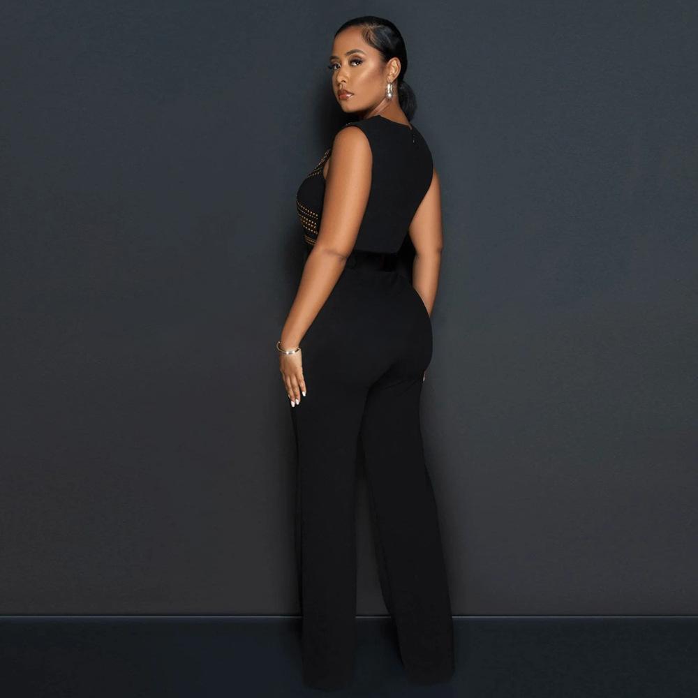 CY900847 Mono de comercio exterior de Amazon, nueva moda, cuello redondo, sin mangas, con diamantes de imitación, pantalones anchos y sueltos