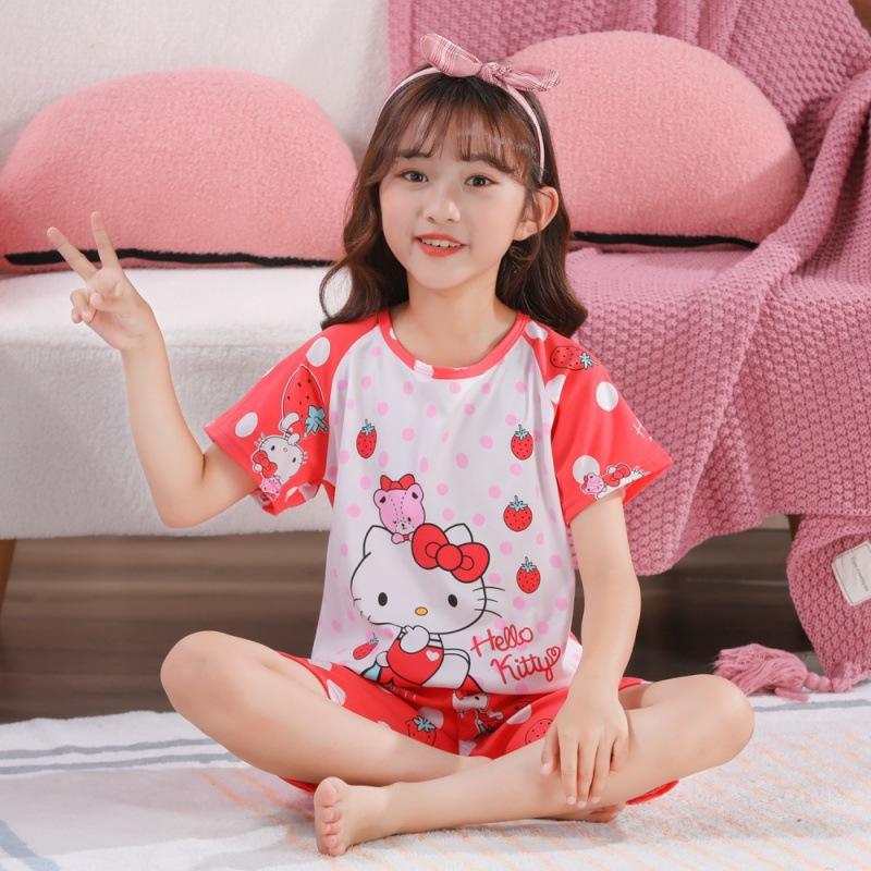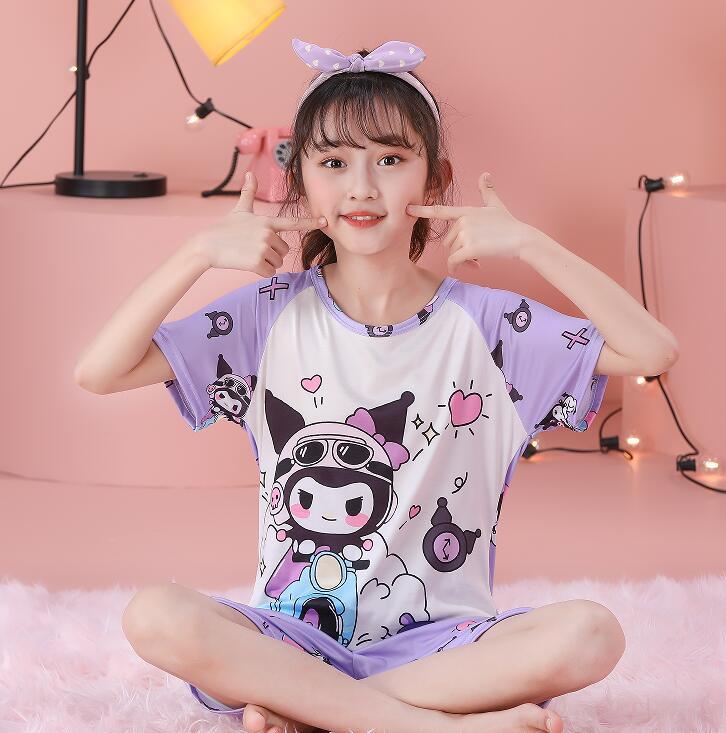 Compra Pijamas de Niña Verano Nuevo Manga Corta Shorts Niñas Verano Mediano y Grande Niños Delgada Verano Conjunto de Ropa para el Hogar al por mayor en Joom.pro