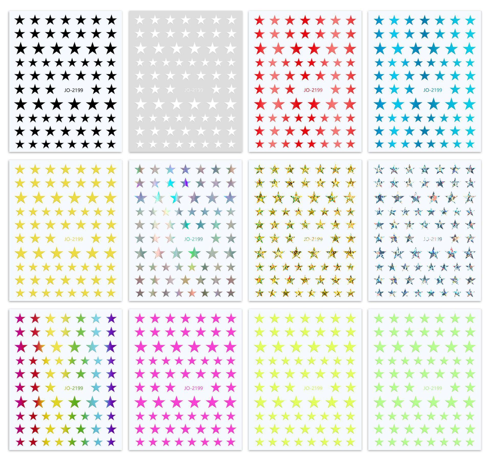 Estrellas de Cinco Puntas para Comercio Exterior Adhesivos para Uñas 12 Colores Estrellas con Respaldo Adhesivo Calcomanías Decorativas para Uñas Calcomanías para Arte de Uñas