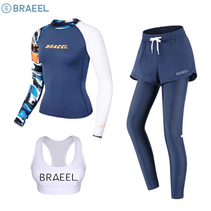 Traje de baño coreano nuevo profesional para mujer, Protección solar de cuerpo completo, Secado rápido, Manga larga, Vacaciones esnórquel, Pulóver de dos piezas para surf y buceo