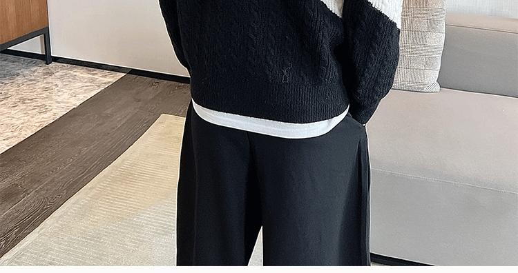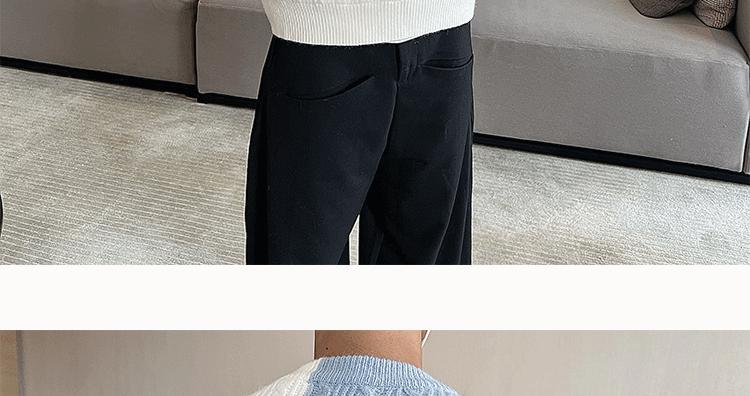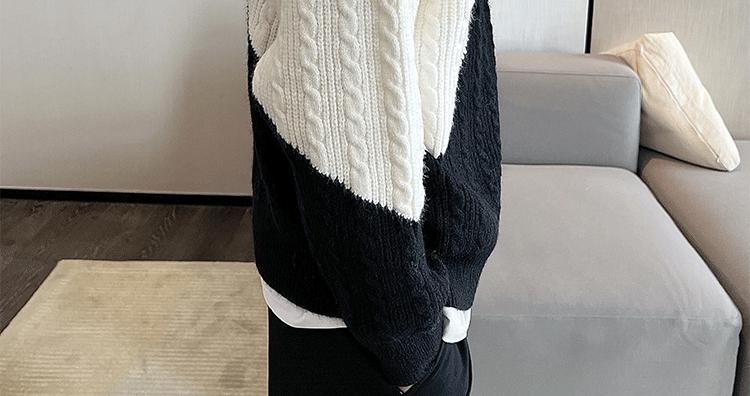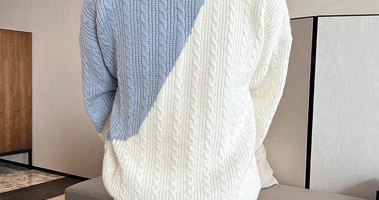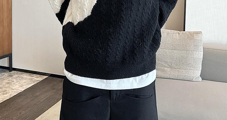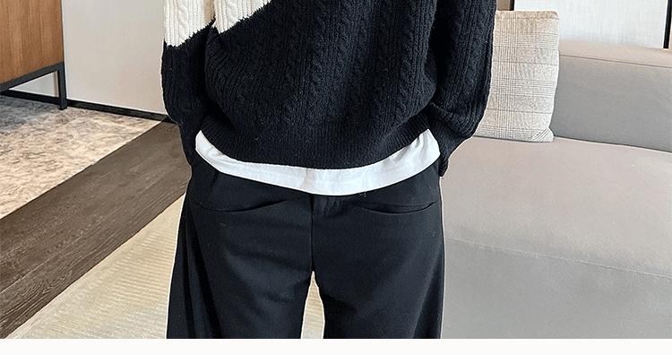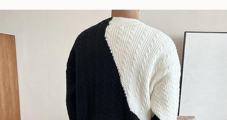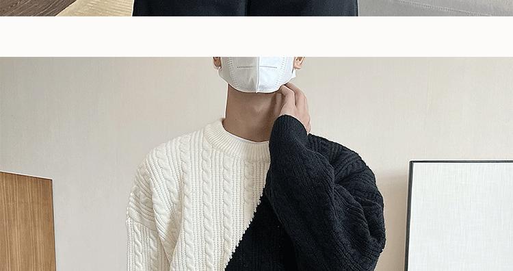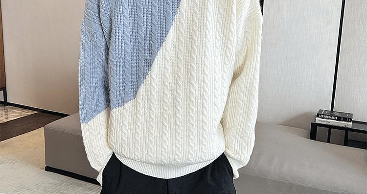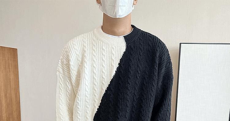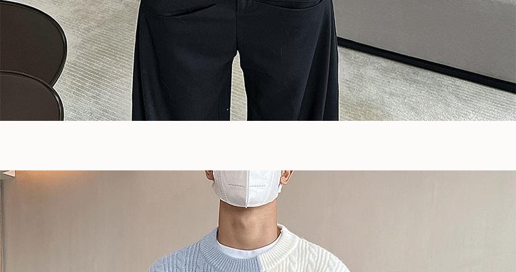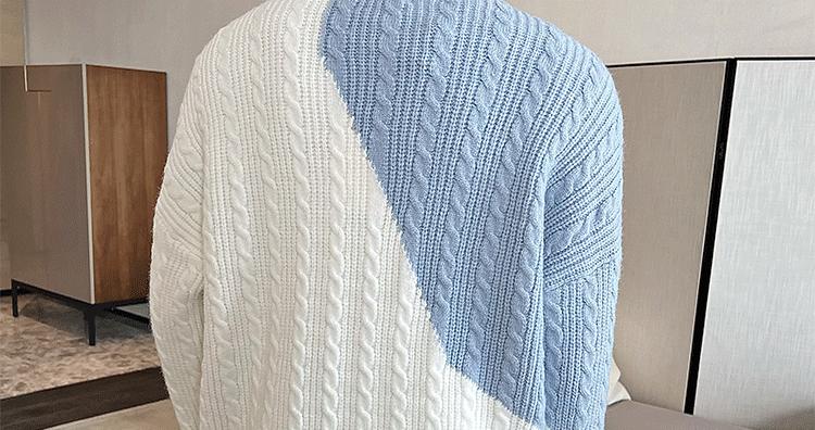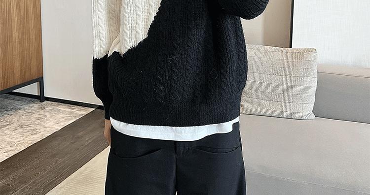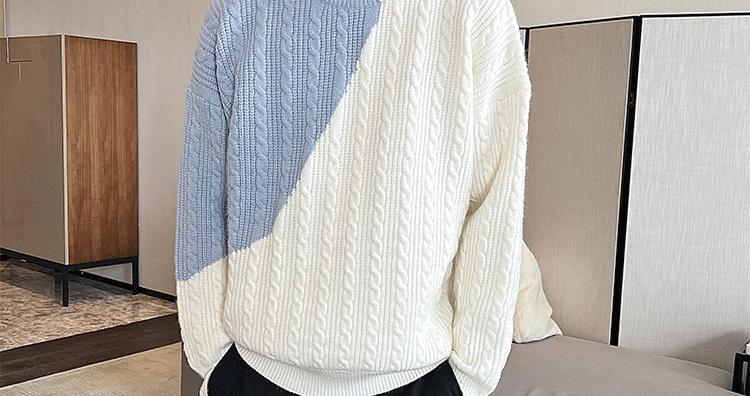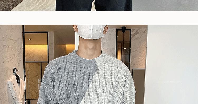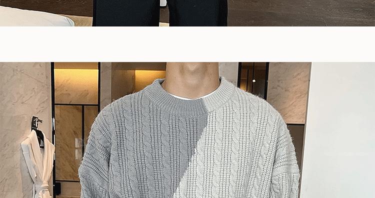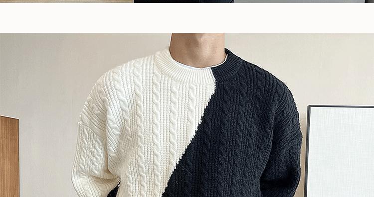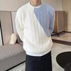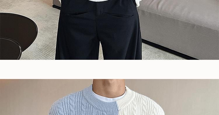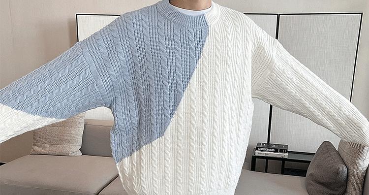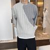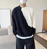 Suéter de cuello redondo con costuras Pu Shuai para hombre, top de manga larga, nueva marca de moda 2023, camisa de punto de color contrastante