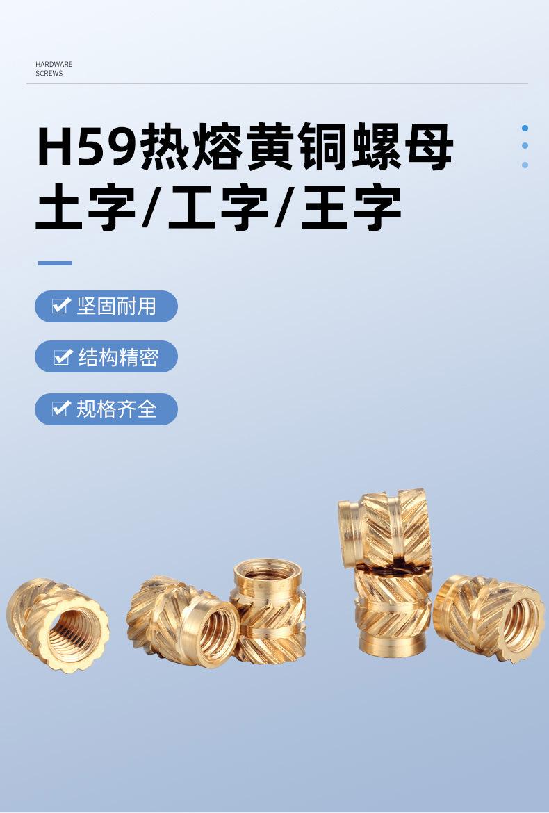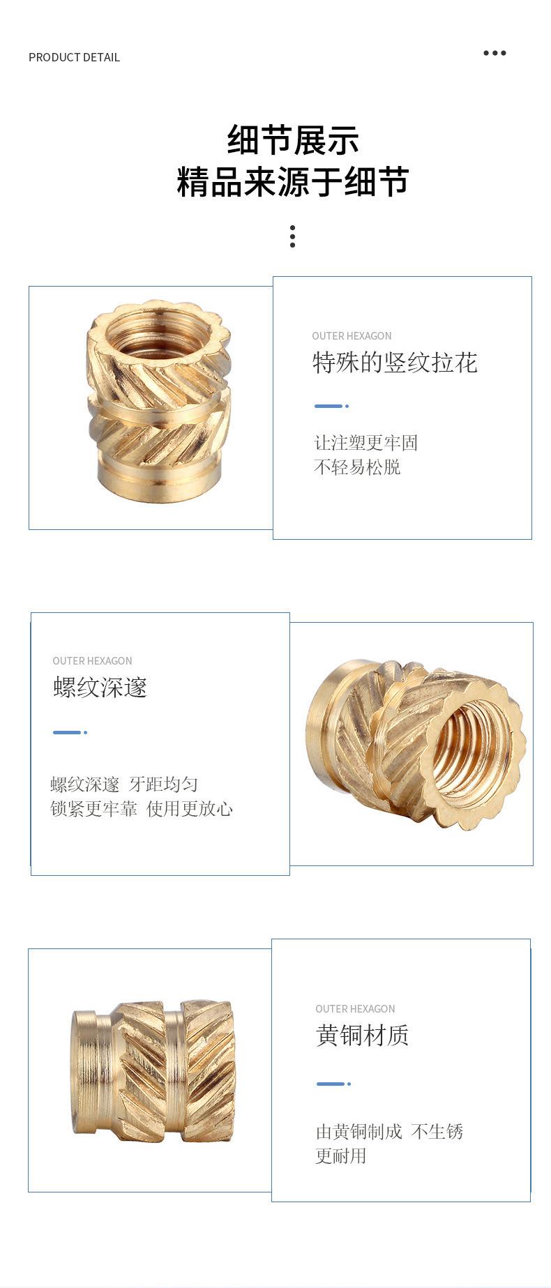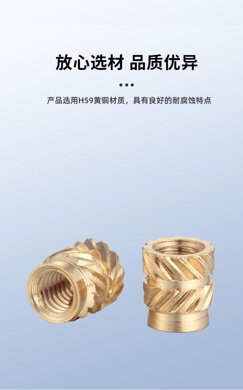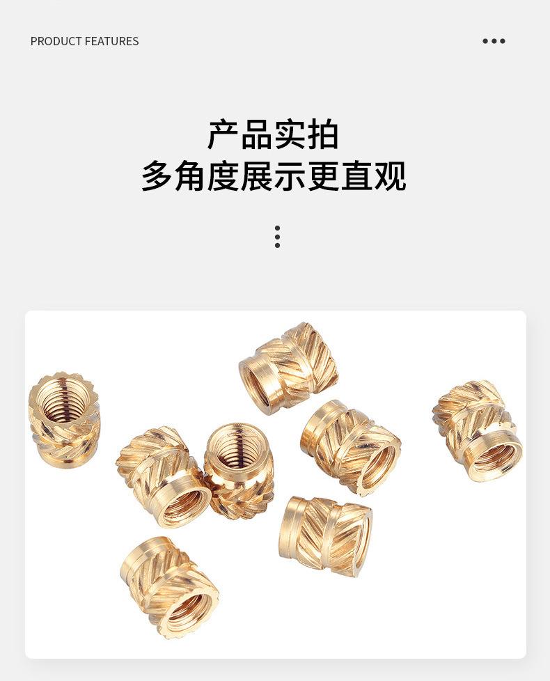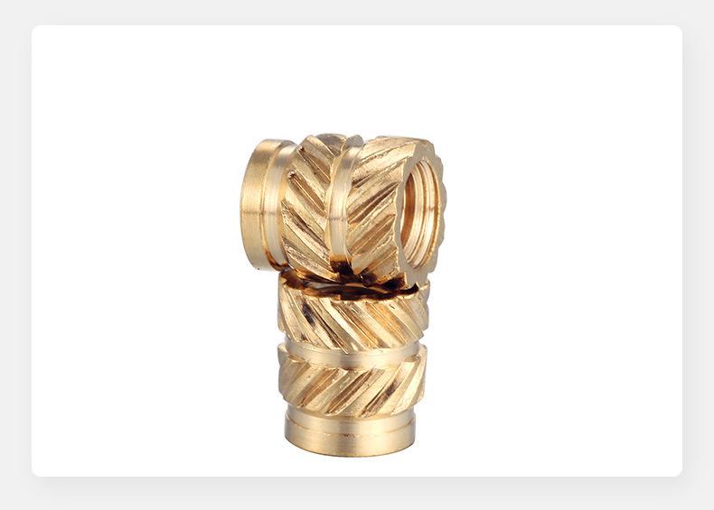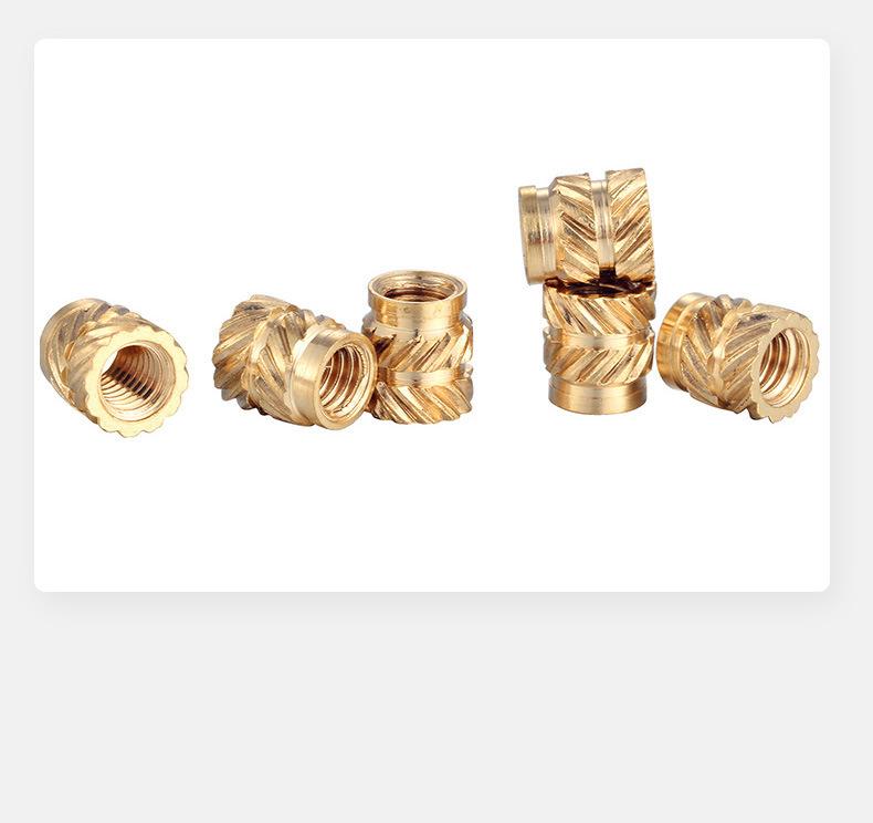 [M8] Inserto de moldeo por inyección de fusión en caliente de ocho flores de sarga con orificio pasante de latón H59, con ranura moleteada y madre