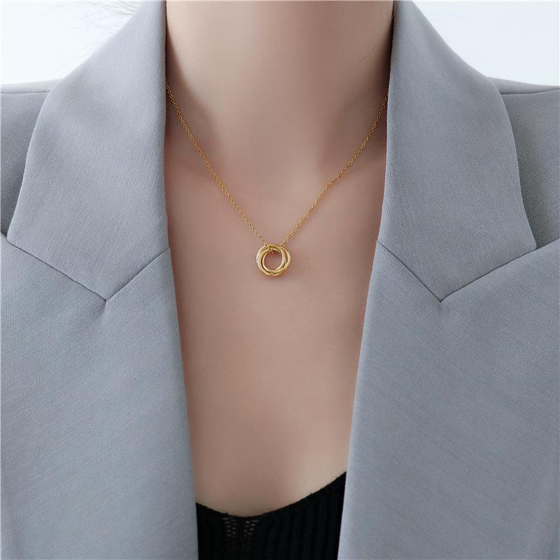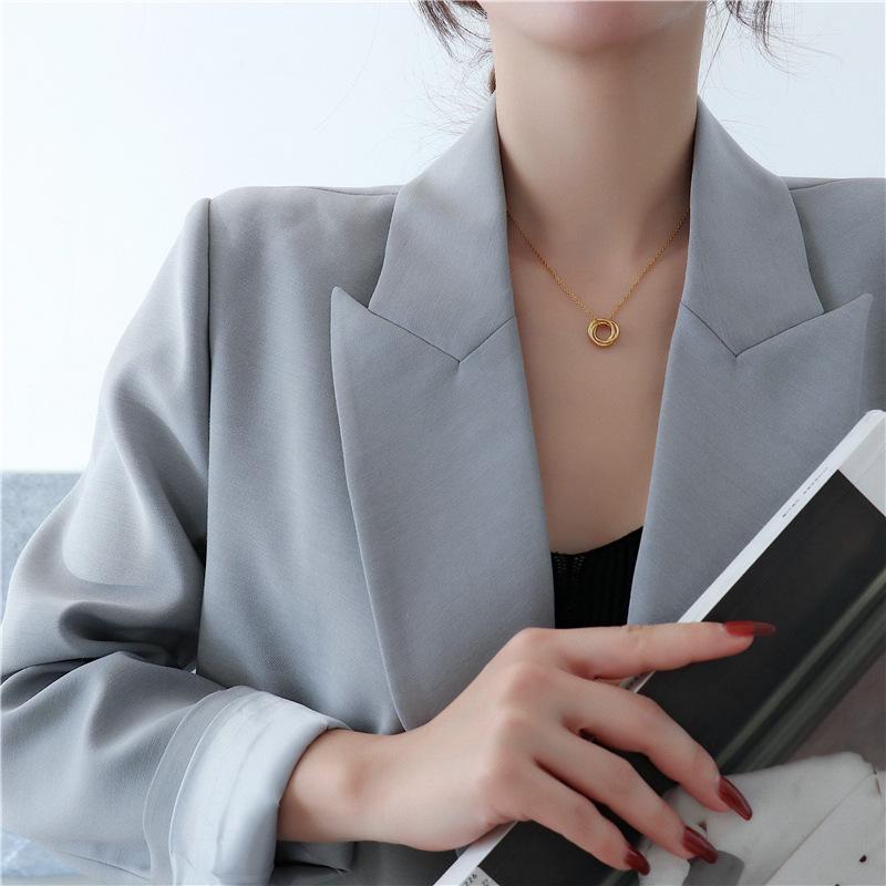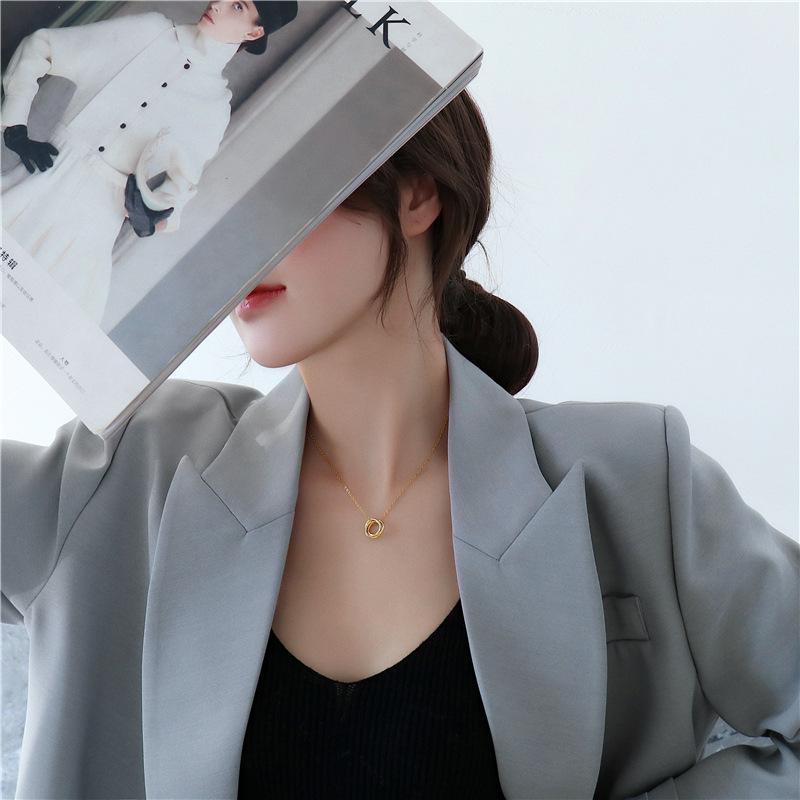 Collar de acero de titanio de estilo coreano, estilo frío, simple, de moda, para mujer, colgante, estilo europeo y americano, con cadena corta distintiva y anillo para clavícula.