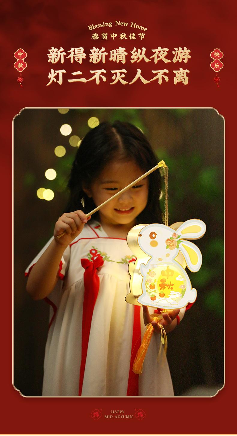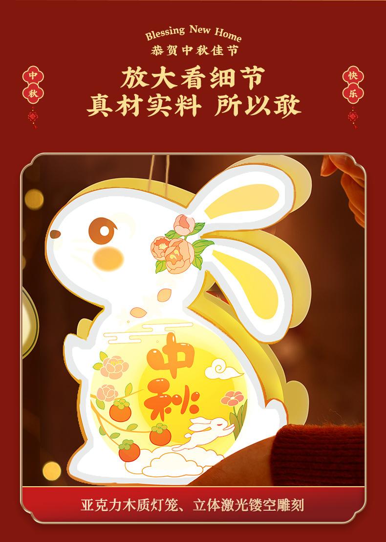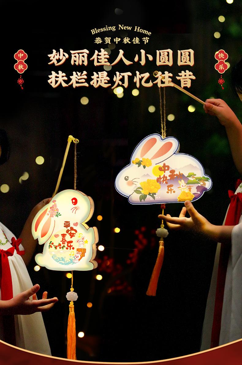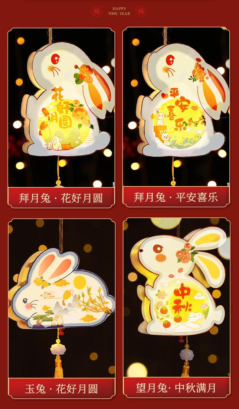 Festival del Medio Otoño Linterna de Madera de Conejo Estilo Antiguo Lámpara Portátil para Niños Linterna Luminosa DIY Hecha a Mano Puesto 2025 Nuevo Estilo