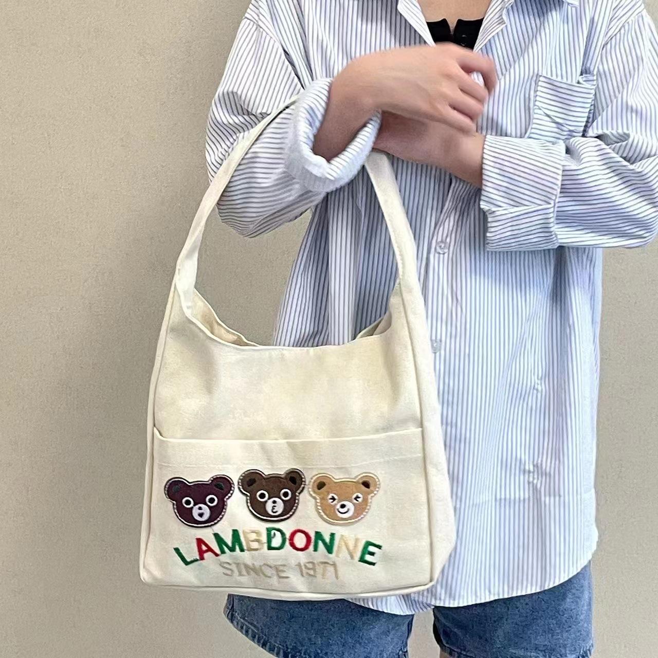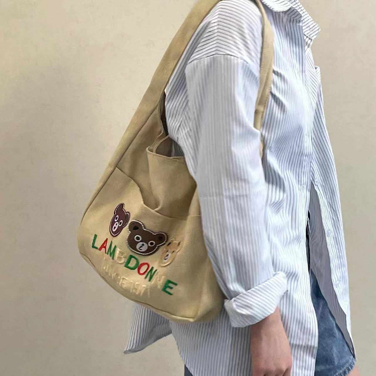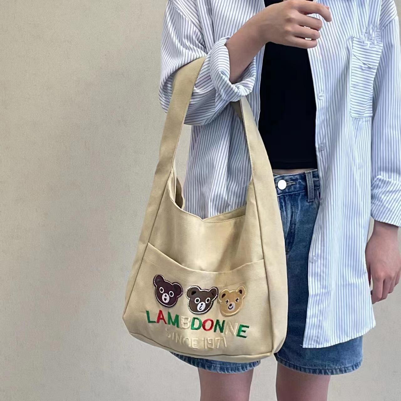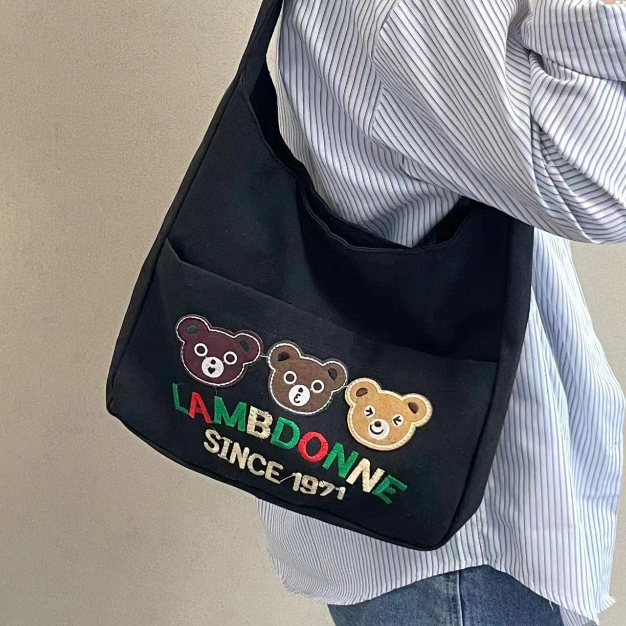 Bolso de lona para mujer, de gran capacidad, para estudiantes, para hombro, informal, bonito, combinable con todo, con diseño de oso.