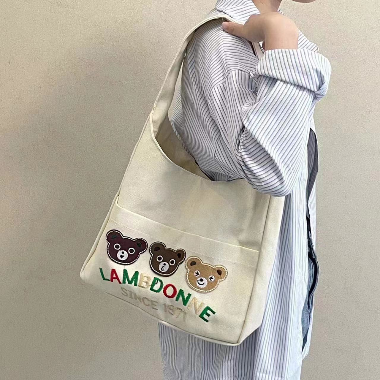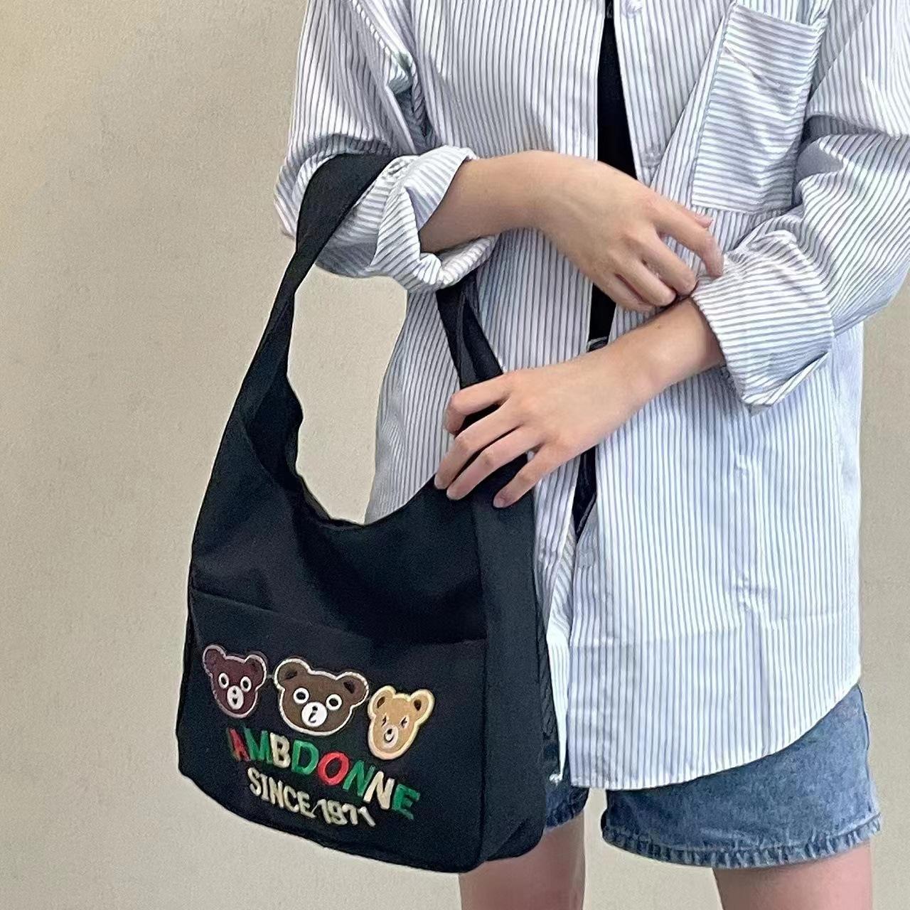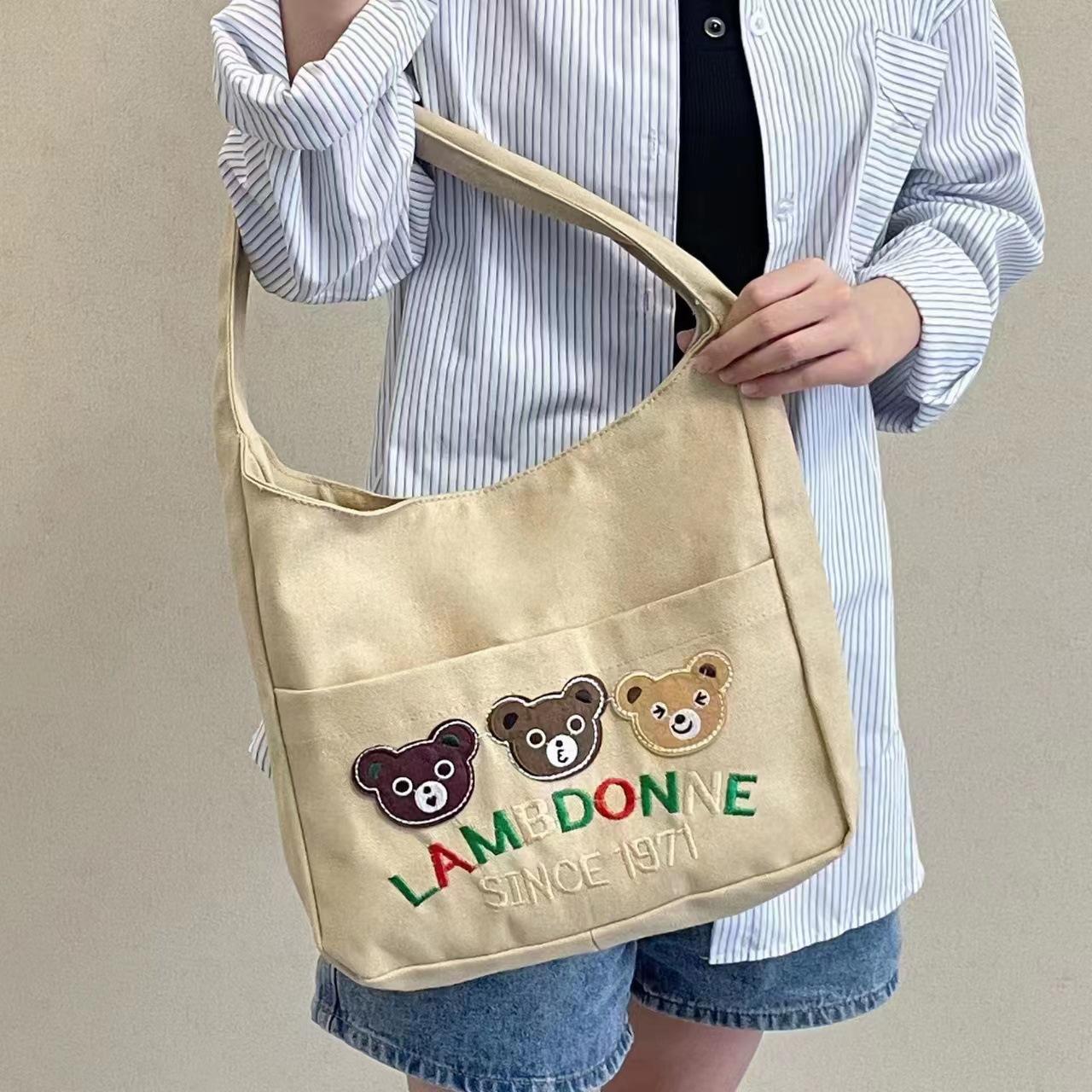Bolso de lona para mujer, de gran capacidad, para estudiantes, para hombro, informal, bonito, combinable con todo, con diseño de oso.