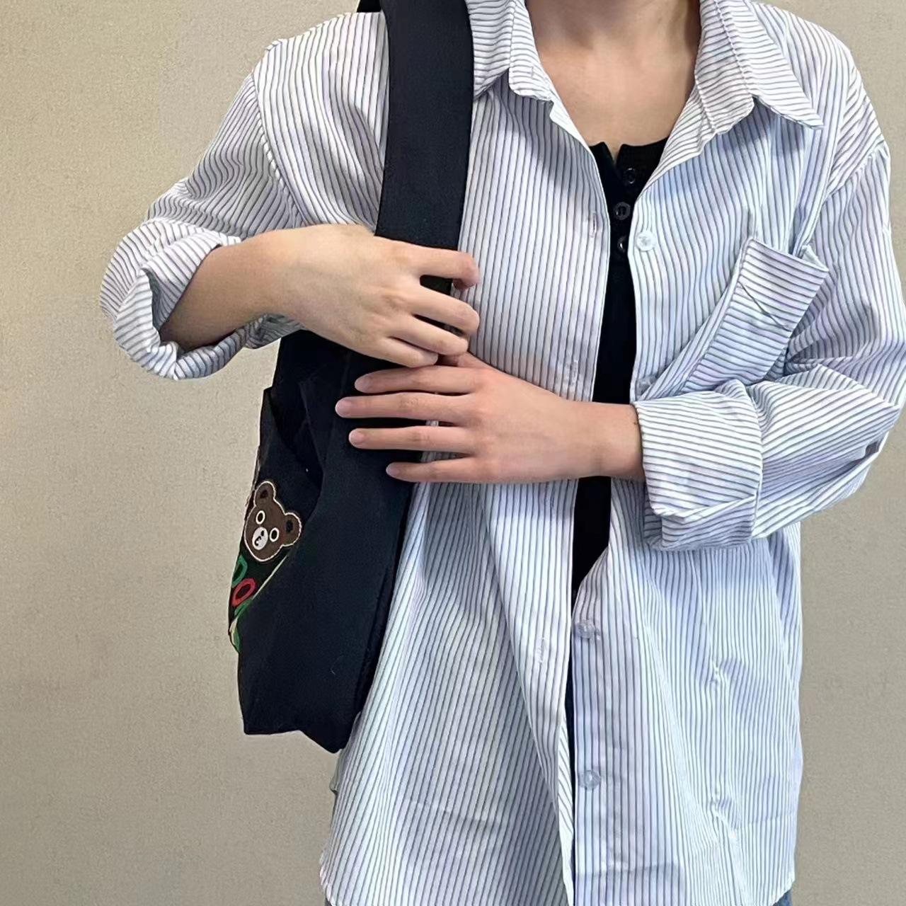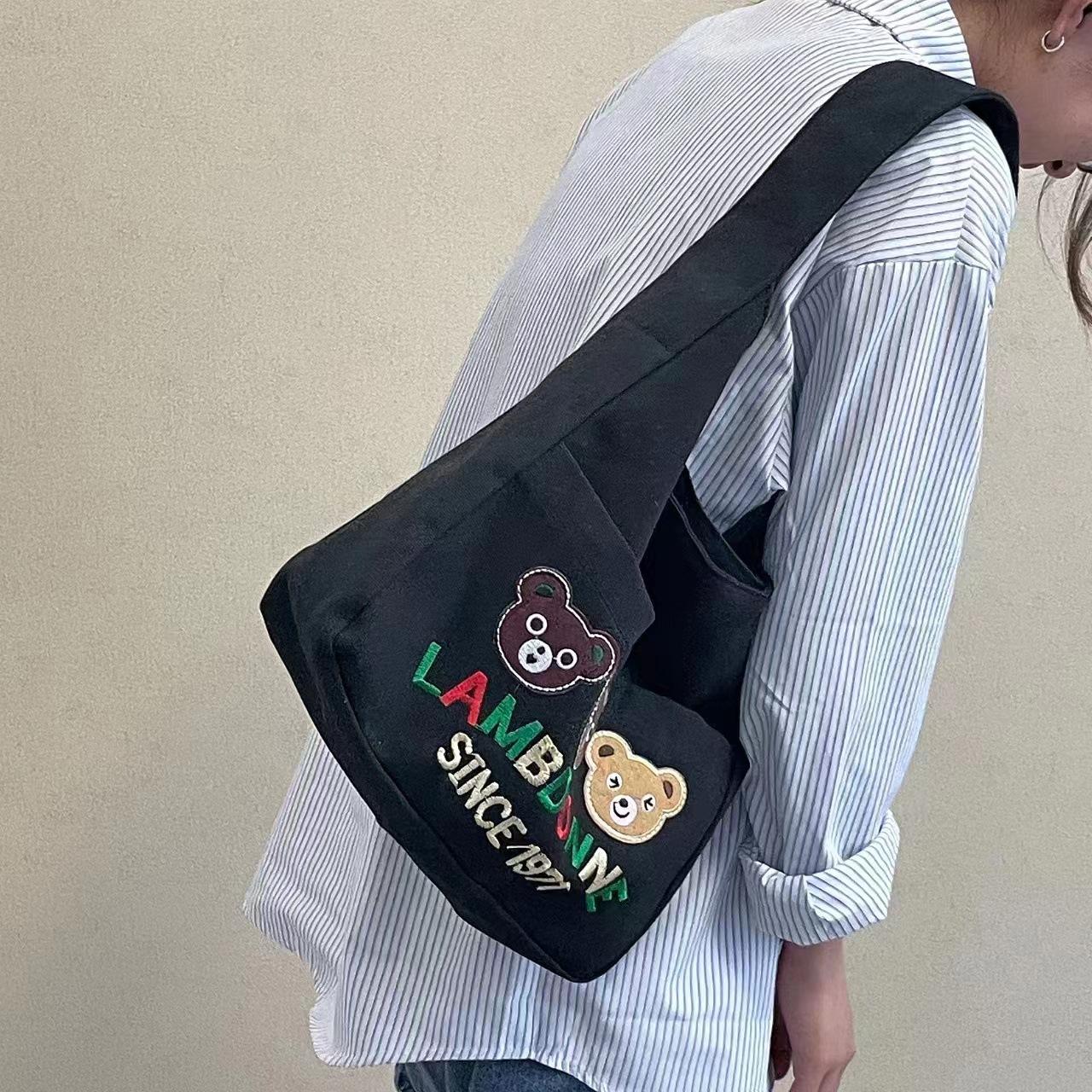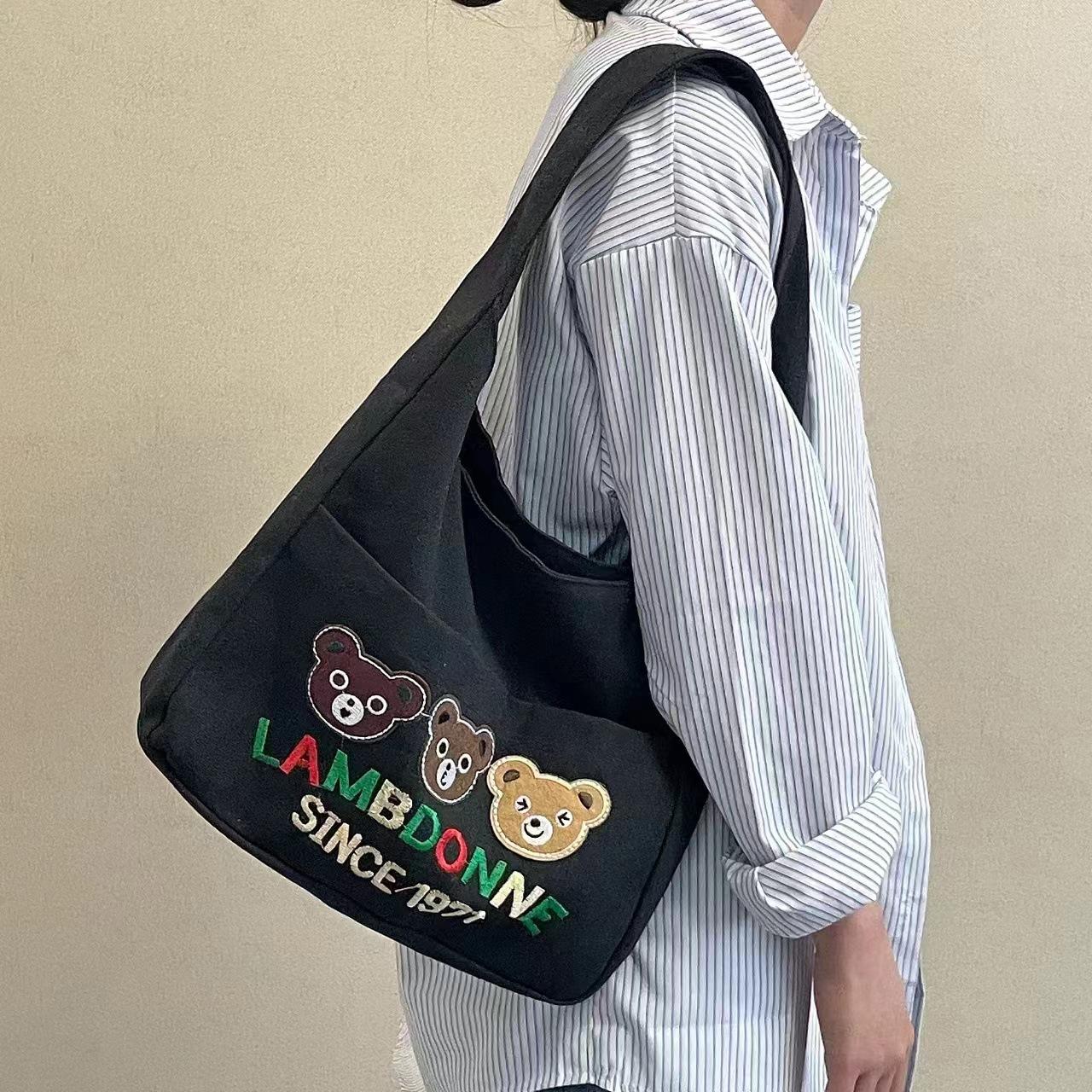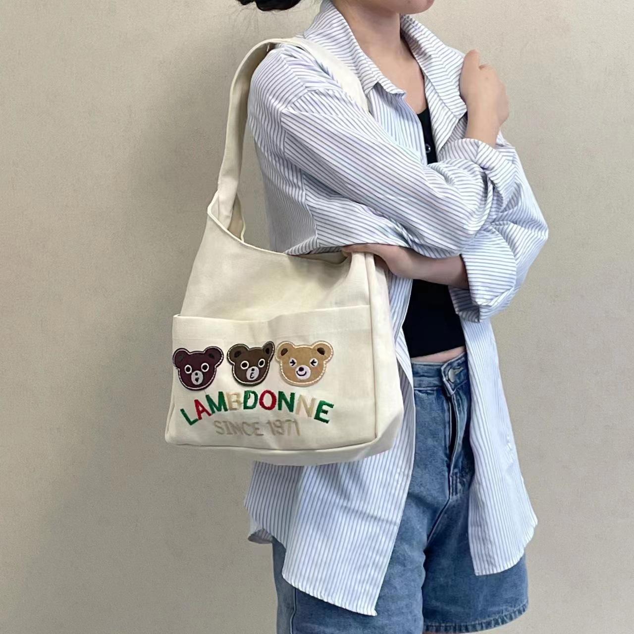 Bolso de lona para mujer, de gran capacidad, para estudiantes, para hombro, informal, bonito, combinable con todo, con diseño de oso.