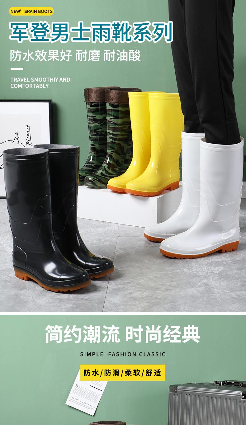 Botas de lluvia negras altas para hombre, botas de agua de cocina blancas y amarillas para hombre, zapatos de goma antideslizantes y resistentes al desgaste, zapatos de camuflaje de protección laboral, botas para hombre