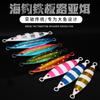 100g: Montaje de anzuelos: Anzuelo doble 17# con placa frontal de hierro blanco + Anzuelo triple de pluma con ranura de sangre trasera 4# Montaje de anillas: Anilla partida aplanada 0.7*6mm