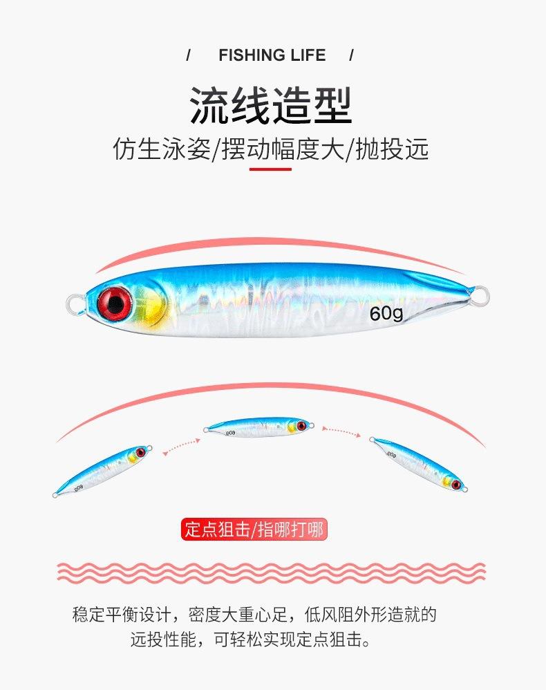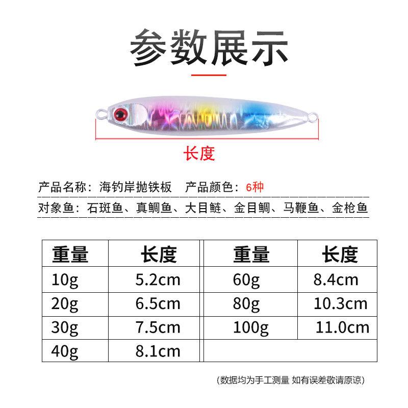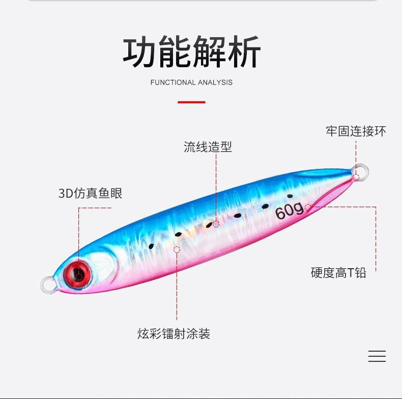 60g: Longitud del señuelo 8.4cm, ancho del señuelo cm ; 80g: longitud del señuelo 10.3cm, ancho del señuelo cm;