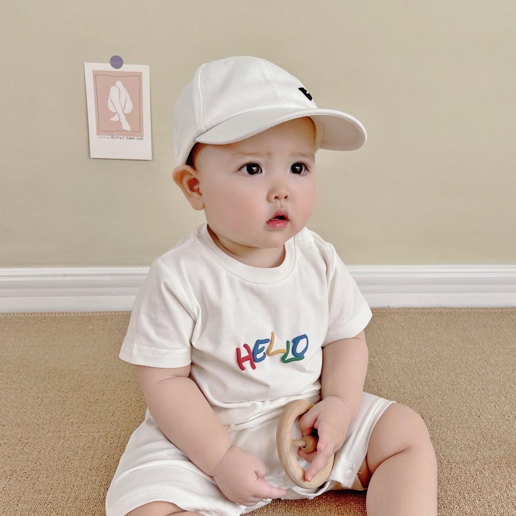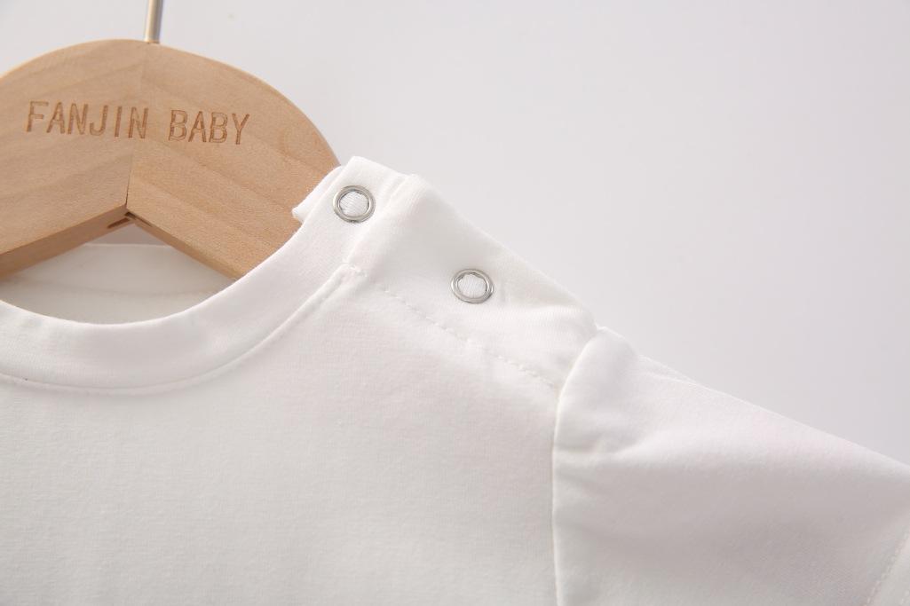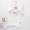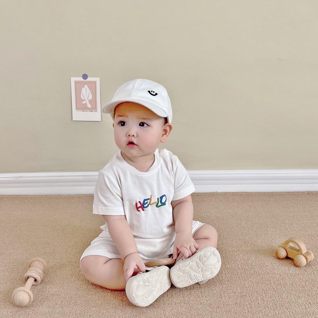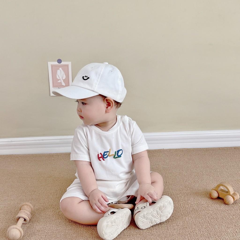Un mono blanco con letras de "hola" de colores. Y la carita sonriente en la parte de atrás. Toda la impresión es una flor de burbuja. La sensación visual y táctil es ese tipo de sensación convexa.