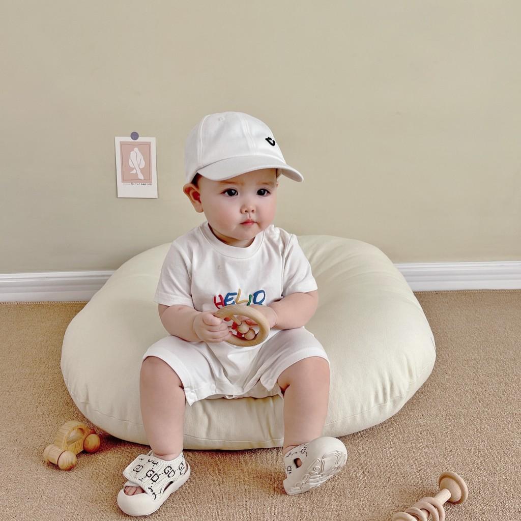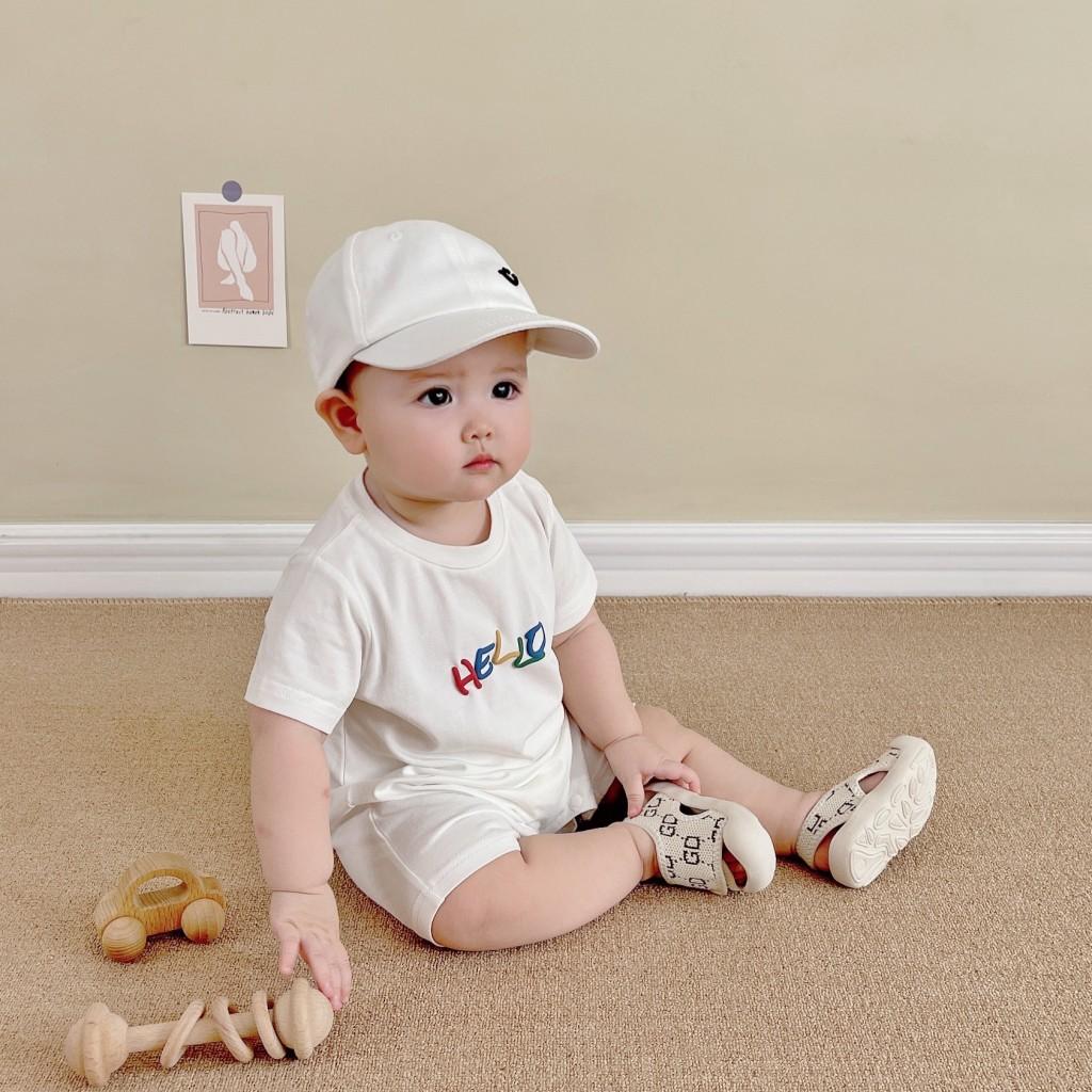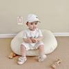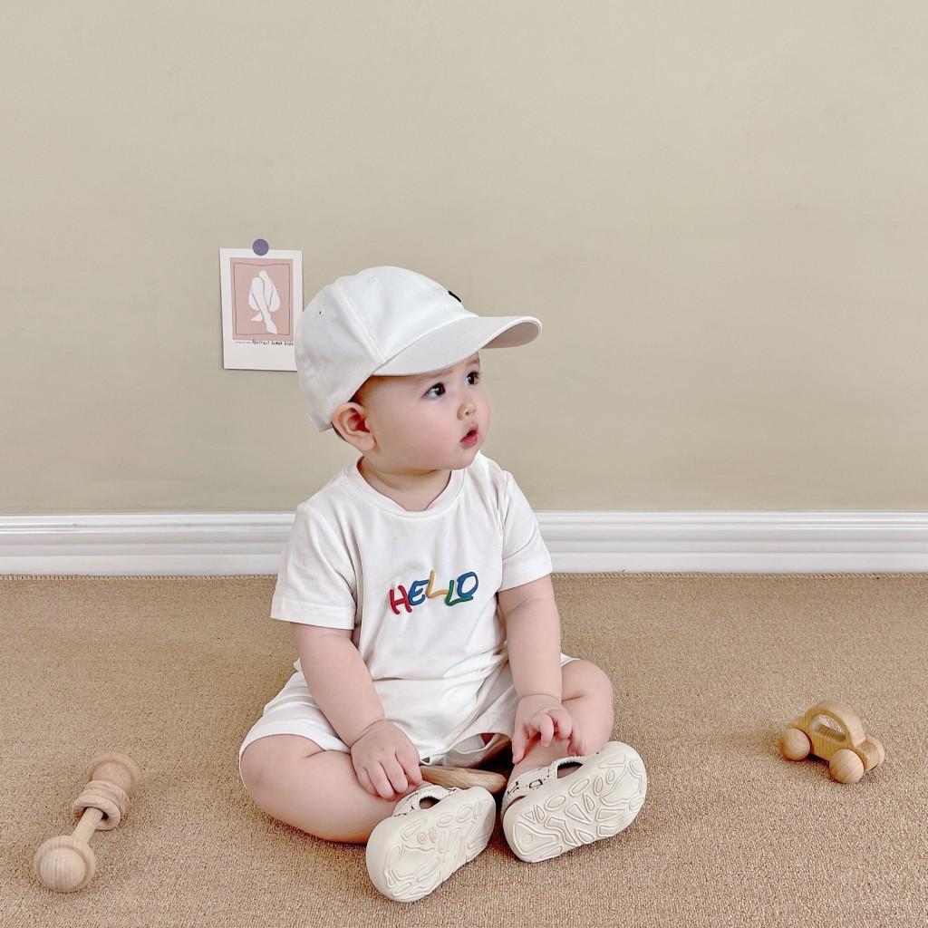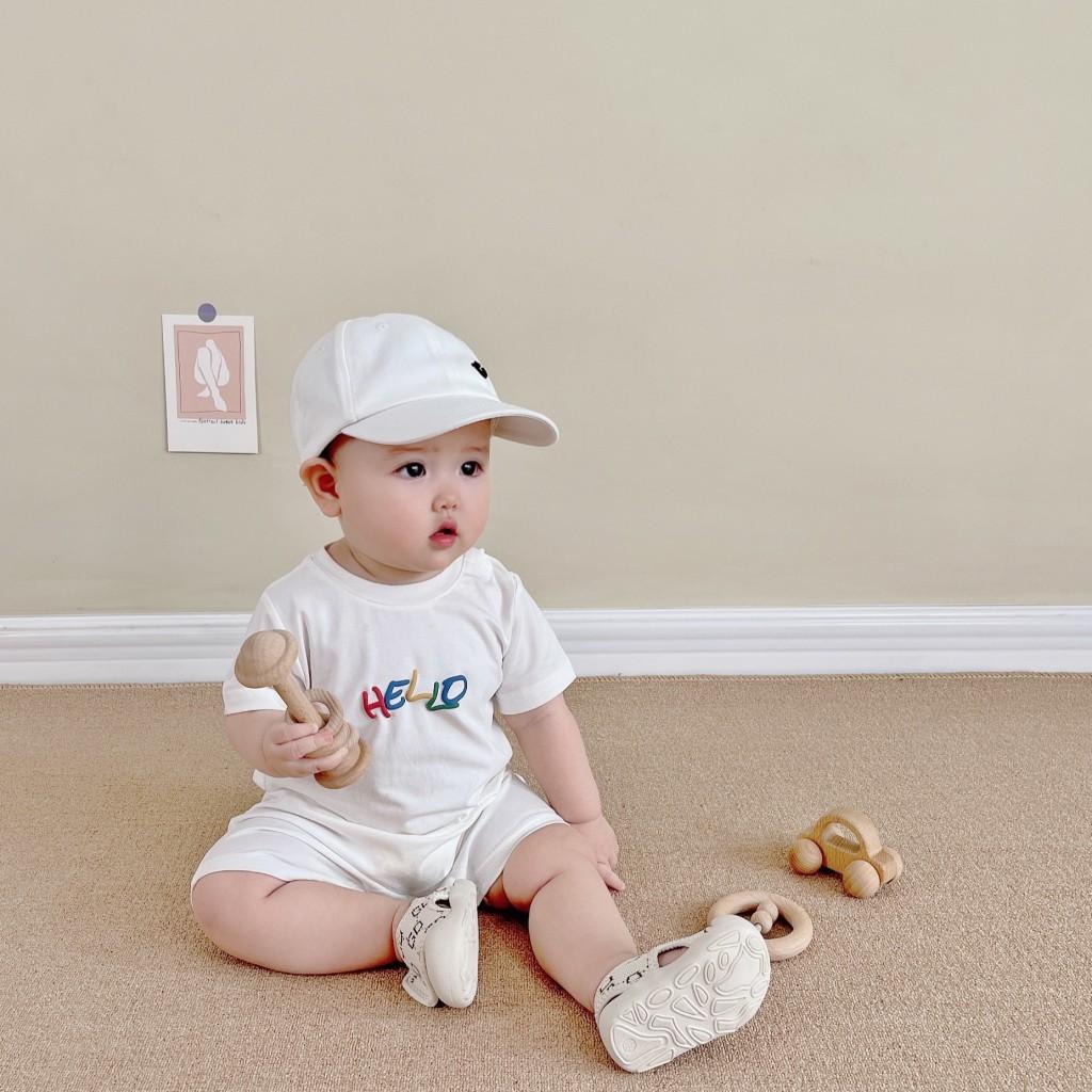 Un mono blanco con letras de "hola" de colores. Y la carita sonriente en la parte de atrás. Toda la impresión es una flor de burbuja. La sensación visual y táctil es ese tipo de sensación convexa.